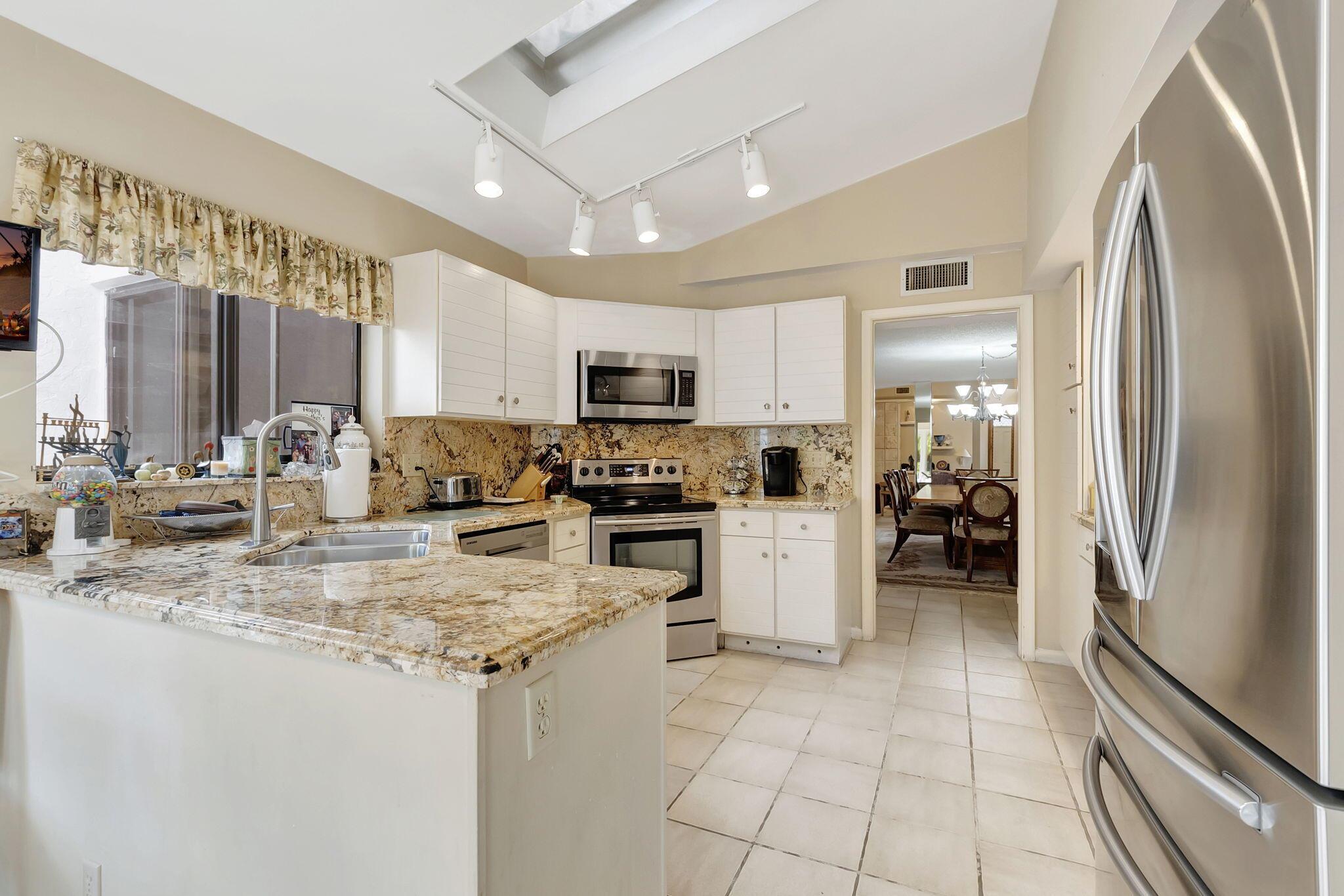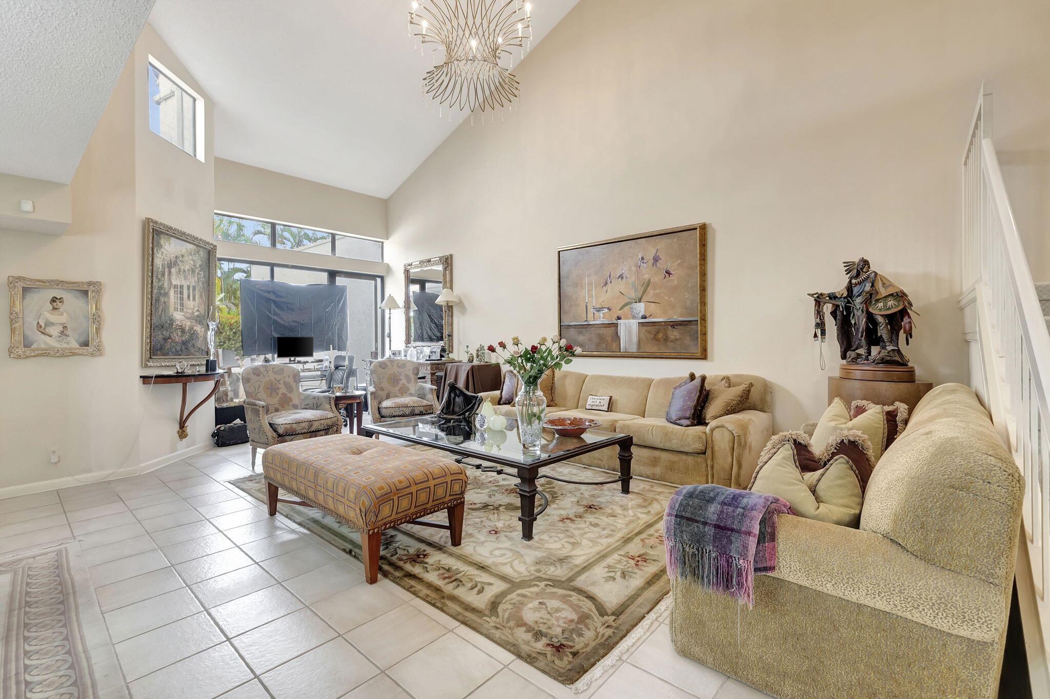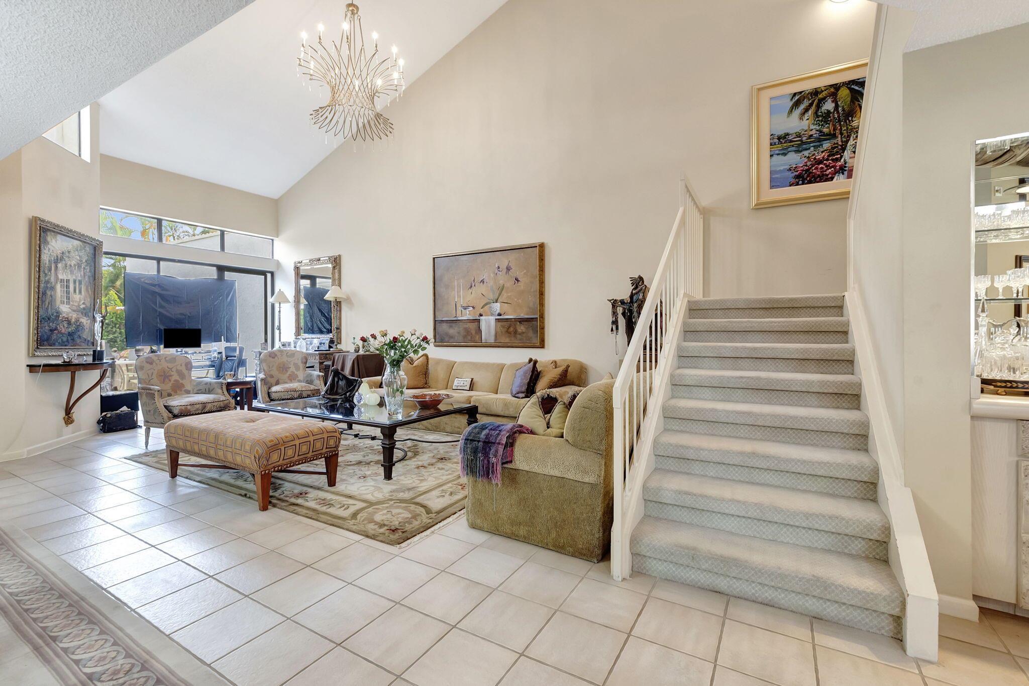 Stunning cul-de-sac residence in exclusive Boca West Country Club is luxuurious and comfortable. With 3 bedrooms, 3 full and 1 half baths, plus an office, this home has plenty of space,The 21-foot ceilings adorned with skylights let in plenty of natural light. The first floor features a spacious family room, a formal living room with a wet bar, a powder room, a laundry room equipped with LG washer and dryer, a dining room, and a gourmet kitchen overlooking the private backyard. The first floor also hosts a primary suite.The kitchen is a chef's delight, showcasing granite countertops, stylish with artistic hardware, and a suite of Samsung appliances plus an Avant wine refrigerator.