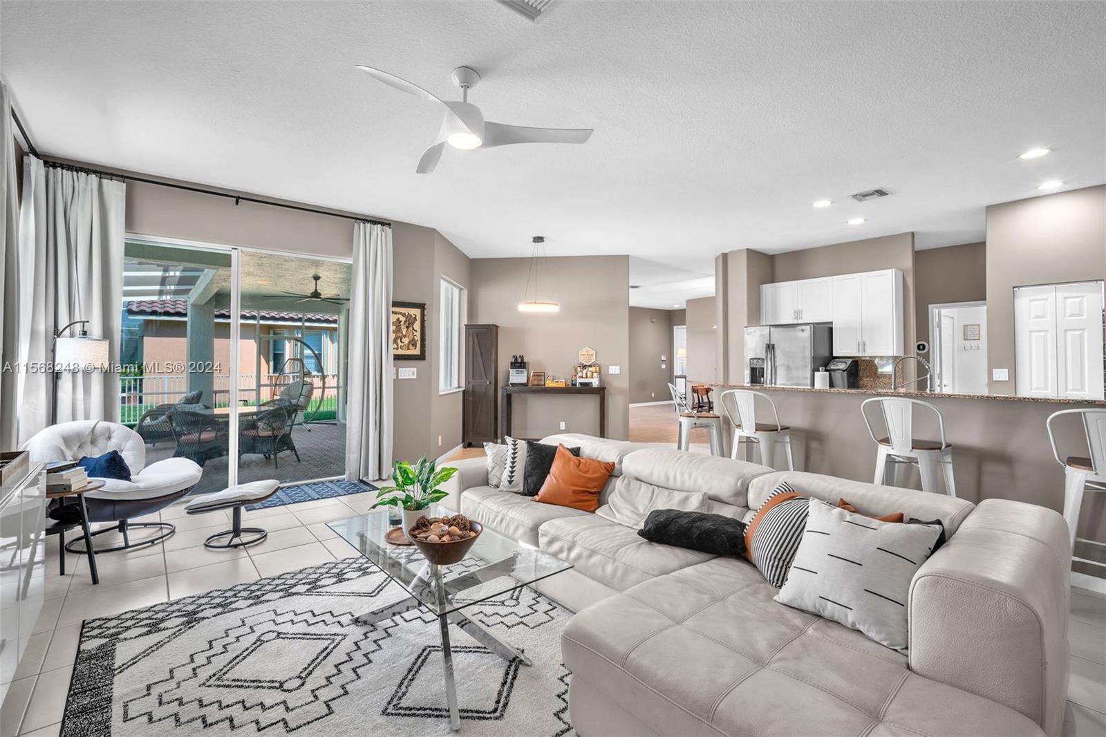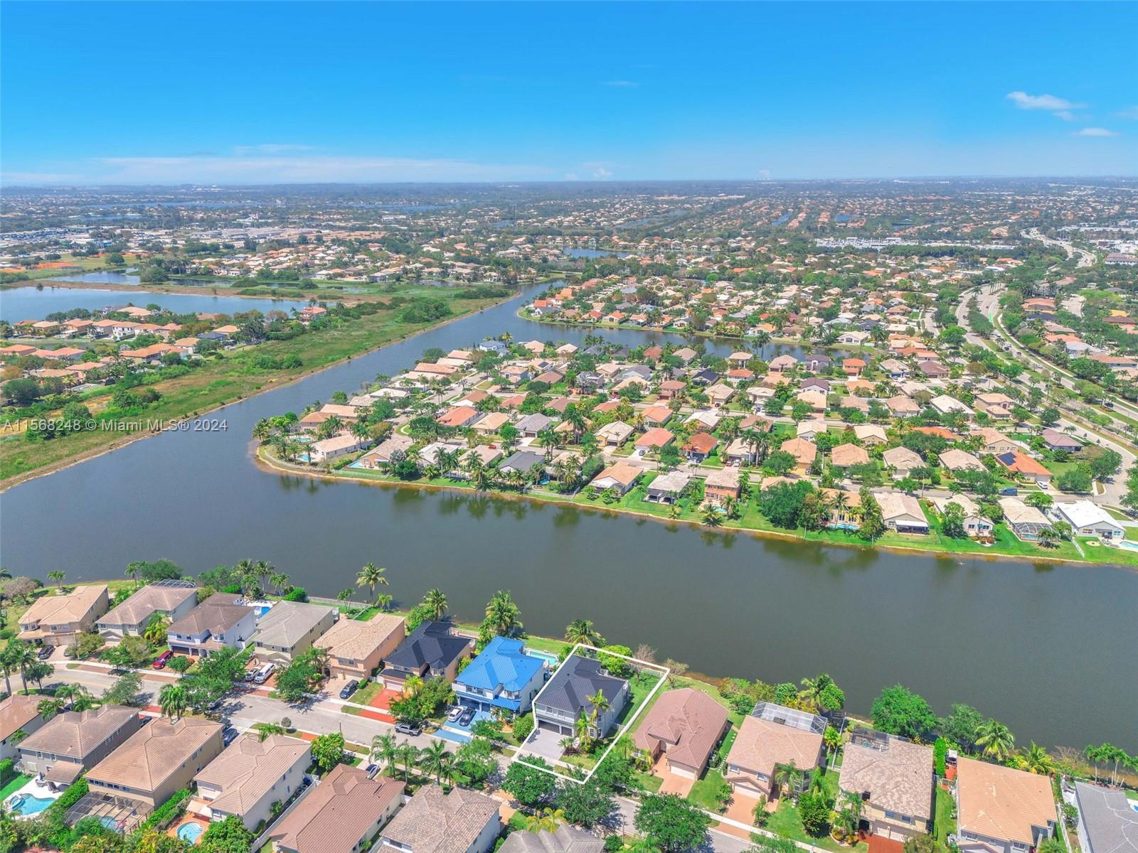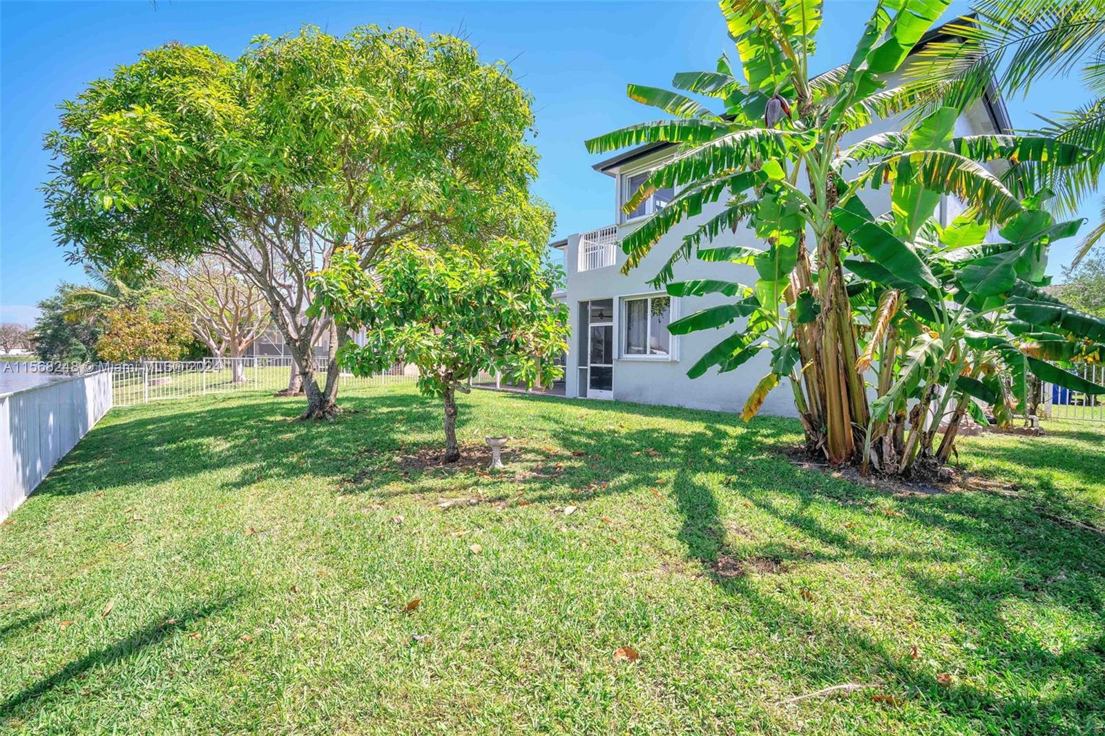 Welcome to your lakefront home. Your home has a brand-new metal roof installed in Jan of 2024! Entertain family and friends in your spacious gathering areas and impress with the soaring 19' living room ceiling. Enjoy relaxing views from the balcony off the primary bedroom and/or under the screened in patio. Snack on your own fruit with established banana, mango, and avocado trees in the oversized backyard with plenty of room for a pool. Additional features include full accordion shutters, 1-full bed/bath downstairs, oversized bedrooms, 2-zone AC units, brick paver driveway and patio, and laundry room with sink. Pembroke Shores is a private gated community located near I-75, parks, golf, restaurants, shopping, and schools.