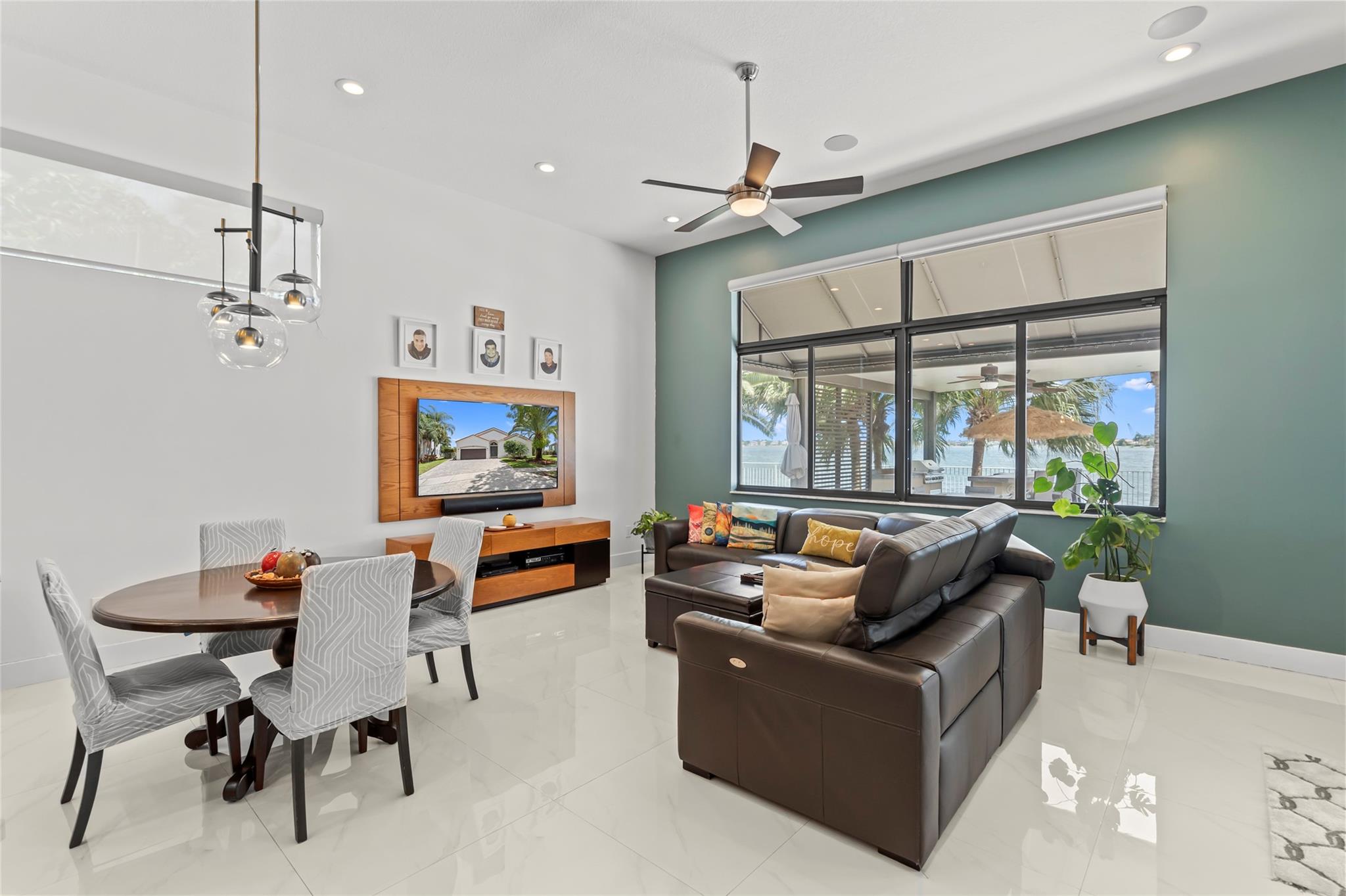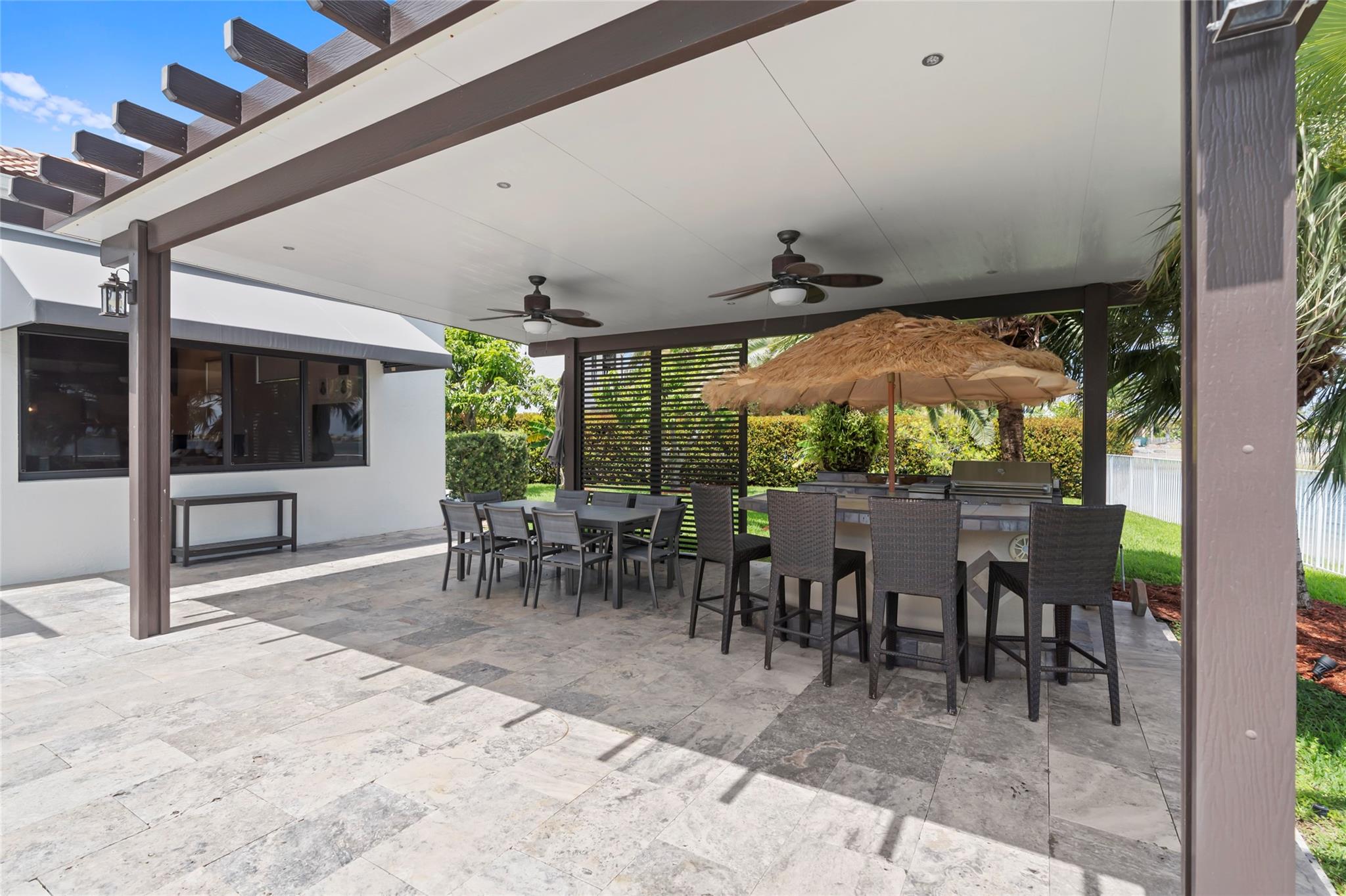 Welcome to an exquisite lakeside retreat boasting porcelain floors, remodeled bathrooms, impact windows& doors, a modern kitchen with quartz countertops with S.S appliances, new A/C units, new thankless water heater, oversized backyard with 14,898 SF lot full of lush landscaping and fruit trees. Take in the endless lake views from every angle. Step outside to discover an entertainer's paradise, featuring an outdoor kitchen, two backyard pergolas, and an oversized pool with a Jacuzzi. With its spacious lot and luxurious amenities, this home offers the perfect blend of elegance and relaxation, creating an unparalleled living experience.