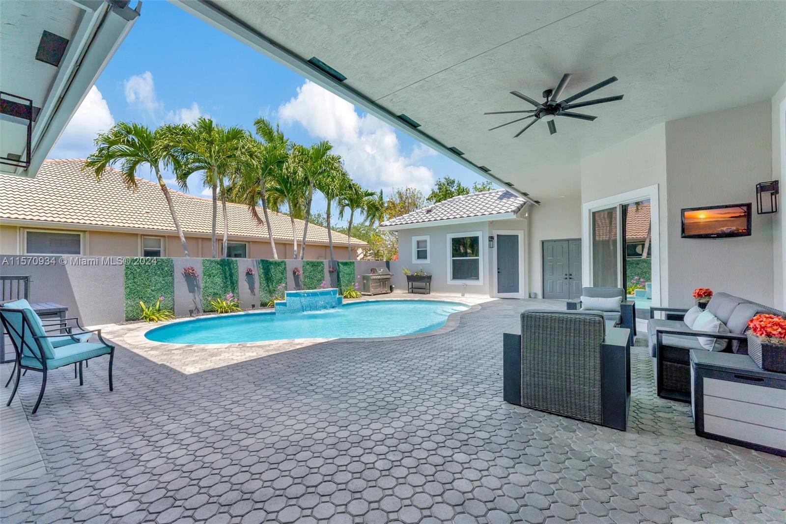Brand NEW Roof 2024! Step into Highly Desirable Rarely Available floor plan. Enjoy your sparkling pool in your own private courtyard, detached In-Law Quarters. This Majestic 5 Bed, 4.5 baths, Waterfront property is Priced to Sell! Welcoming Soaring Ceilings and Oversized bedrooms with Private bathrooms, 2 remodeled to perfection Savor the serenity of waterfront living, complemented with Mahogany trees, New Silver Travertine patio, fenced ideal for children & dogs. Entertain in the Open Space Kitchen, Formal Dining Room, Breakfast nook, High-End LG Studio series SS appliances. Meticulous Owner upgraded the pool, new salt system & filter, New Exterior paint, new gutters, LED Lights Int/Ext & more Heron bay is known for its resort style amenities, clubhouses, fitness centers. A-rated schools!