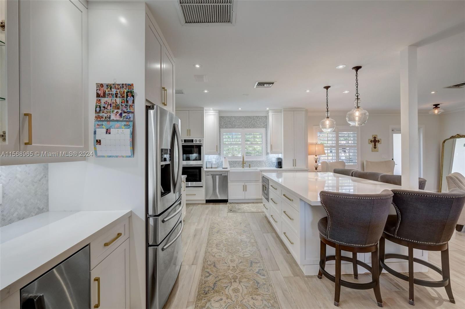Welcome to YOUR forever home in the community of Miami Shores. This 3 bedroom & 2 1/2 bathroom Mid century modern house was completely renovated to perfection with high end finishes. It offers a great layout with a split floor plan. Open concept kitchen area & living room with an adjacent family room. Both rooms lead to a covered patio with a bar area to entertain family & friends. The almost 10,000 sf lot offers a nice backyard ready to add a pool. High impact doors and windows through out offer peace of mind and lots of natural light in all the rooms. A large two car garage complements the features this house offers. Amazing location on a quiet cul de sac. The backyard leads into the Miami Shores country club and swimming pool. Newer roof, AC unit and all electrical and plumbing updated.
