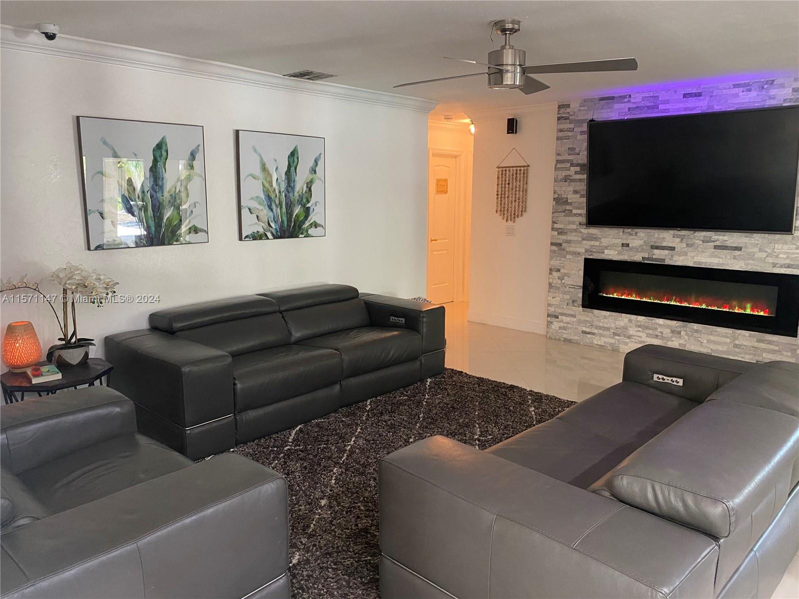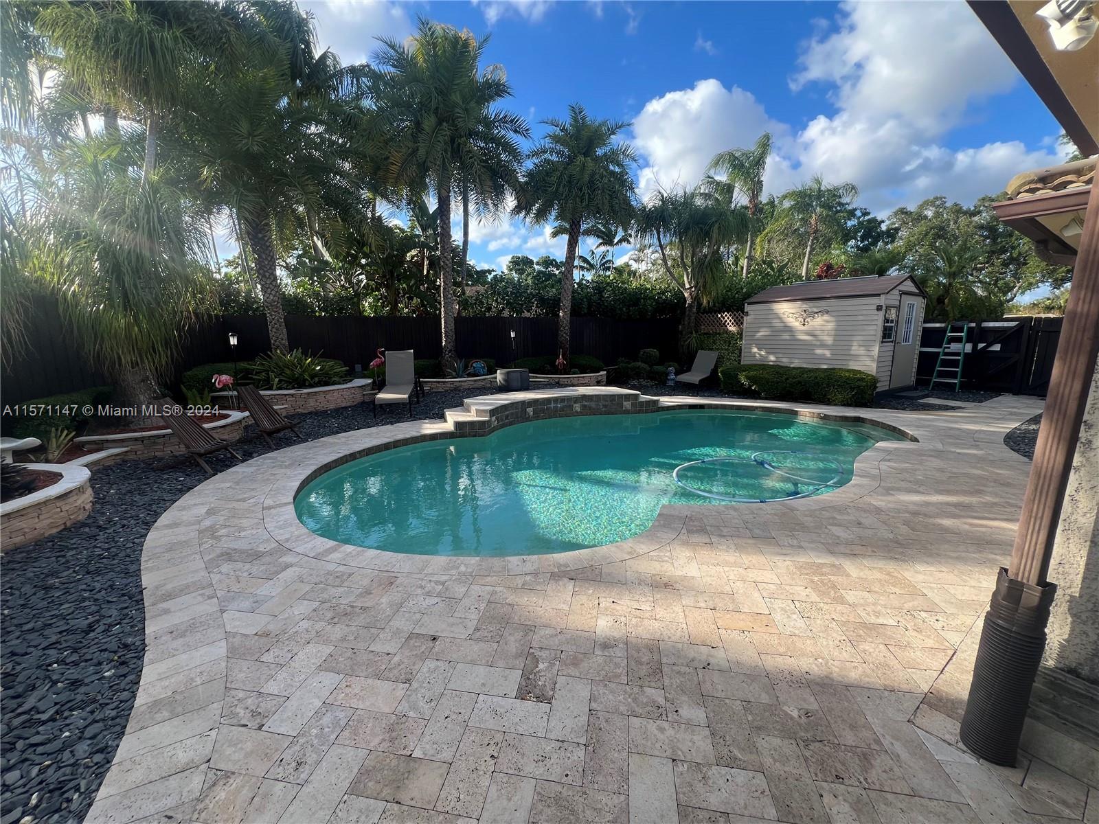 Immerse yourself in luxury living with this designer's dream house. This completely remodeled four bedroom split floor plan home spares no detail, boasting a fusion of elegance and functionality. This immaculate home features complete impact windows and doors, brand new kitchen and appliances, and a spectacularly remodeled garage, all complemented by an 8 year old pool and a comprehensive security system wired throughout the house. Entertain in style within your own outdoor tropical oasis, next to the breathtaking pool with cascading waterfall. The expansive outdoor area is a true entertainer's paradise, featuring a stunning pergola with sound system, perfect for embracing the vibrant South Florida lifestyle. NO HOA FEES! Don't miss the chance to make this exceptional property your own.