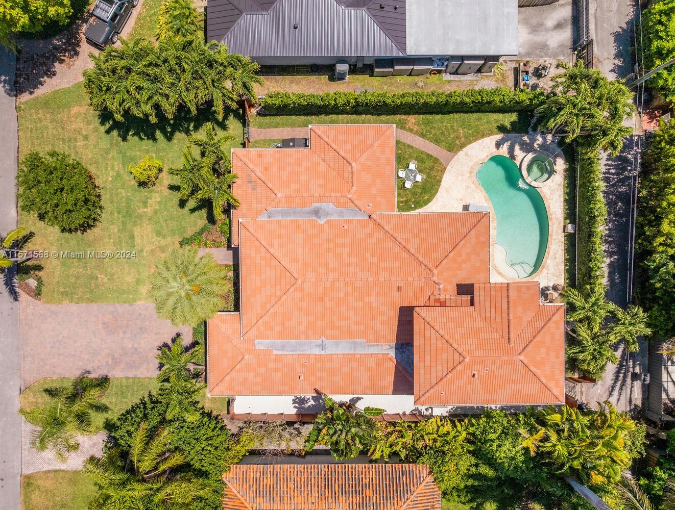 Welcome to Watersong! This magical, rare, five-bedroom secluded East Miami Shores mid-century modern pool home flows like a poem and will be music to your ears! Enter through a welcoming front porch into multiple cascading living areas with high ceilings, a designer eat-in kitchen and dining, opening through sliding doors to a grand vaulted covered terrace, lush fenced private gardens and sparkling pool and spa with soothing fountain feature—perfect for entertaining or relaxing. Great open-flow plan with five split spacious bedrooms (three are full ensuites). Fantastic features: modern designer kitchen and baths; hardwood floors; newer concrete tile roof; impact windows-doors; upgraded electrical-plumbing; and new smart-zoned AC system. All in one of The Shores’ most prestigious locations!