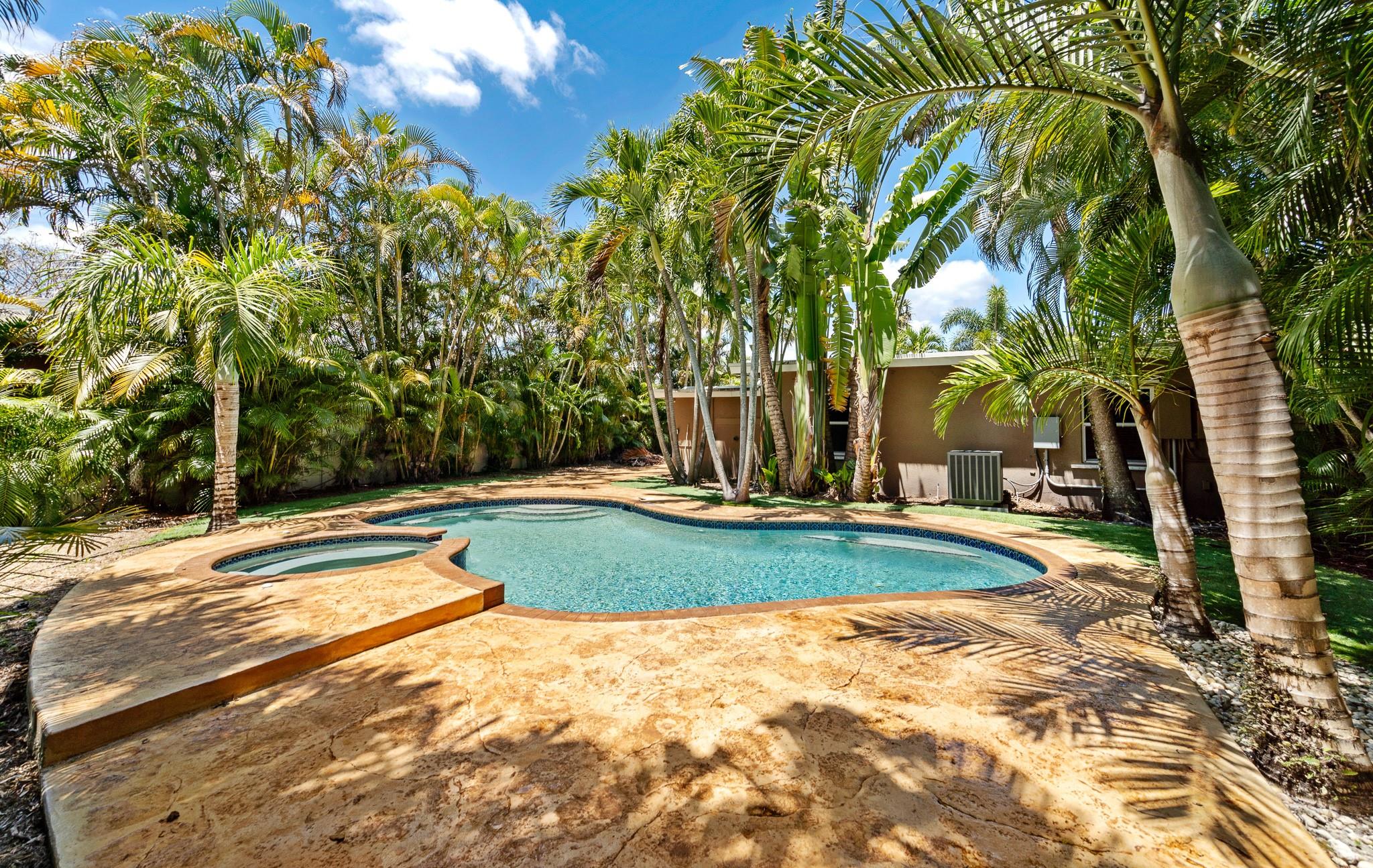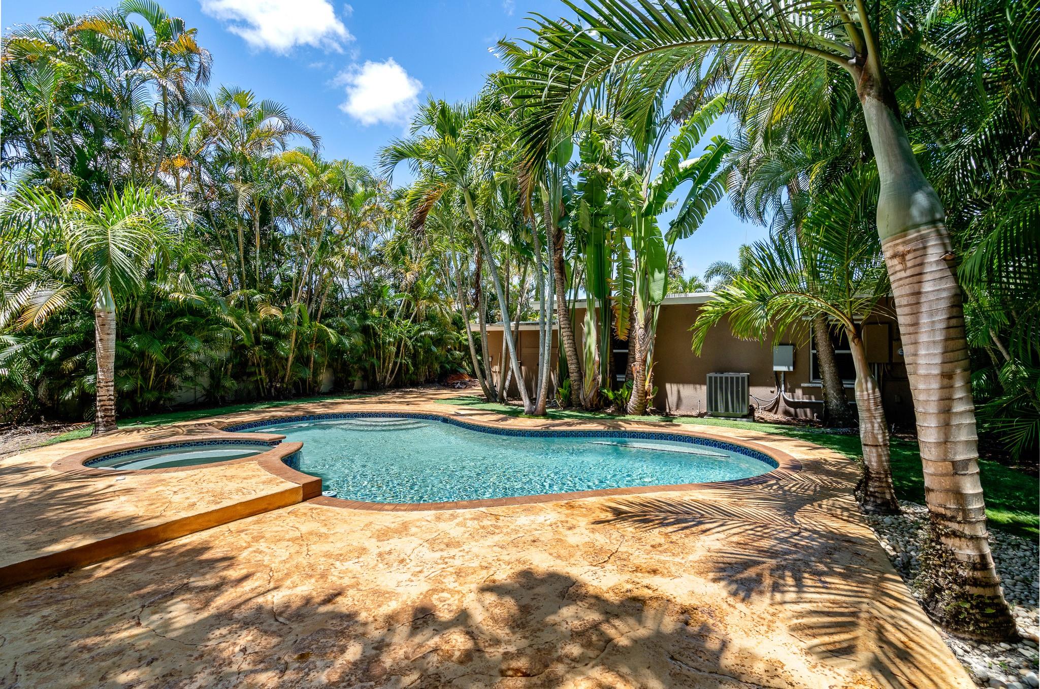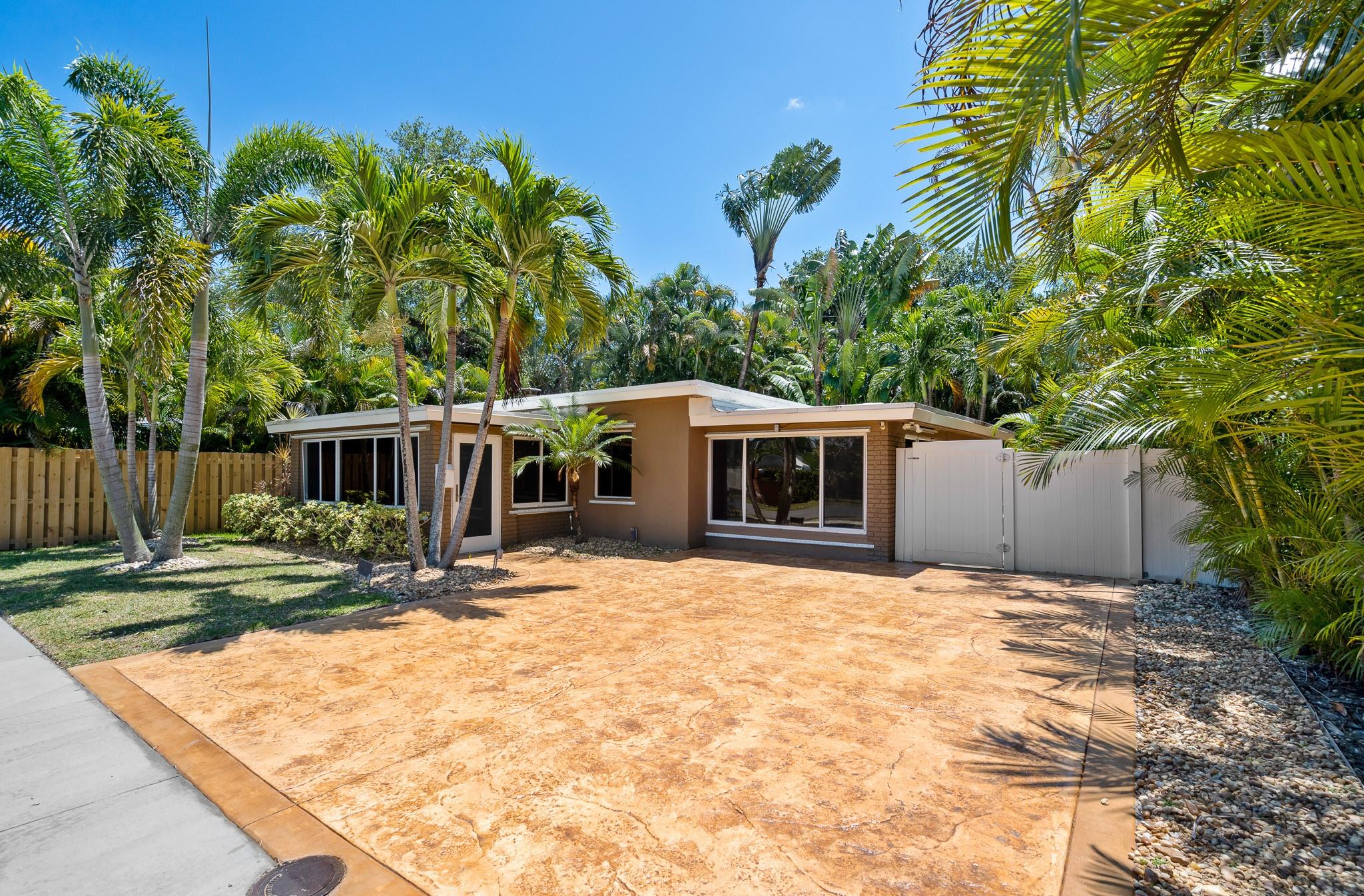 Welcome to a tropical oasis with a lush, back garden paradise. The oversized driveway leads to a spacious 2 bed/1 bath single family home with a gorgeous pool. The house is bright with large picture windows. It has impact doors, hurricane/plantation shutters, blinds and recessed lighting. New kitchen appliances. New ceiling fans. Granite countertops. A Florida/media room. Laundry room. Hot water heater and updated electric (2023). The roof is 2012 but was recently resealed with 3" insulation over the living space. AC inside is 2023 (outside 9 years old). AC motor replaced 2023, sprinkler system. The house was completely reframed with new wood/drywall. It's just a short walk to Snyder Park, minutes to Fort Lauderdale Beach and all the shopping, restaurants and bars on Las Olas. Come see it!