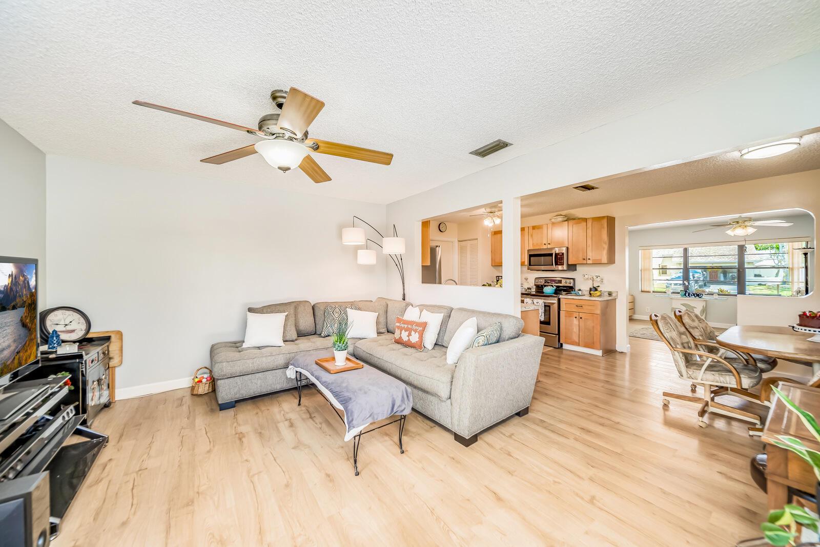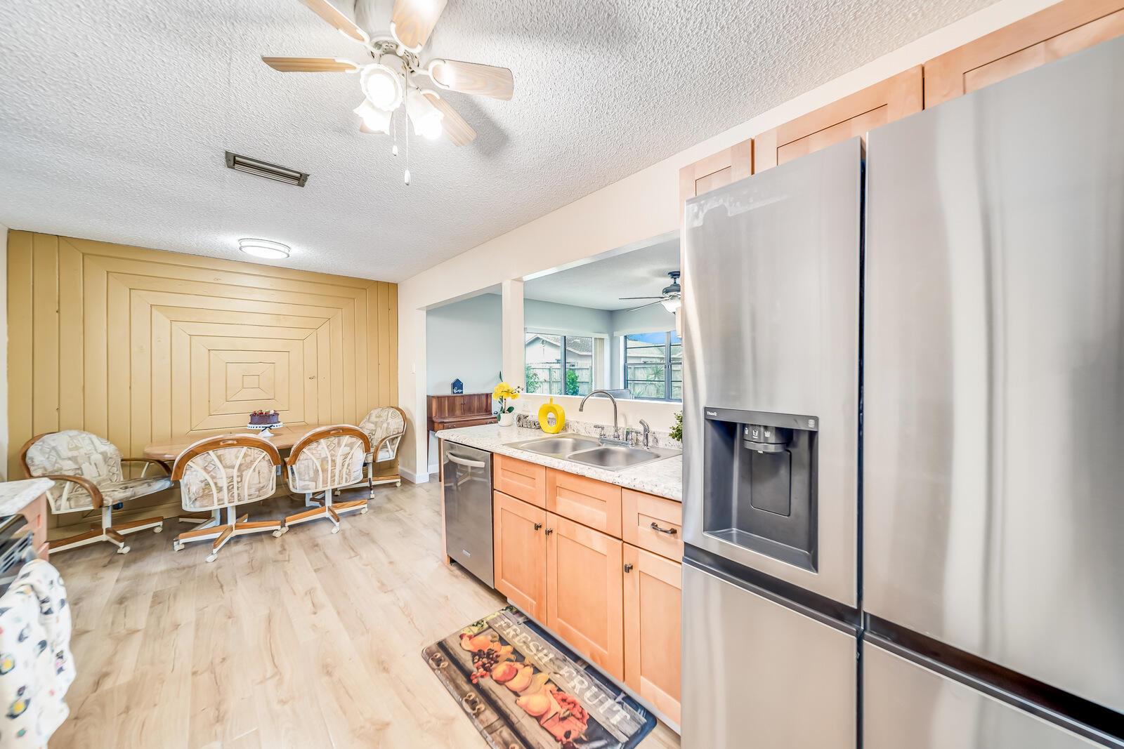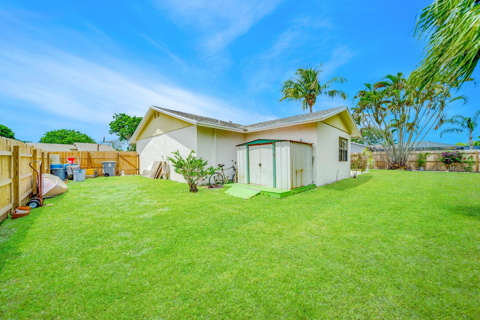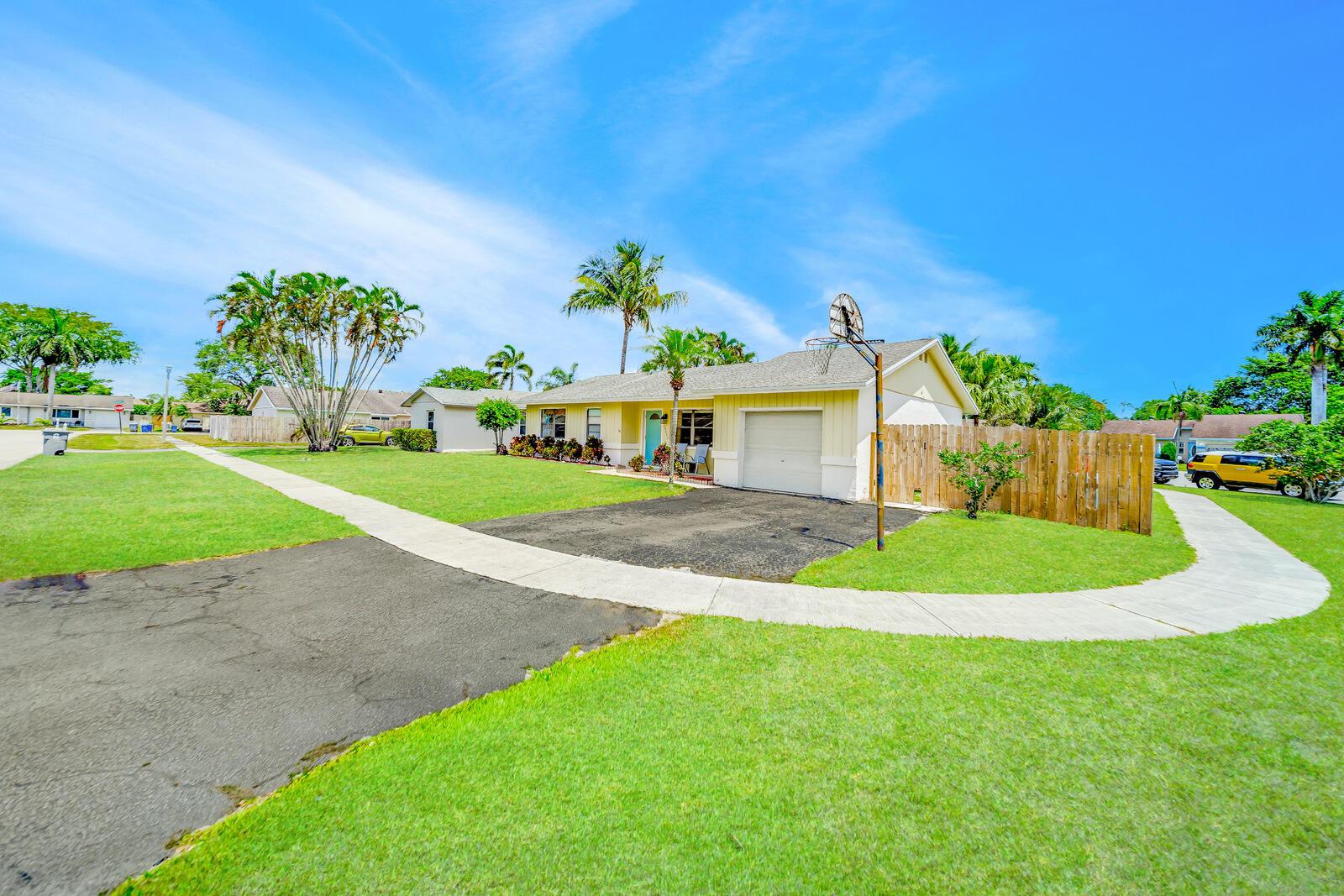 WOW! Huge oversized corner lot by the cul-de-sac single family home in Saddlebrook/Spanish Isles that's open & bright featuring 3 bedrooms, 2 bathrooms, & a one car garage! High end laminate Pergo XP flooring throughout the living area and carpet in all 3 bedrooms. This home is super clean and well-maintained. Updated, open concept kitchen with stainless appliances, wood cabinets w/pull out drawers, a large eat in area and more! Updated bathrooms including a barn door vanity in the guest bathroom. Family room off the kitchen over looks the fenced in, private, large backyard with a shed & 3 gates, one of which is super large and opens up to where its great for boats, trailers, and more!