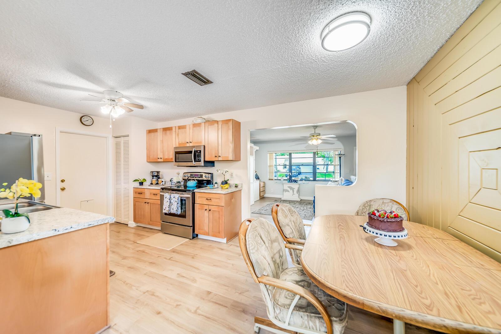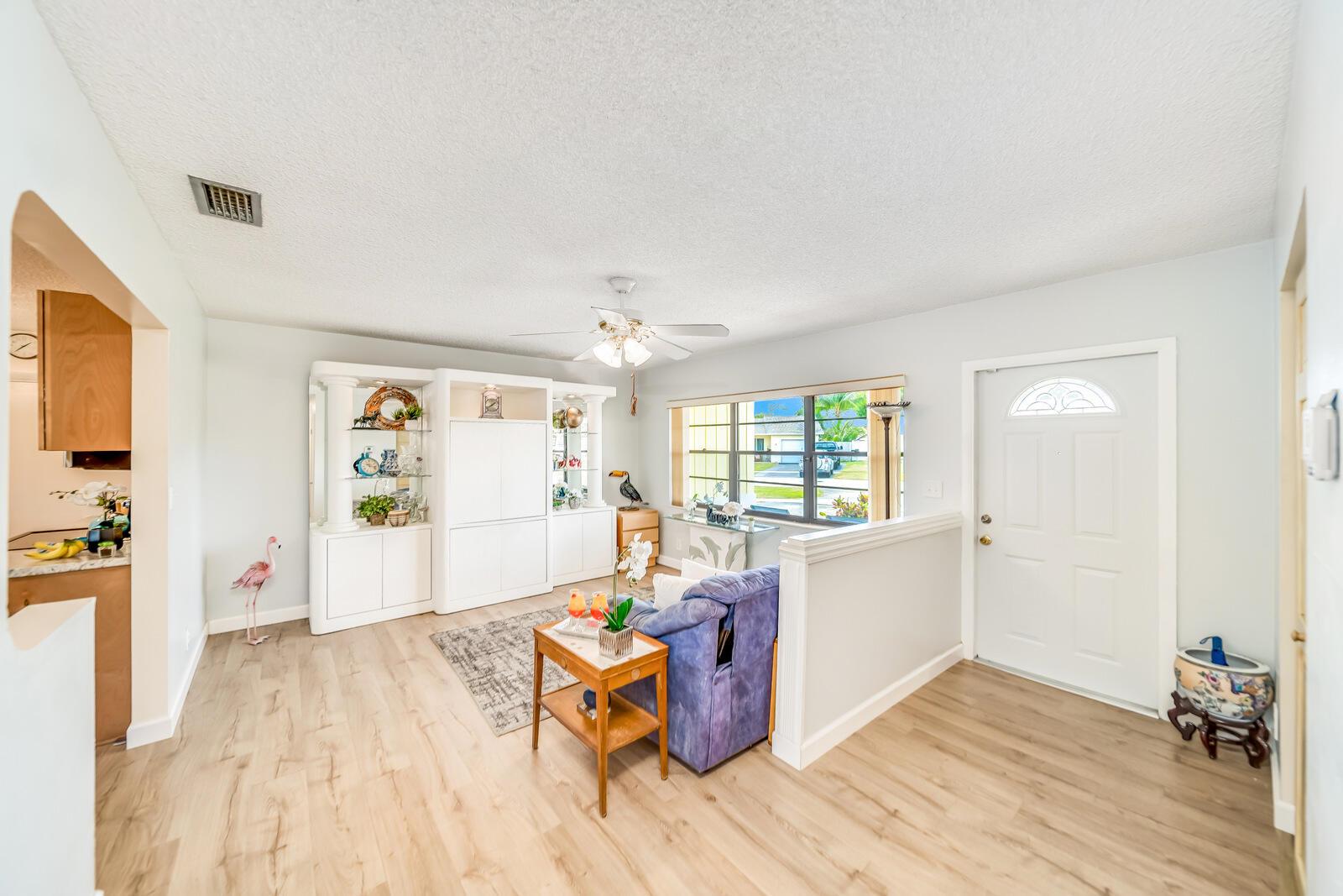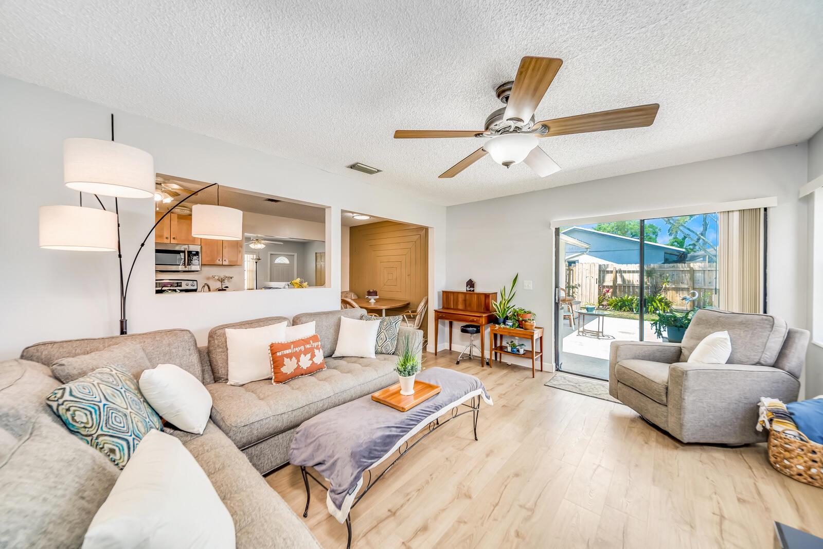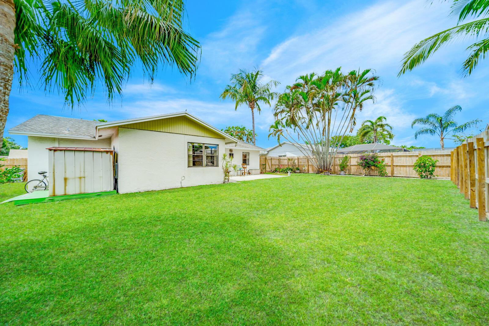 WOW! Huge oversized corner lot by the cul-de-sac single family home in Saddlebrook/Spanish Isles that's open & bright featuring 3 bedrooms, 2 bathrooms, & a one car garage! High end laminate Pergo XP flooring throughout the living area and carpet in all 3 bedrooms. This home is super clean and well-maintained. Updated, open concept kitchen with stainless appliances, wood cabinets w/pull out drawers, a large eat in area and more! Updated bathrooms including a barn door vanity in the guest bathroom. Family room off the kitchen over looks the fenced in, private, large backyard with a shed & 3 gates, one of which is super large and opens up to where its great for boats, trailers, and more!