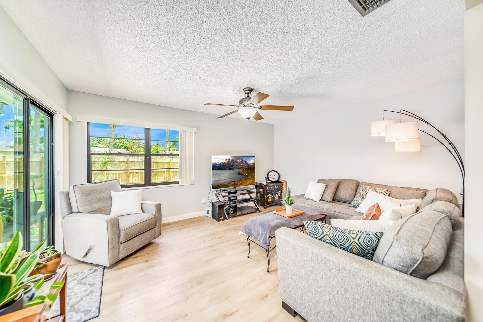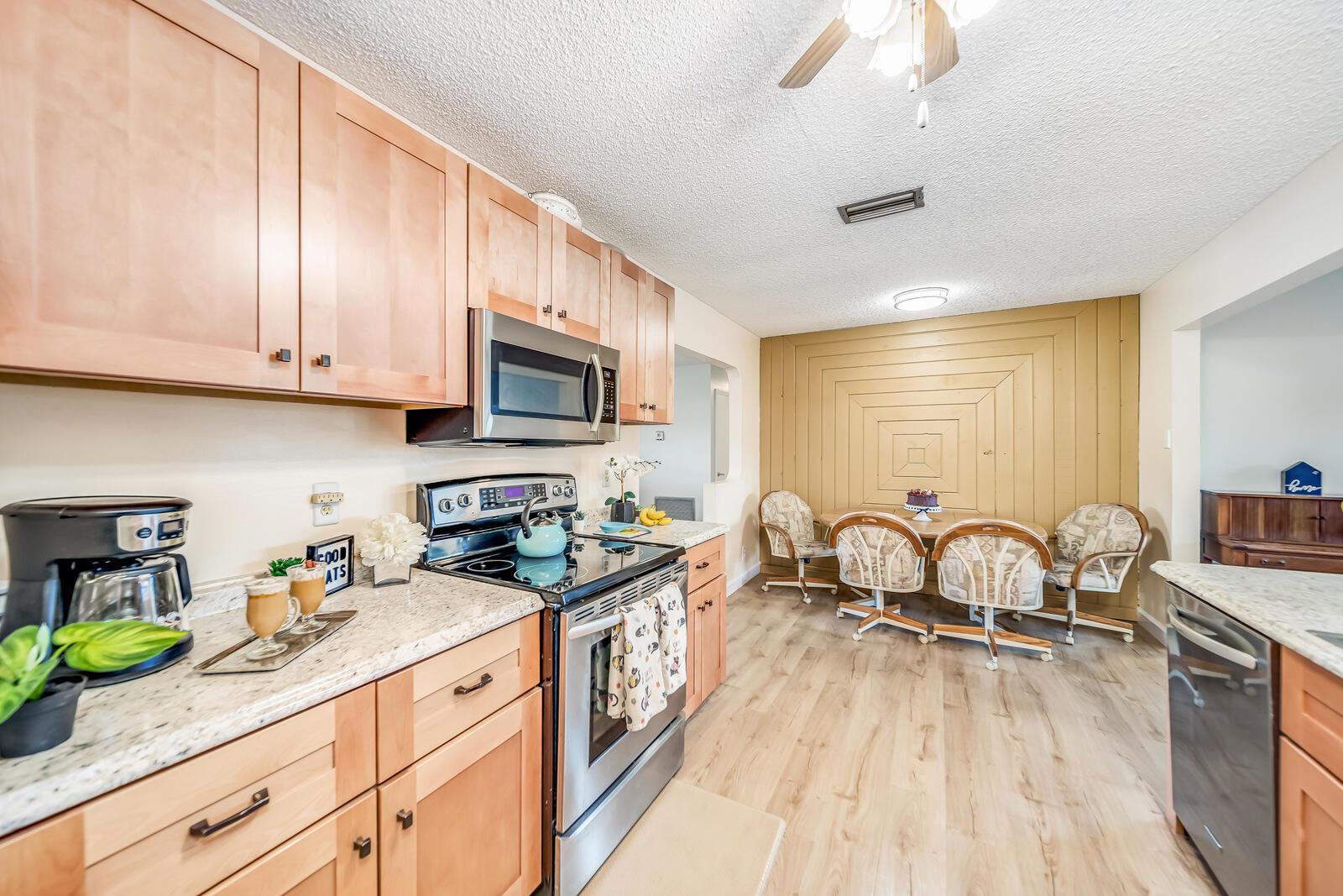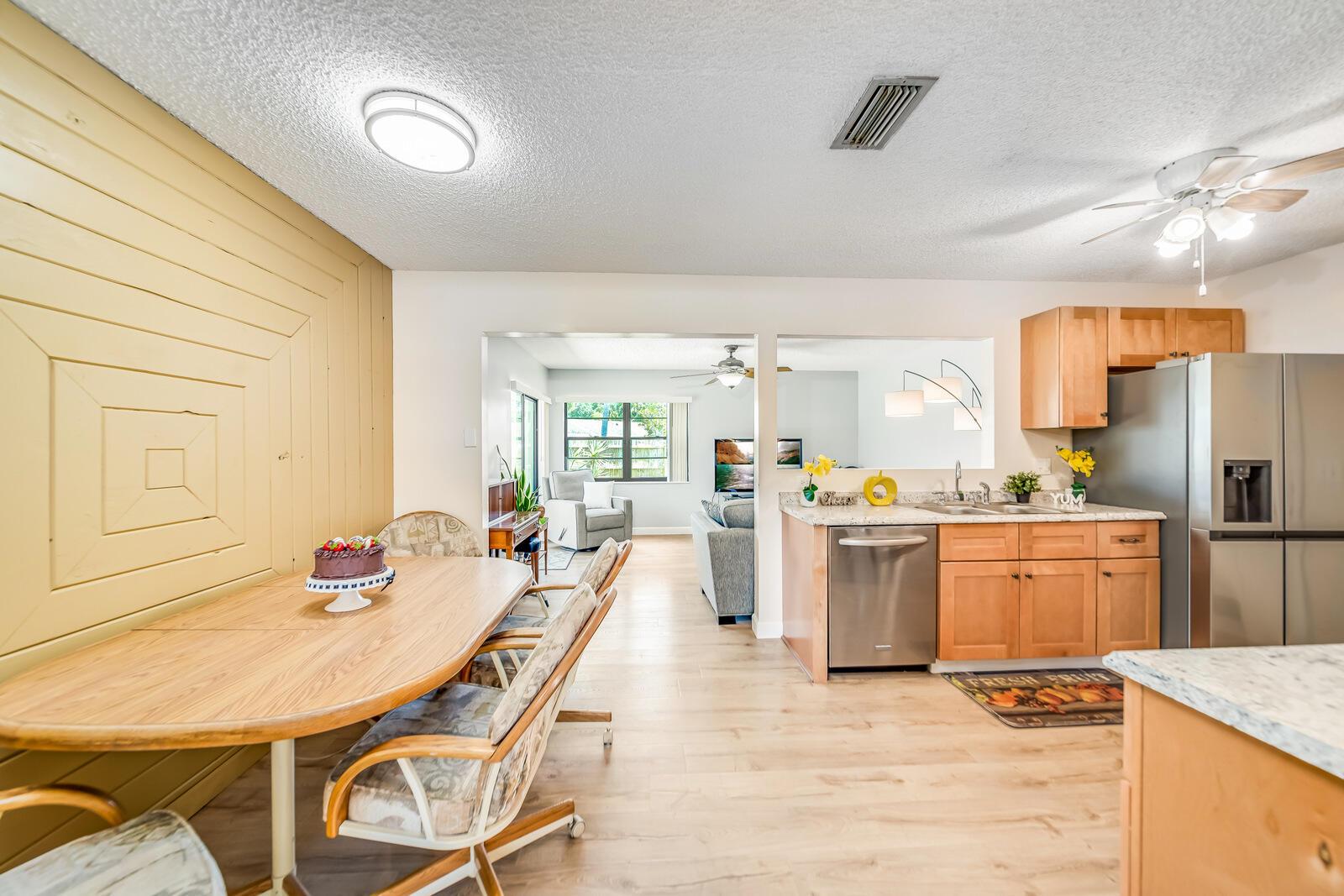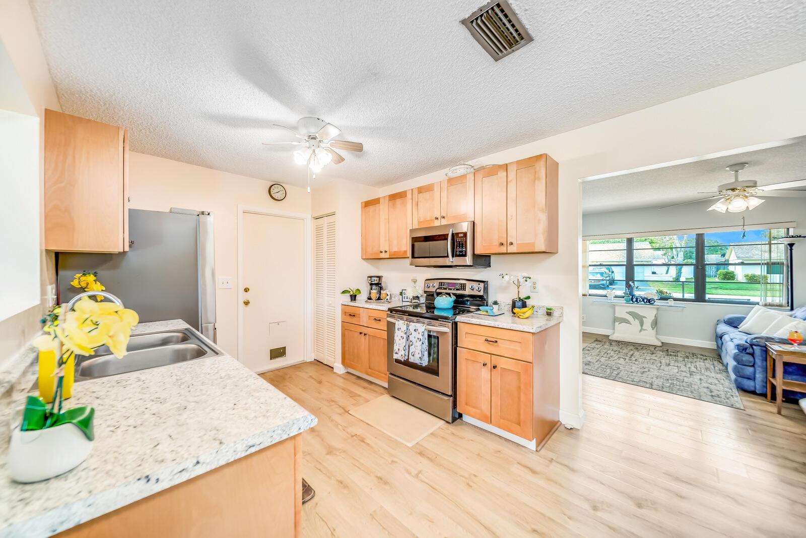 WOW! Huge oversized corner lot by the cul-de-sac single family home in Saddlebrook/Spanish Isles that's open & bright featuring 3 bedrooms, 2 bathrooms, & a one car garage! High end laminate Pergo XP flooring throughout the living area and carpet in all 3 bedrooms. This home is super clean and well-maintained. Updated, open concept kitchen with stainless appliances, wood cabinets w/pull out drawers, a large eat in area and more! Updated bathrooms including a barn door vanity in the guest bathroom. Family room off the kitchen over looks the fenced in, private, large backyard with a shed & 3 gates, one of which is super large and opens up to where its great for boats, trailers, and more!