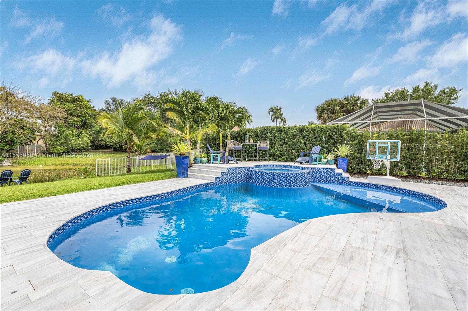 RARE OPPORTUNITY! Introducing this stunning 4/2.5 + bonus office, heated pool & lake front home located in the highly sought after Country Glen. This inviting property offers a sanctuary of comfort and relaxation. Step into your own private backyard oasis, where the shimmering waters of your new pool blend seamlessly w/ the sparkling lake views. NEW remodeled kitchen w/ timeless white cabinets, quartz countertops, SS appliances and large island! Impact windows and doors throughout! New flooring! New A/C's! NEW WASHER/DRYER. EPOXY GARAGE. Entertain guests on the spacious new patio & unwind in the jacuzzi as you watch the sunset. Exclusive gated community w/ 24/7 manned guard & includes park, tennis courts, basketball courts and beach volleyball! Excellent location w/ A+ rated schools.