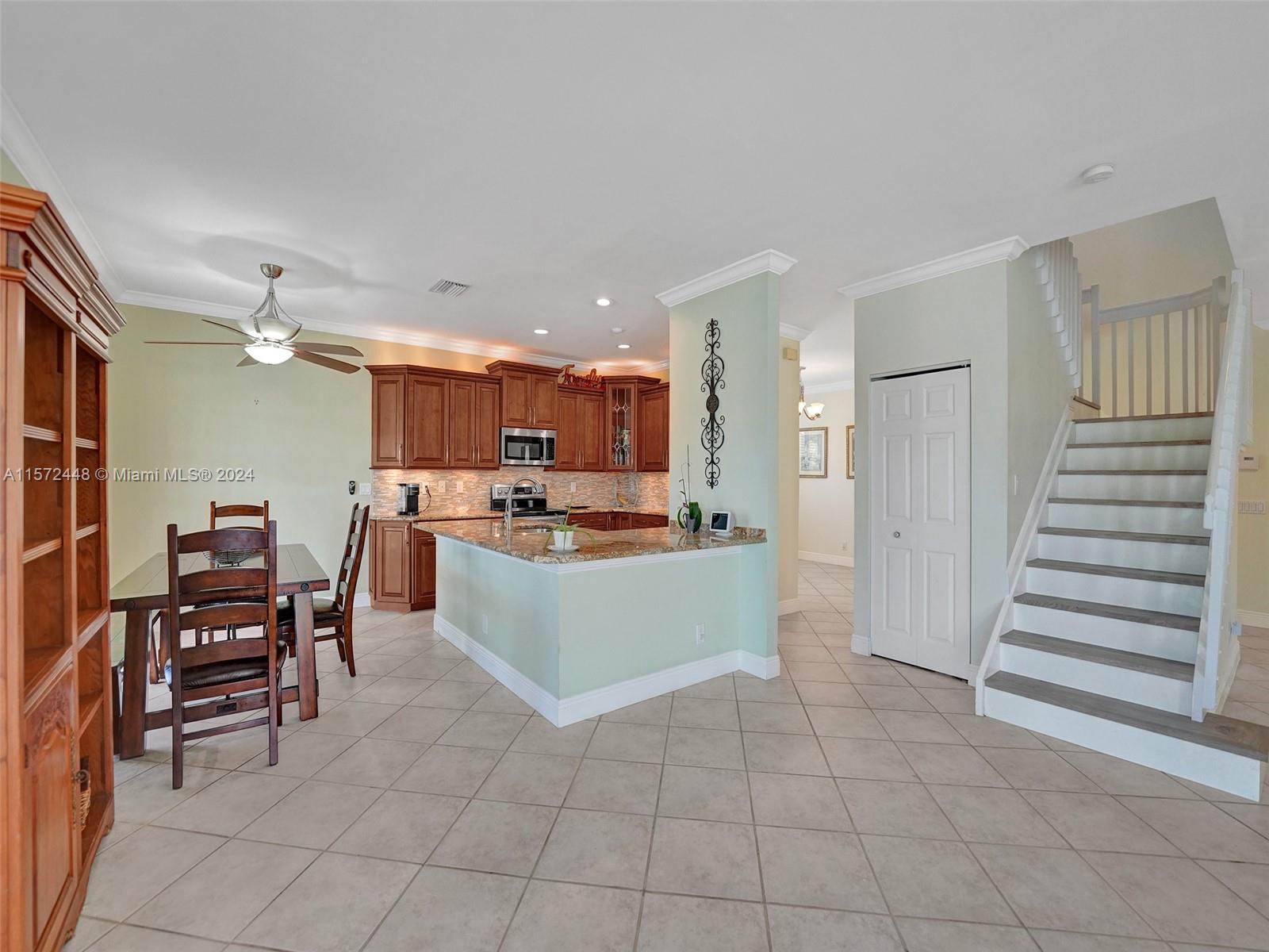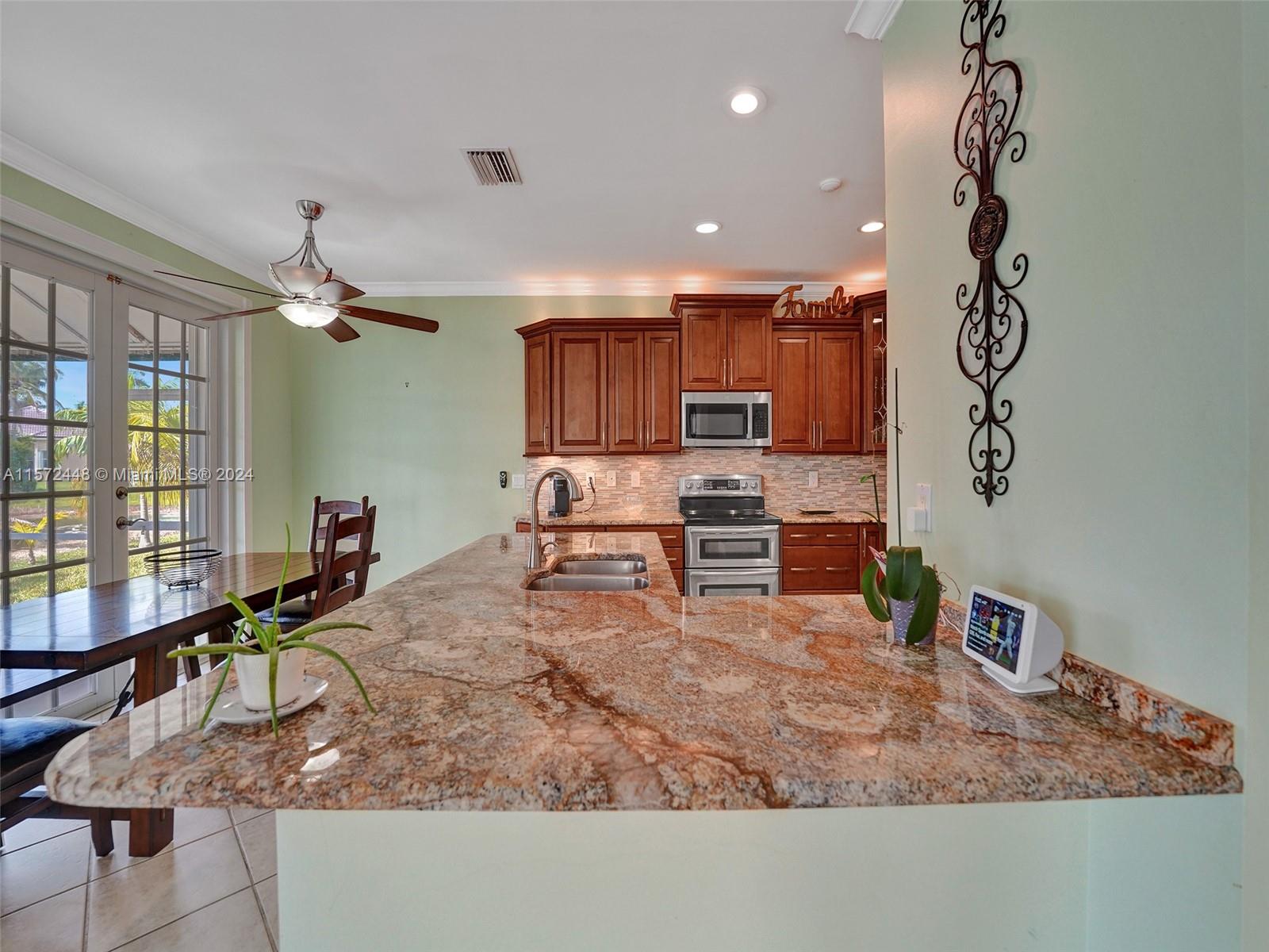 FIRST TIME ON THE MARKET! This spacious & desirable 5/3.5 is situated on a QUIET LAKEFRONT LOT in THE MEADOWS. UPDATED KITCHEN features SS APPLIANCES w/ newer fridge & dishwasher, GRANITE COUNTERTOPS, & wood cabinets w/ ACCENT LIGHTING. ALL BATHS UPDATED. 5th bedroom was opened for use as an office/den. Tile on first floor & NEWER WOOD LAMINATE on stairs & 2nd floor. Inside laundry features newer WASHER & DRYER. Dual A/C system w/ newer upstairs unit. ACCORDION SHUTTERS all around. Two sets of FRENCH DOORS lead out to a LARGE SCREENED-IN PATIO where you can relax & enjoy the BEAUTIFUL WATER VIEW. All A RATED SCHOOLS- just steps to Gator Run Elementary. Don't hesitate - MAKE THIS YOUR HOME TODAY!