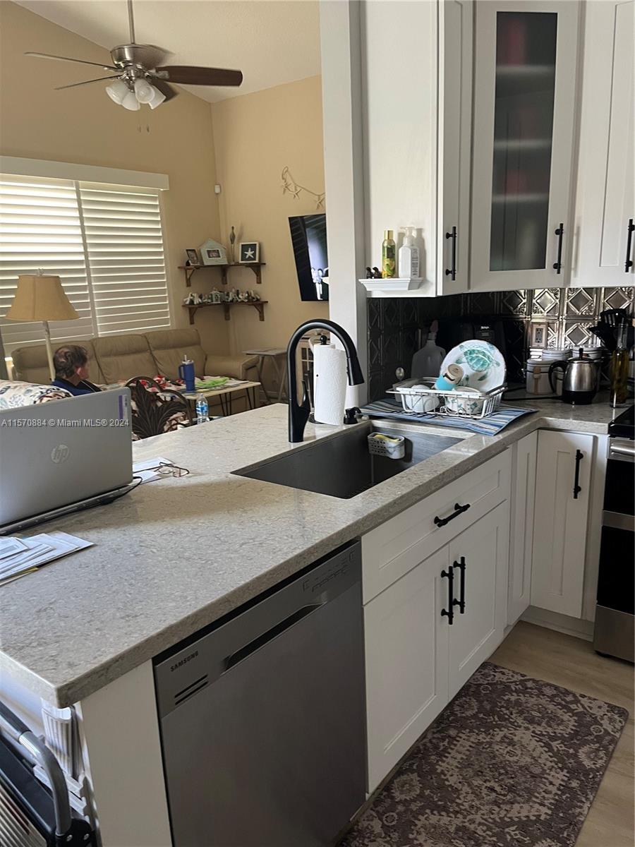 Charming, updated, 1-story 3/2 with 2 car garage. This house is bright and clean and sits at the end of a private quiet street on a large corner lot. Complete storm protection with new impact windows. Vaulted ceilings. Newer appliances including washer and dryer. Separate laundry room. Great private fenced in yard with gazebo. All new flooring throughout. Furniture available for purchase. Fountain Springs Estates is a great family neighborhood with community pool, aquatic center, clubhouse, tennis courts, parks and playground. Steps from Deicke Park.