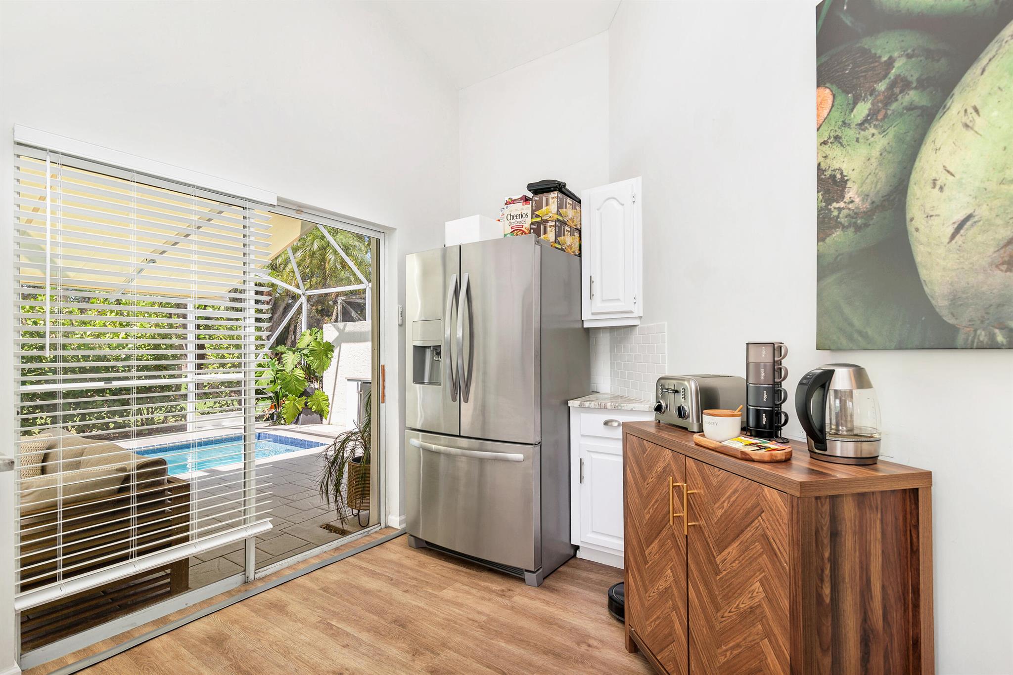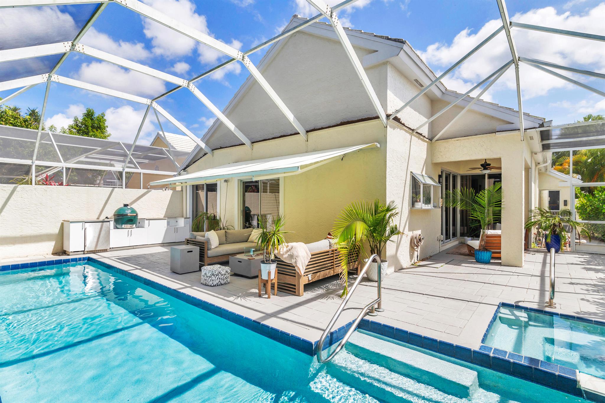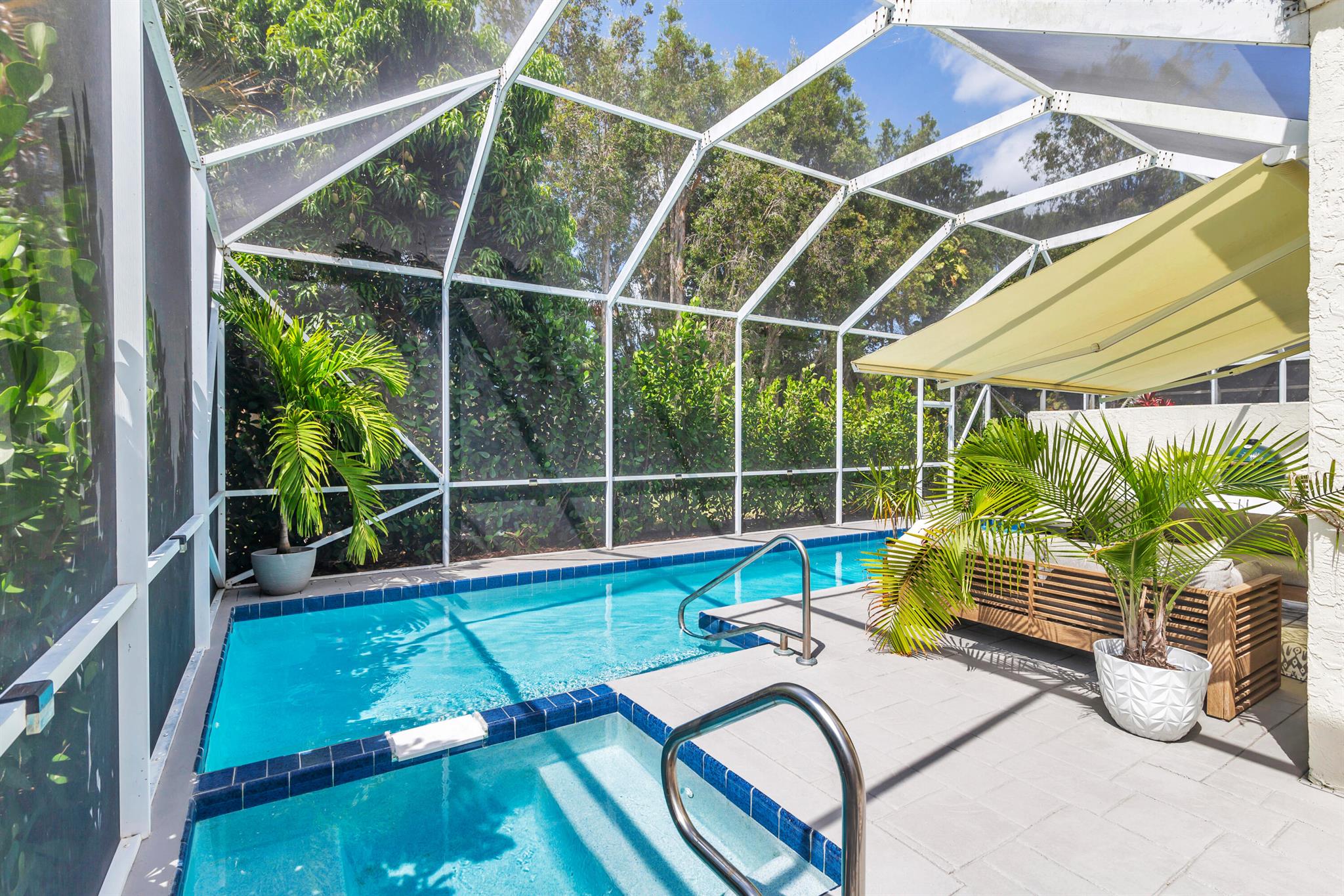 Beautifully designed in contemporary mode. This ideal 3 BDM 2.5 BA with screened loggia , heated pool/spa, and summer kitchen has total style. Upon entering the charming Bermuda courtyard you will enter a tranquil tropical oasis. Open kitchen with bay window, quartz counters and stainless appliances. A prime location with privacy hedge and sweeping views of the Mayacoo lakes Country Club Golf course just outside your garden. A must see! Competitively priced.Breakers West & Mayacoo Lakes are non-mandatory country clubs with golf, tennis, dining & more. Breakers West Ocean Club membership is available at a discounted rate for Breakers West residents only. 15 min to PBIA, Downtown WPB, beach & Palm Beach island. Excellent security with 2 manned gates & 24 hr.,roving security