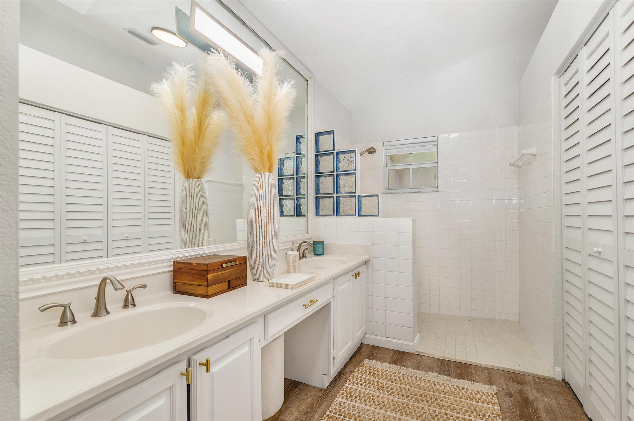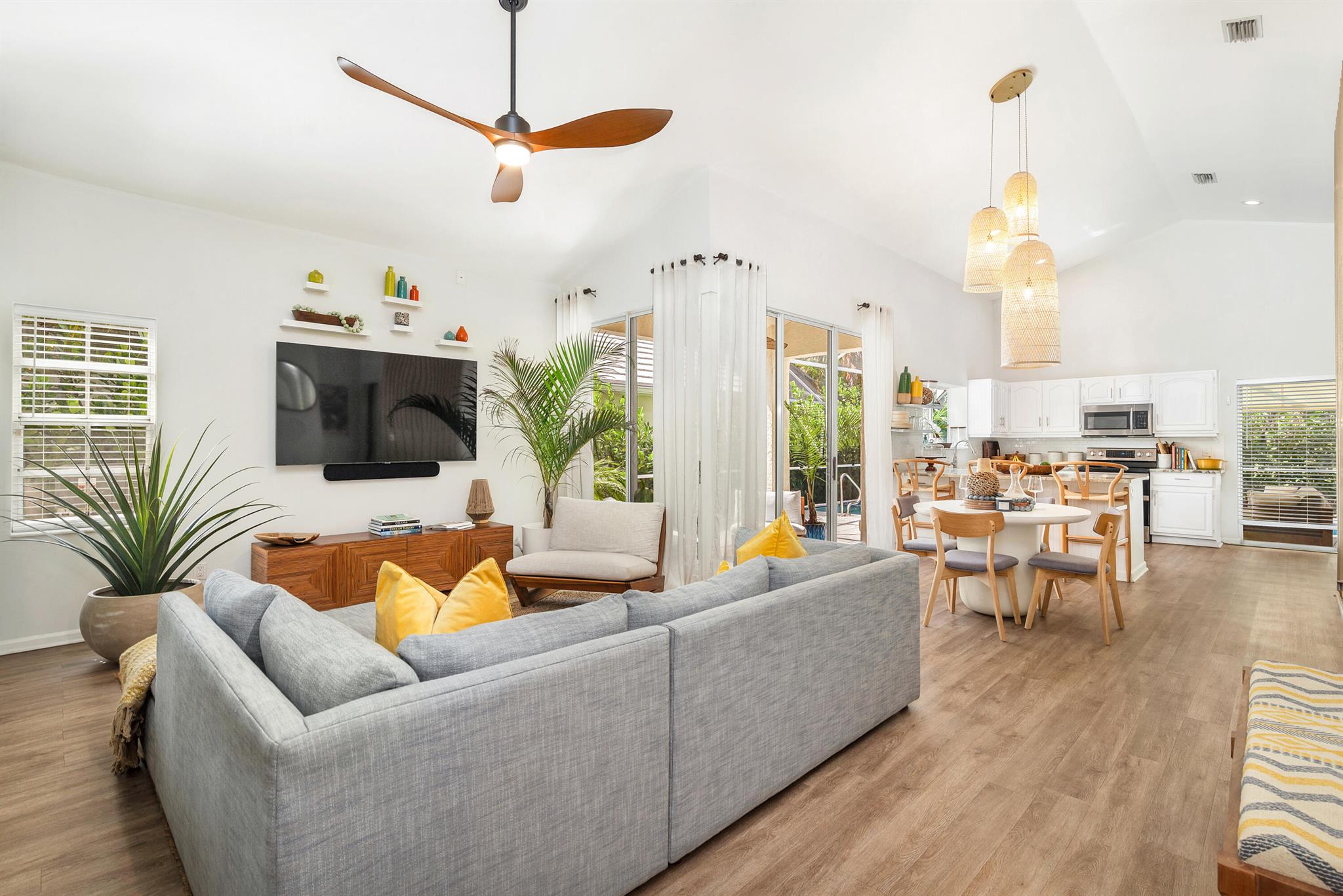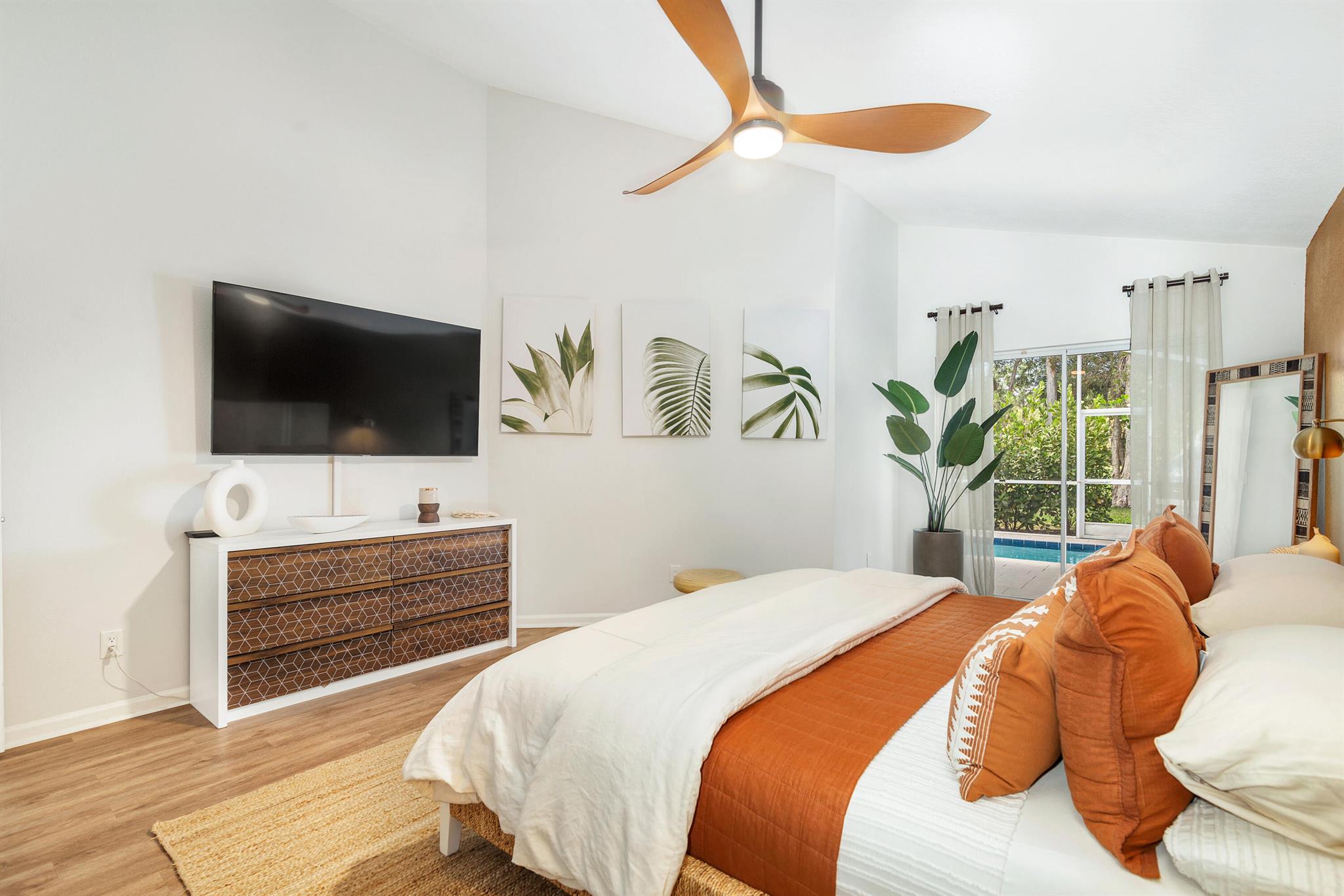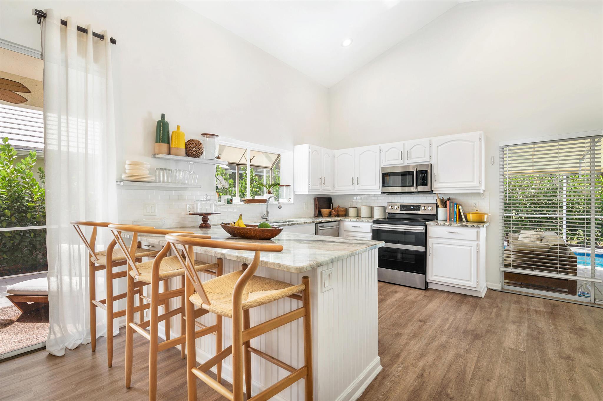 Beautifully designed in contemporary mode. This ideal 3 BDM 2.5 BA with screened loggia , heated pool/spa, and summer kitchen has total style. Upon entering the charming Bermuda courtyard you will enter a tranquil tropical oasis. Open kitchen with bay window, quartz counters and stainless appliances. A prime location with privacy hedge and sweeping views of the Mayacoo lakes Country Club Golf course just outside your garden. A must see! Competitively priced.Breakers West & Mayacoo Lakes are non-mandatory country clubs with golf, tennis, dining & more. Breakers West Ocean Club membership is available at a discounted rate for Breakers West residents only. 15 min to PBIA, Downtown WPB, beach & Palm Beach island. Excellent security with 2 manned gates & 24 hr.,roving security