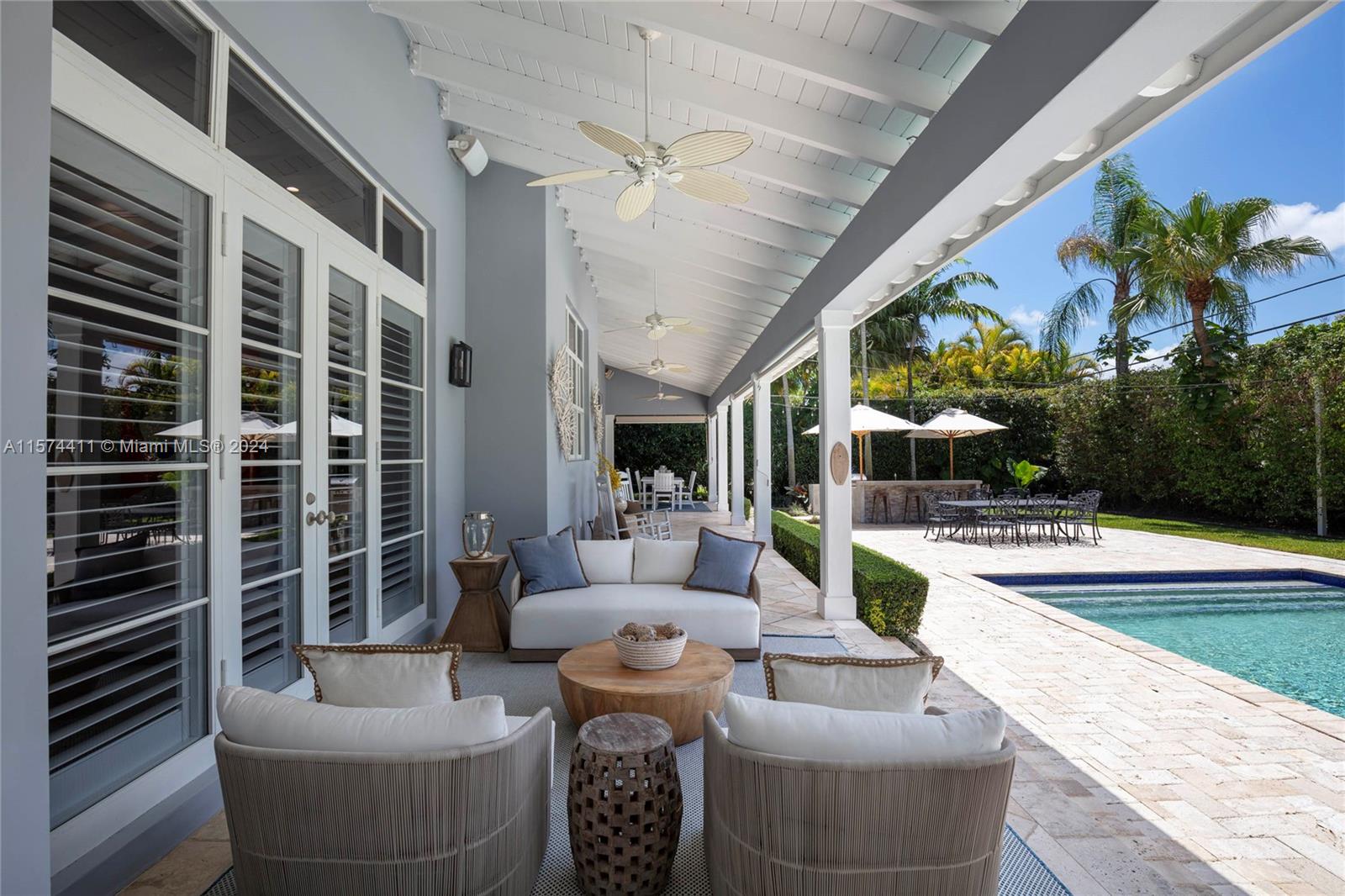 A special Key West estate on a beautiful canal-front block in the heart of Pinecrest. This home exudes both luxury and warmth with a thoughtful floor plan, soaring ceilings, abundant natural light, and tasteful finishes indoors and out. The heart of the home is the recently renovated kitchen with gas range, wine fridge, breakfast area, and picture window out to your backyard oasis. Enjoy the breeze on your wraparound front and back verandas, grill at the new summer kitchen, or splash in the sparkling pool. Oversized primary suite offers two walk-in closets, double vanities, and standalone tub. Stone and hardwood floors throughout, plantation shutters, Chicago brick driveway, and two-car garage. Perfectly located near top private and public schools. A home like this rarely comes along!