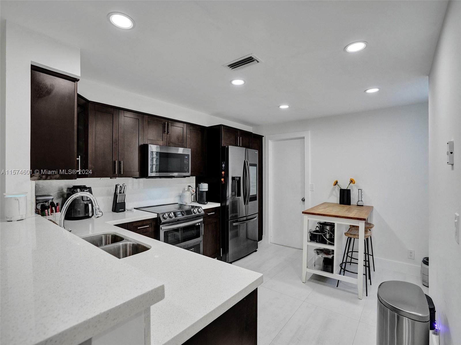 Updated Modern 2-bedroom, 2.5-bathroom townhouse nestled in the esteemed San Remo Gated Community of Weston, FL. The open floor plan boasts sleek tile flooring throughout. The kitchen has undergone a lavish transformation, with quartz countertops, stainless steel appliances, and a dual oven. An upgraded half-bathroom awaits on the first floor for guests. Step onto the screened-in patio, a serene spot for relishing the outdoors. A single-car garage, complete with a washer/dryer, and a tankless water heater. Upstairs, each bedroom boasts its own full bathroom and walk-in closet, ensuring comfort and privacy. Accordion hurricane shutters for added peace of mind. Embrace the gated community lifestyle, complete with amenities such as a pool, basketball court, playground, & ample guest parking.