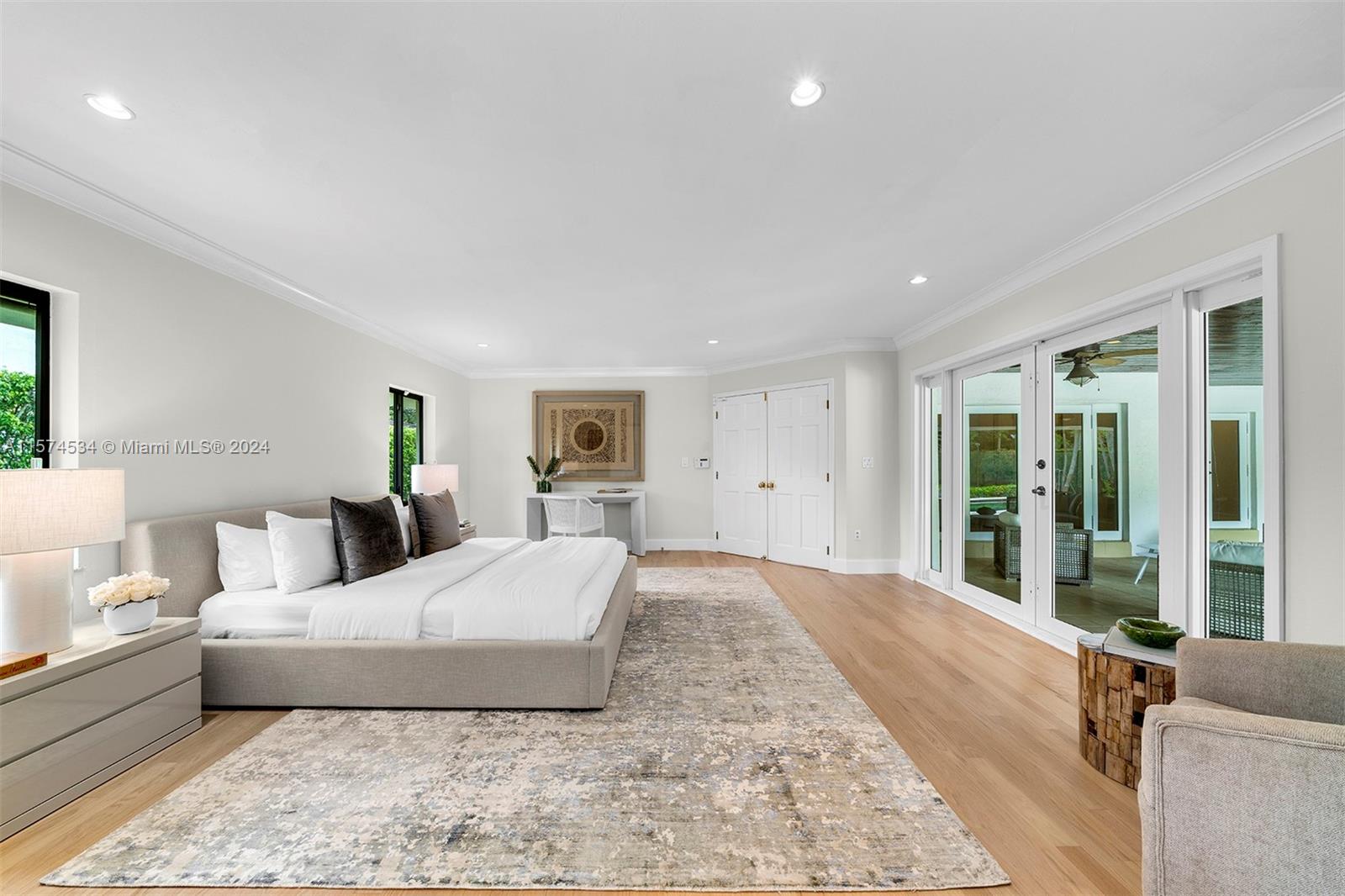 Discover an impressive one-story home in North Pinecrest with a tennis court. Welcomed by a grand foyer leading to a spacious formal living room with high ceilings, creating an inviting atmosphere. Discover spacious entertaining areas: formal dining, cozy breakfast nook, and open-style kitchen connected to a large family room. The family room boasts a convenient built-in bar and enjoy a home theater room on the second level for entertainment. Retreat to the renovated master suite with a spa-like bath and private outdoor deck. The backyard offers a tranquil ambiance with a pool, tennis court, and summer kitchen. Other features include a versatile playroom, impact windows/doors, and proximity to top-rated schools.