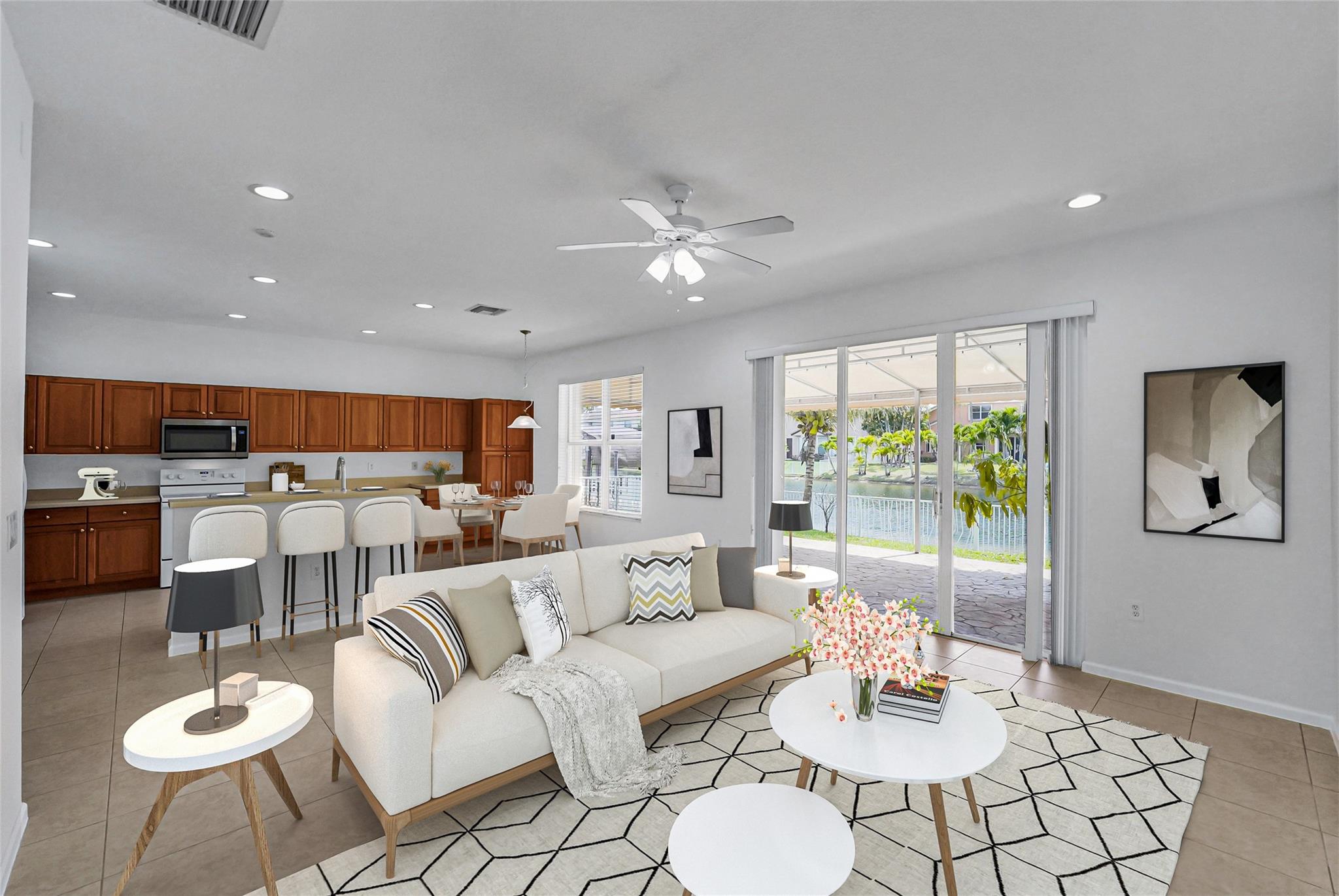 Welcome to your beautiful waterfront 5 Bed / 3 Bath home located inside the private and guard-gated community of Silver Isles. This spectacular two-story home boasts a generous layout with high-volume ceilings, tile floors, eat-in kitchen, a center island, plus a separate breakfast area with water views and a brand new 2023 roof. The home offers a spacious master bedroom, 3 additional bedrooms and a laundry room upstairs. 1 full bedroom and full bathroom at ground level. Best of all, this fully-fenced home has a big backyard with direct lakefront views. Community amenities include a clubhouse, resort-style pool area, playgrounds, picnic area, 24-hour security, and a gym!