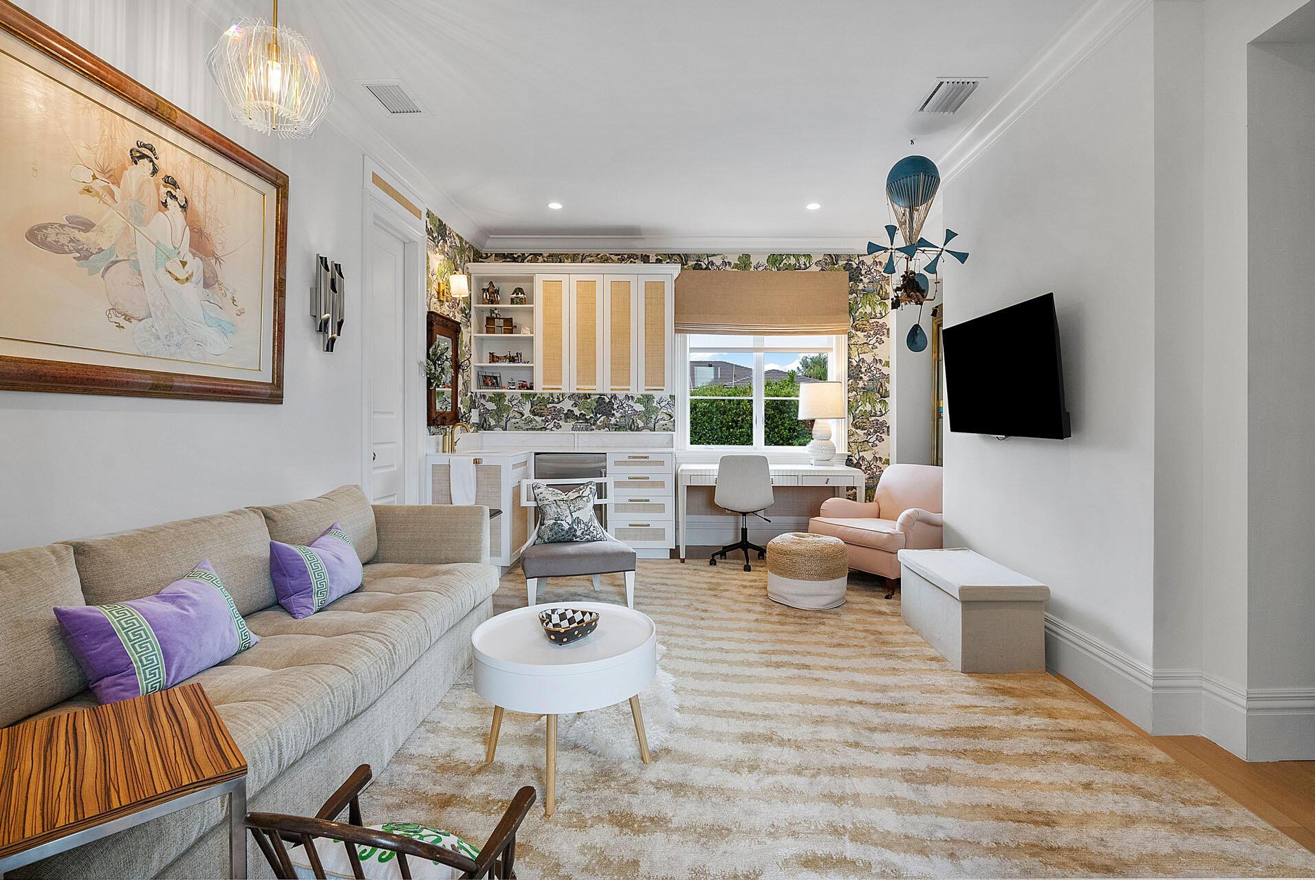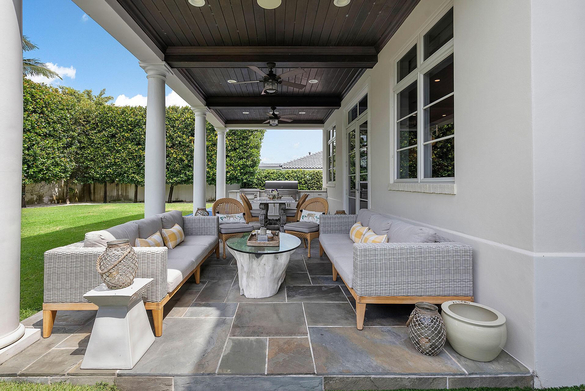 2333 Acorn Palm Road is a stately residence that seems plucked from the idyllic charm of the Hamptons, a masterpiece conceived by Tuthill Architecture and brought to life by B&M Building Co. Situated on a prestigious double lot within the Royal Palm Yacht & Country Club this home epitomizes luxury living.As you step inside, the interior unfolds with a seamless fusion of traditional and contemporary elements, creating an exquisite designer's haven adorned with hardwood, marble floors, and bespoke millwork. The layout seamlessly integrates five bedrooms plus a library, all connected by first and second-floor galleries stretching across the residence's length. A sophisticated club room with a bar and billiards, a second-floor living room, and a practical mudroom add to the functional