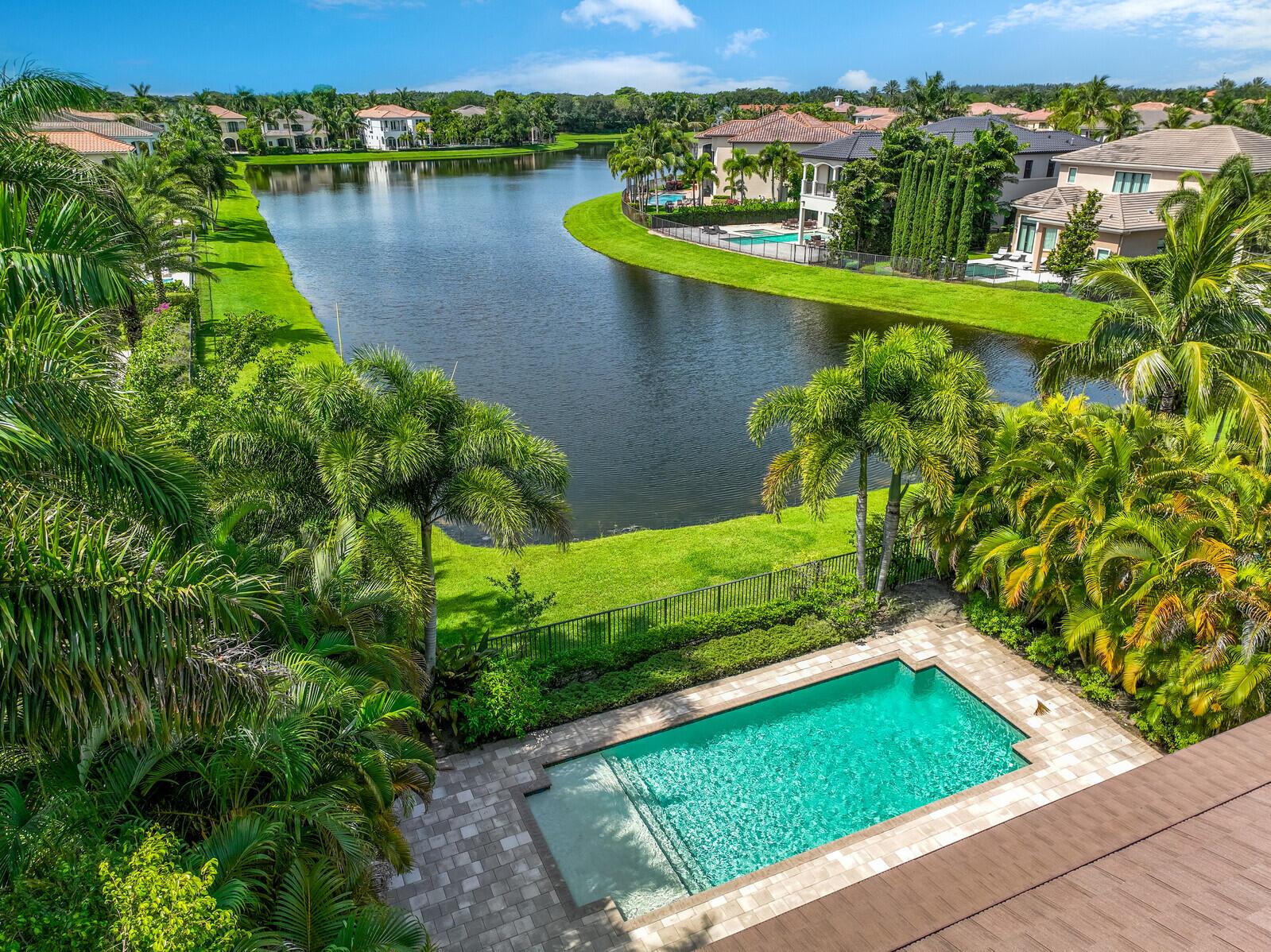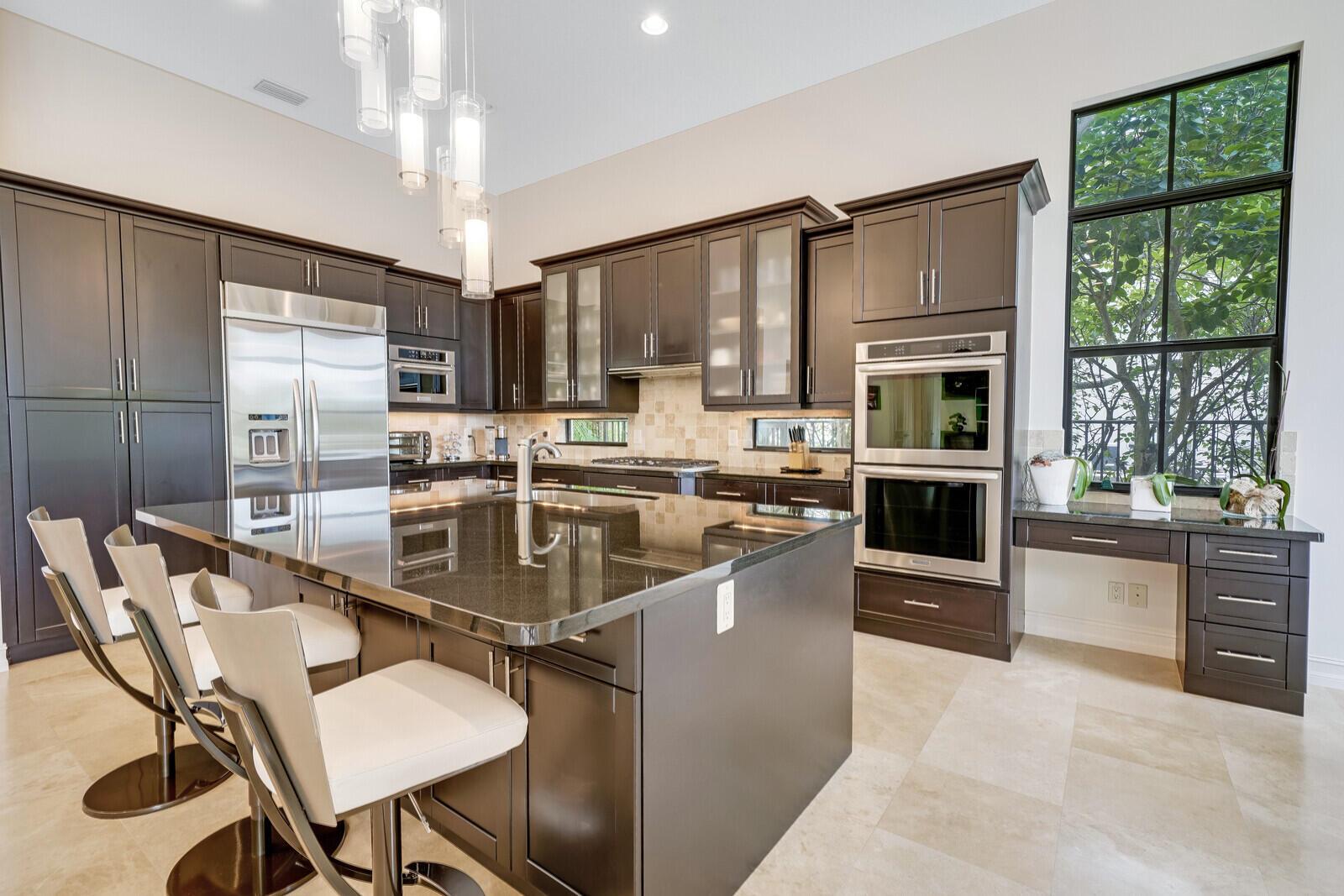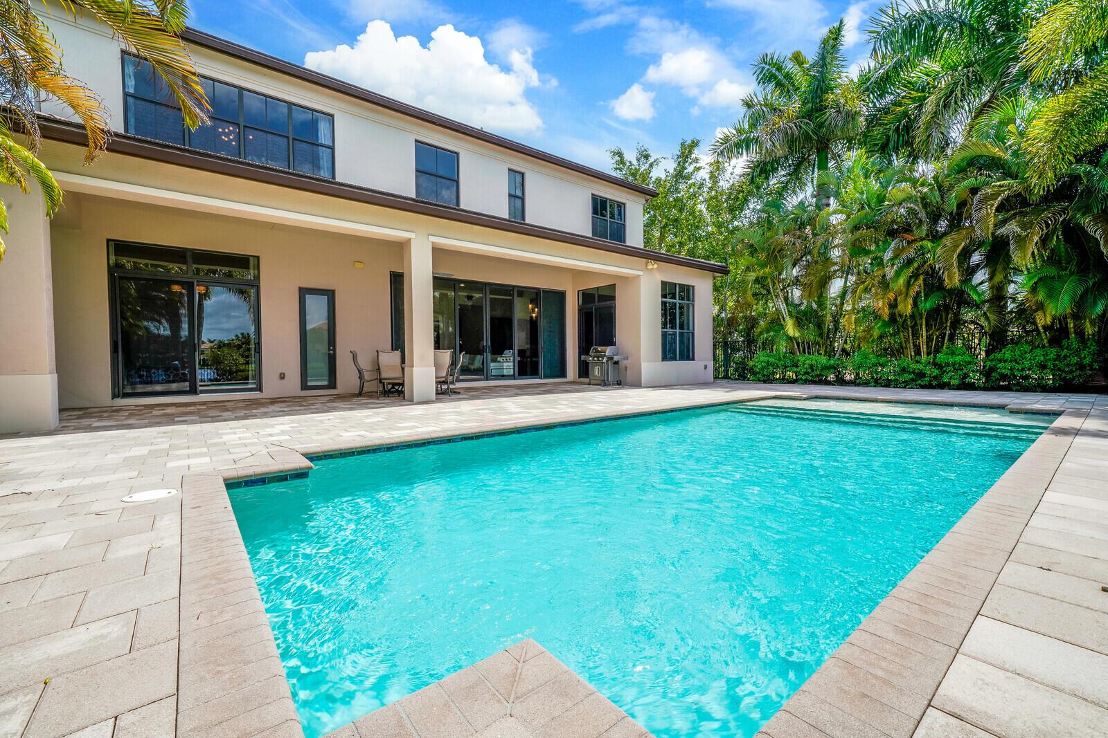 Relax while enjoying the captivating long lake view in this modern and serene estate on a generous .21-acre lot in The Oaks at Boca Raton. With 5 bedrooms and 4.1 bathrooms, this residence has plenty of space for your family and guests. The first floor encompasses a spacious living area, flexible library/den, and a gourmet kitchen with a lovely breakfast nook. Entertain with grace in the elegant formal dining room, while a guest room, full cabana bath, powder room, & a convenient laundry room/mudroom enhance daily living. The kitchen has sleek solid black granite countertops, a sizable island & high end stainless steel appliances including a double oven, natural gas stove, microwave, refrigerator/freezer, dishwasher & wine refrigerator. Enjoy meals in the picturesque breakfast area.