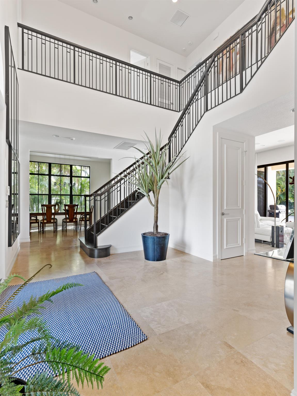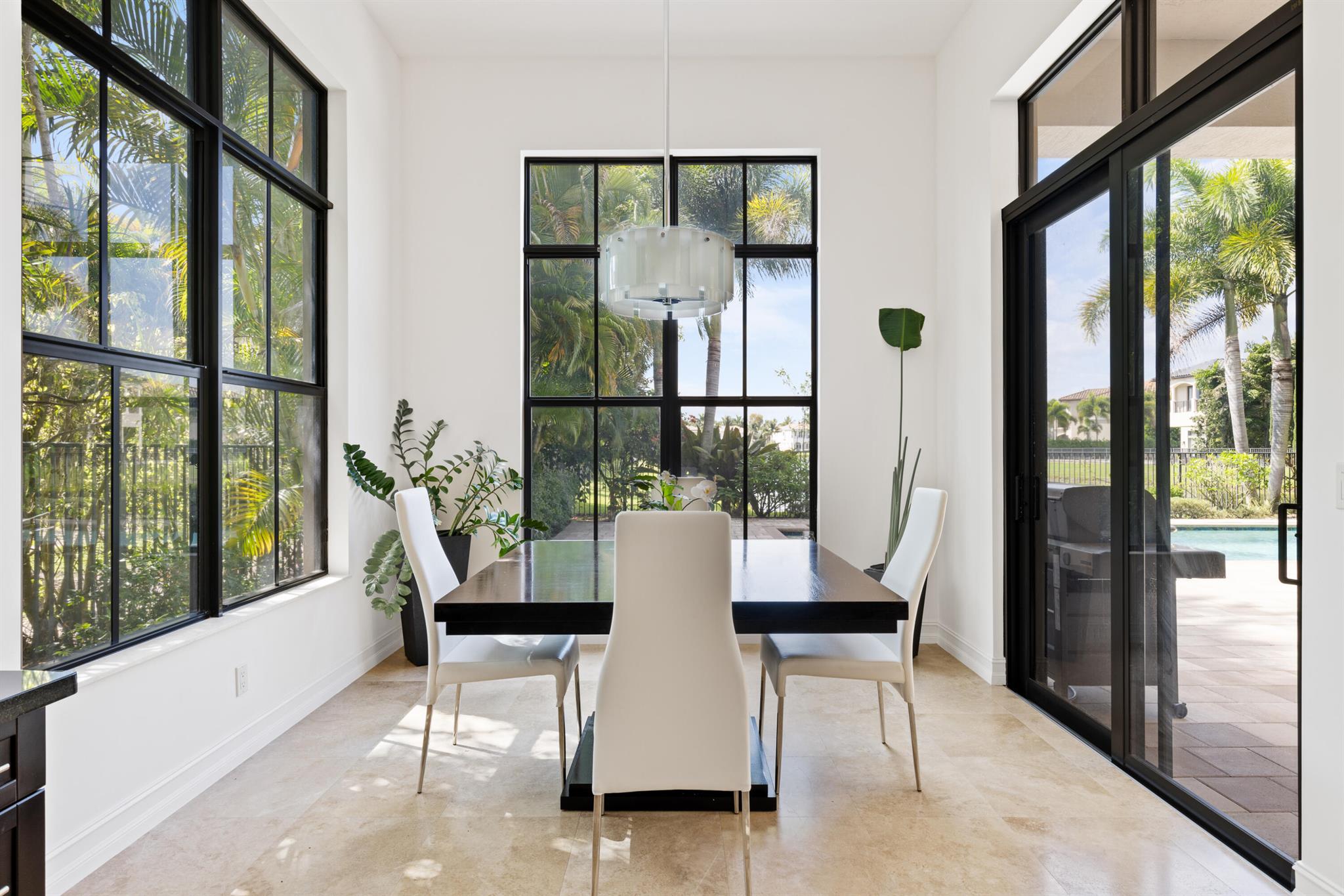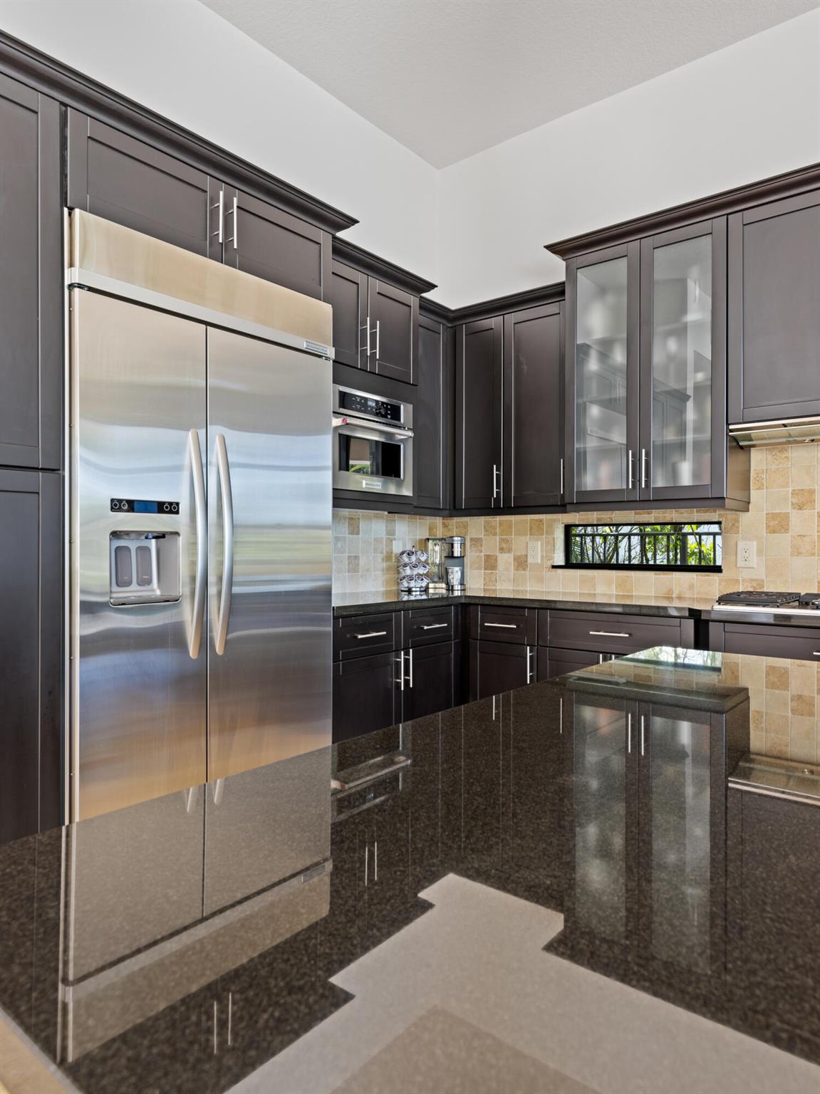 Relax while enjoying the captivating long lake view in this modern and serene estate on a generous .21-acre lot in The Oaks at Boca Raton. With 5 bedrooms and 4.1 bathrooms, this residence has plenty of space for your family and guests. The first floor encompasses a spacious living area, flexible library/den, and a gourmet kitchen with a lovely breakfast nook. Entertain with grace in the elegant formal dining room, while a guest room, full cabana bath, powder room, & a convenient laundry room/mudroom enhance daily living. The kitchen has sleek solid black granite countertops, a sizable island & high end stainless steel appliances including a double oven, natural gas stove, microwave, refrigerator/freezer, dishwasher & wine refrigerator. Enjoy meals in the picturesque breakfast area.