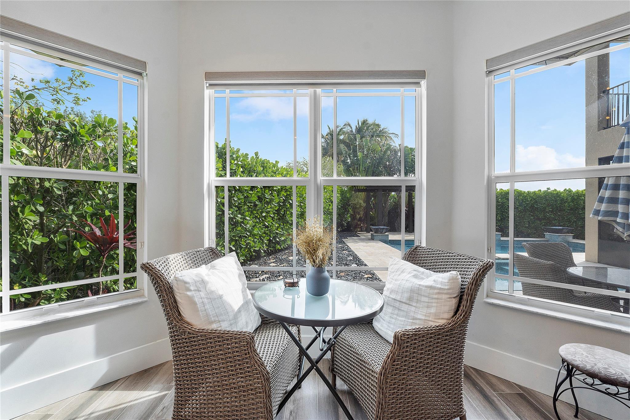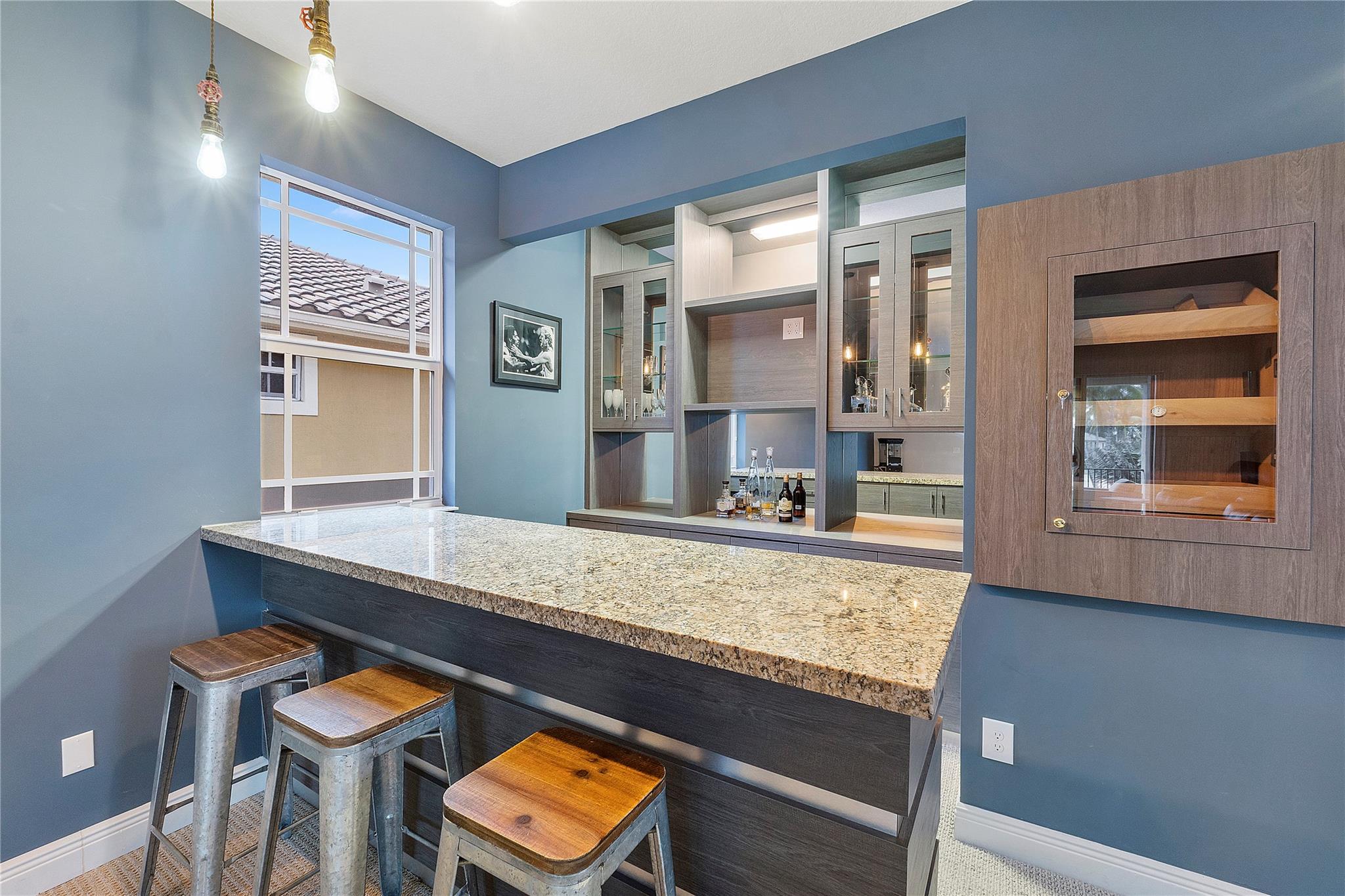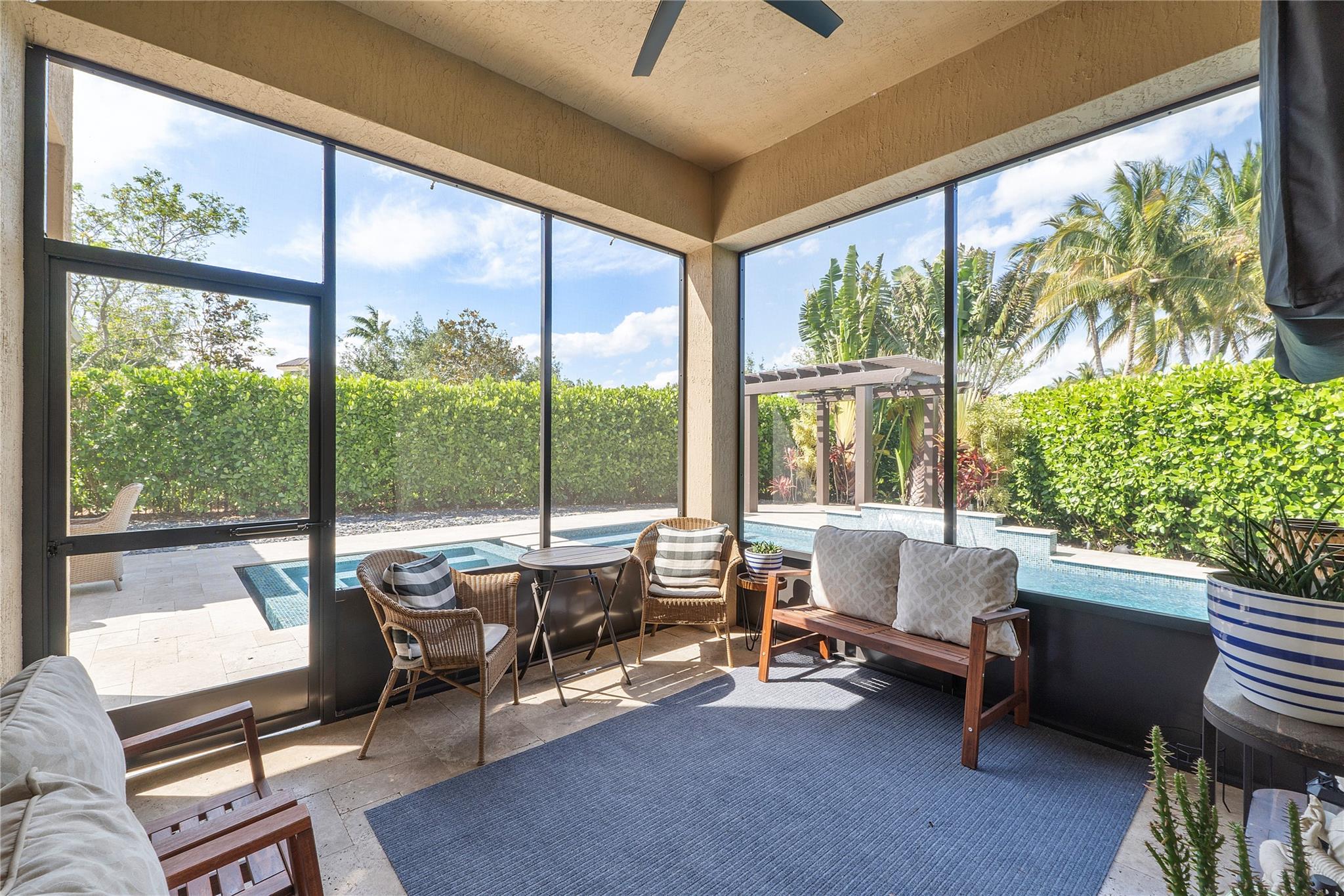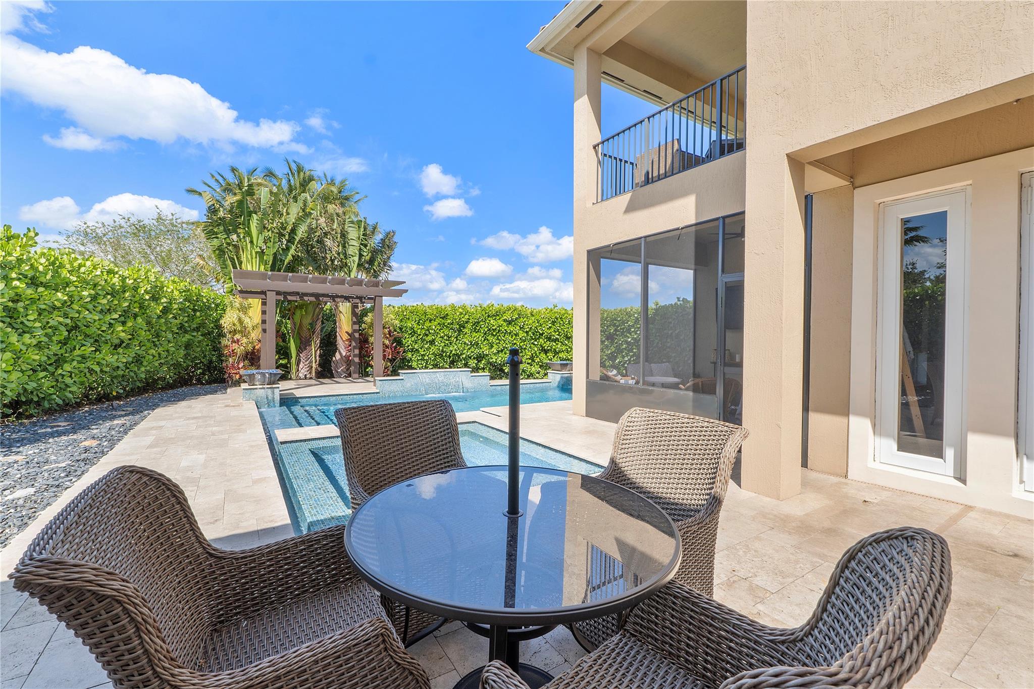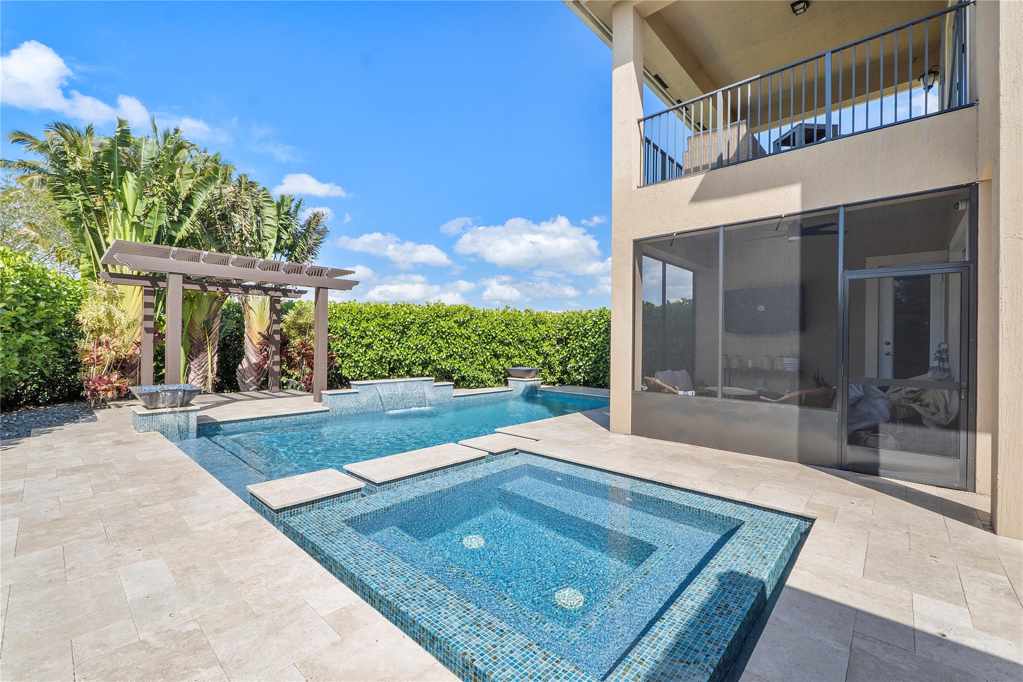 Resort-style living at Parkland’s prestigious, man-gated community of Miralago. Elegant Wentworth model with five bedrooms, and six-and-one-half baths. Spacious downstairs Primary suite with custom built-in closets, three ensuite bedrooms upstairs, plus an additional bedroom, bathroom, and theater room with a custom built-in bar and humidor. Den, Laundry, and air-conditioned three-car garage with parking for up to three cars. Screened-in back patio with a beautiful, heated saltwater pool with water and fire features. Impact windows/doors throughout. Hard wired cat 5, mosquito system installed by Mosquito Mix, surround sound system, wiring for 2 outdoor tvs, remote controlled Zebra shades on the first floor. Use of two clubhouses with resort-style amenities and sport complex!