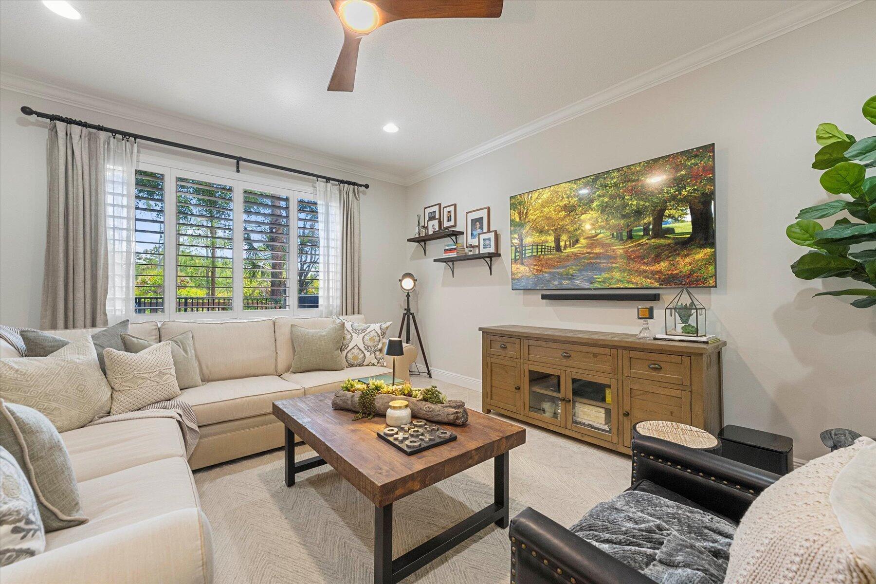 BEAUTIFUL and meticuously maintained townhome, on one of the nature preserve lots, in the quiet development of Oakton Preserve. This 3 bed, 2.5 bath townhome features 1.5 inch quartz countertops, LG and Maytag Stainless appliances, white maple cabinets in Kitchen, extra pantry space, Hurricane Impact windows and doors, Plantation Shutters throughout entire home, NEW June/2023 AC, newly turfed DREAM backyard space, privacy greenery on fully fenced backyard, preserve lookout (extra privacy with no neighbors behind you), covered screened patio space, LARGE master bedroom with tray ceiling, 2 walk-in closets, HUGE master bath with roman tub/separate shower and private water closet, 2 spacious spare bedrooms off of the loft area (loft is perfect for office space), pull down stairs to attic
