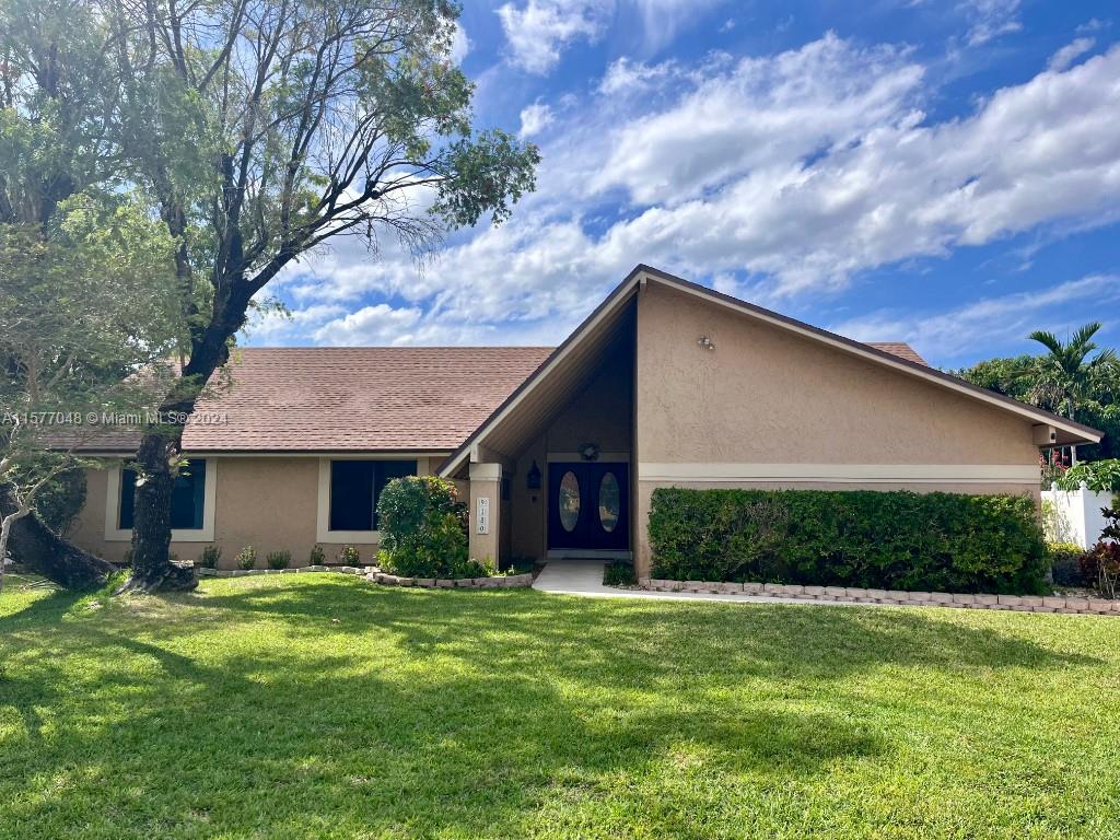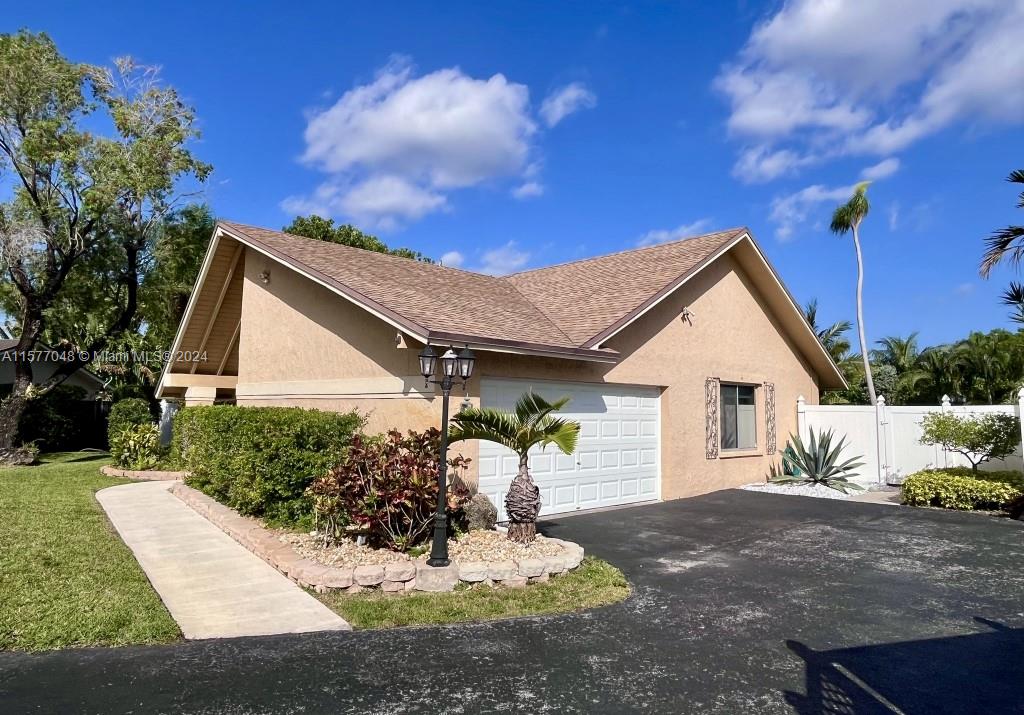 Move-in ready at end of cul-de-sac. New roof being installed. Never floods. Vaulted ceilings, open living area, natural light. Large backyard is a tropical oasis with veranda, pool, hedge, large fruit trees and entertaining areas. Very private & peaceful. Separate HOA-approved boat/trailer storage behind a fully-fenced backyard. Great for kids and dogs. Open concept, renovated kitchen with island and granite countertops. Indoor laundry. Spacious living and dining areas. Large Master Suite with walk-in closet. Master Bath has a large shower and double-sink granite vanity. Clean 2-car garage with workshop is side-facing for additional privacy and security. Long driveway with double-gate for easy access for boat/trailer. Hurricane shutters included. Clean and meticulously maintained.
