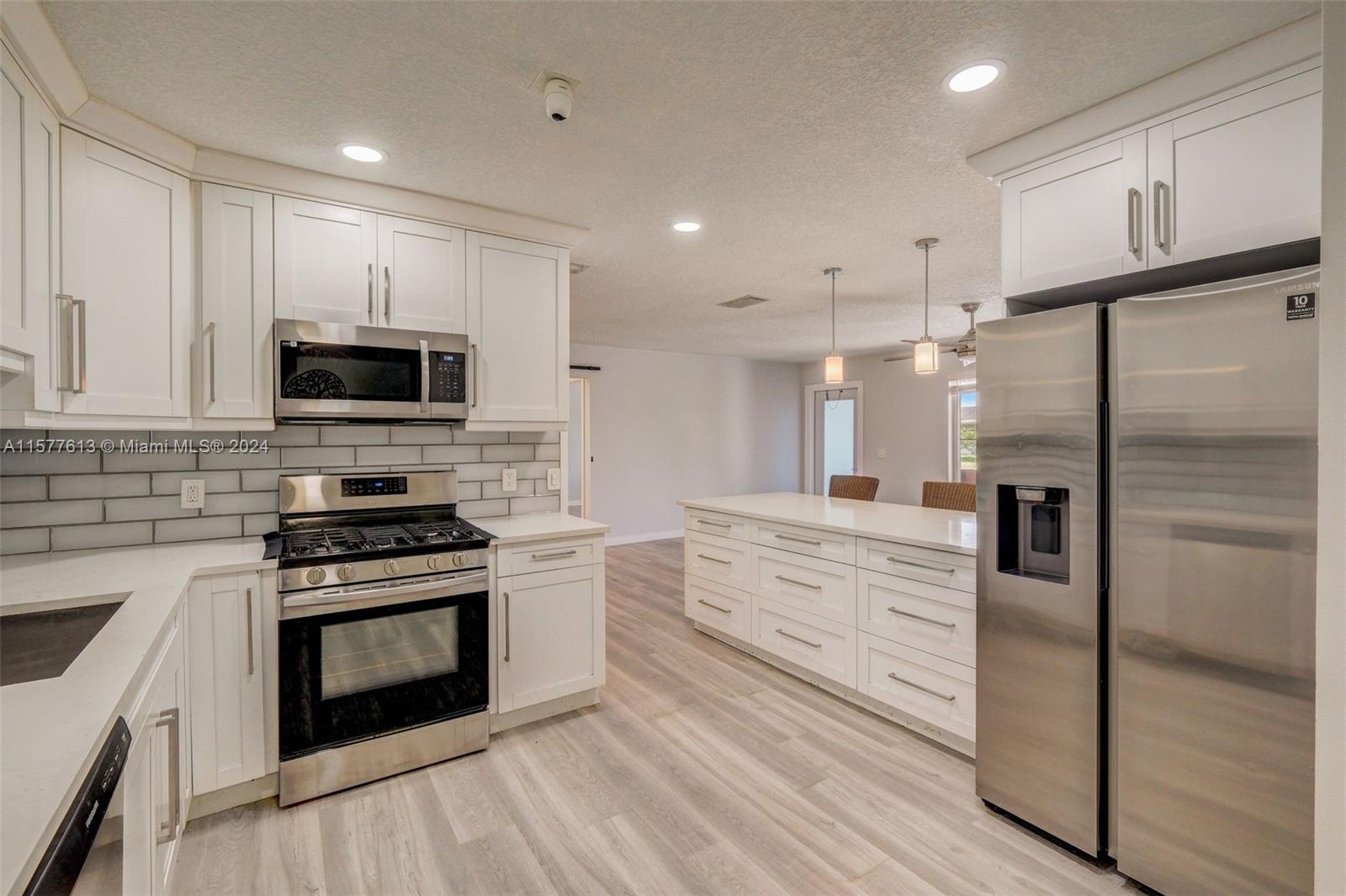 Don't miss out on this exceptional opportunity to own this stunning 4 bedroom 2 bathroom oasis. This home has luxurious features; a Phone App or manually controlled sprinkler system, a soft-water filtration system, privacy hedges, and elegance with a PVC Fence surrounding the property for ultimate comfort and convenience. Illuminate your evenings with landscape lighting and ensure security with a state-of-the-art security camera system and address lighting. Indulge in modern updates like a gorgeous custom kitchen with quartz countertops, recessed LED lights, and remodeled bathrooms. Hurricane windows with Blue 3M tints to reduce heat by 4/5 degrees during warmer days. No HOA or parking restrictions. Plus, it's been recognized with the prestigious Best Home in Sunrise award in 2023.