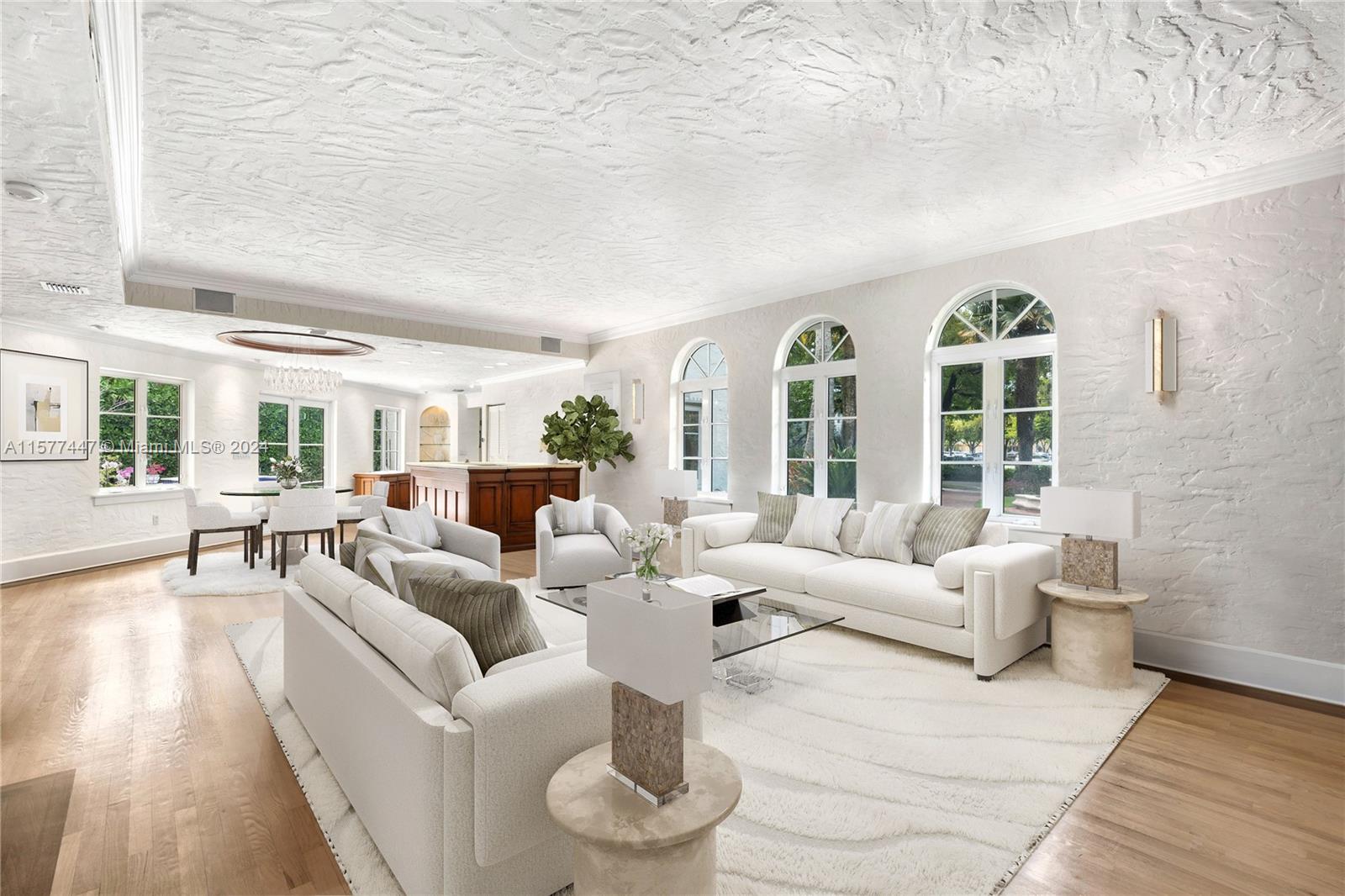 This elegant two-story 1924 Old Spanish is the epitome of quintessential living on one of Coral Gables' most prestigious street addresses. This architectural gem designed by Kiehnel & Elliot exemplifies the pinnacle of Mediterranean Revival Artistry. Situated on a 20,645 SF lot right in front of the iconic Biltmore Hotel, the tropical lush landscaping offers immense privacy & a serene atmosphere. The grand foyer overlooks the award-winning pool. 1st floor features 2 bedrooms, 2 full baths, renovated eat-in kitchen with Quartzite countertops, formal dining, living room & media room. 2nd floor features 5 bedrooms + den, 4 bathrooms & large primary suite and bath with built-in sauna, & covered balcony. Home has newer electrical, plumbing, impact windows/doors throughout.