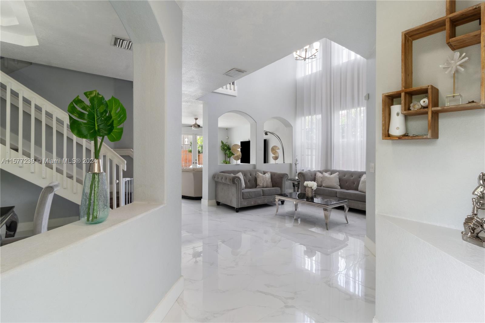 Stunning and modern corner house in beautiful gated community Santori at Viscaya. Kitchen has quartz counter tops and top of the line Stainless Steel appliances. Master Bathroom updated and other two bathrooms have new floors and vanities. modern ceramic floors in fist floor and Water Resistant laminate floor in the second floor. recently painted Pool deck and patio has been updated with traveltine paver, outside cabana kitchen, accordion shutters. Plenty of parkings, Easy to show, perfect for a big family or investor.