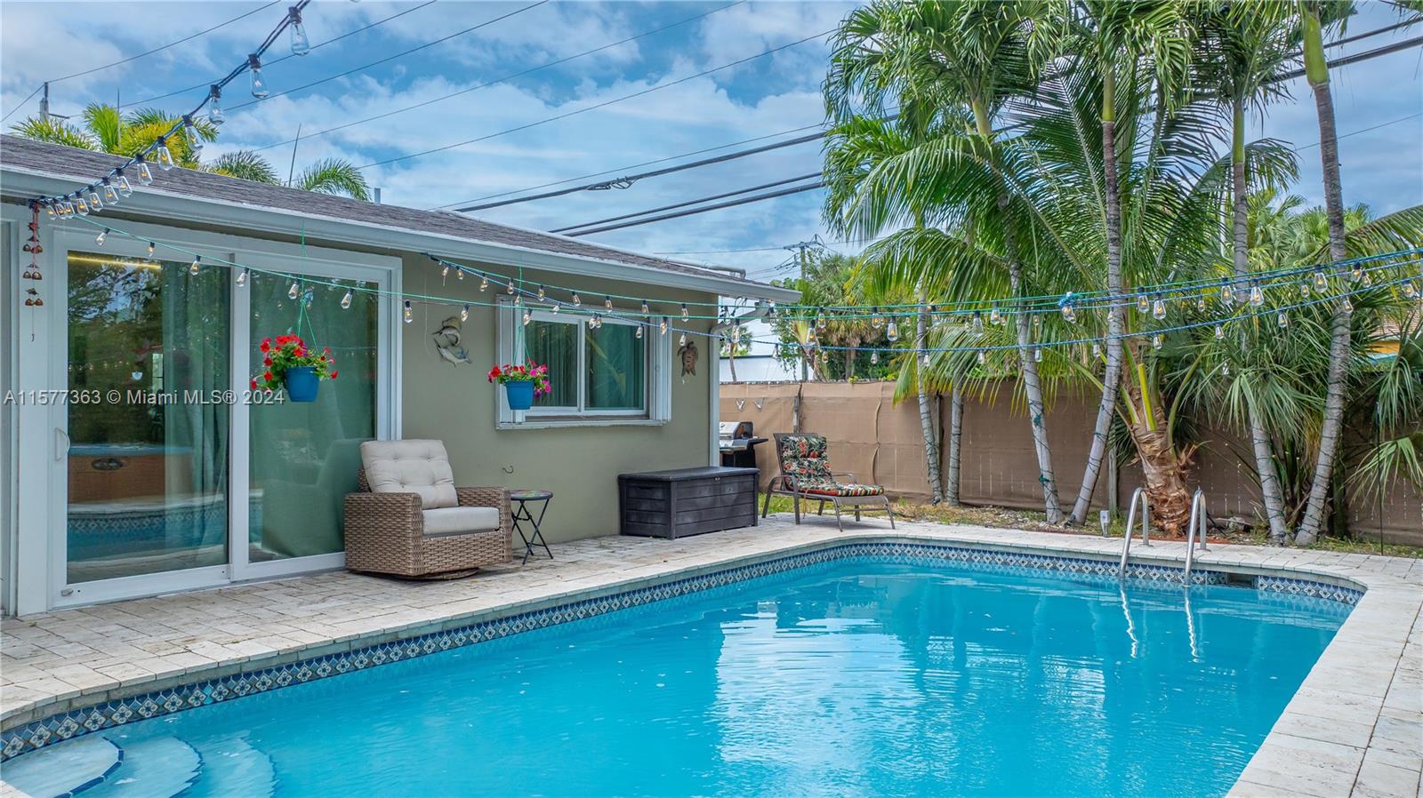 GORGEOUS 3BED/2BATH TURN KEY READY POOL HOUSE AT THE GREAT LOCATION! This beautiful spacious home has an open concept with lots of space. A big patio leads to a tropical oasis with a large swimming pool, perfect for entertainment and relaxing. Heated pool and jacuzzi, outdoor patio with a BBQ. No HOA, perfect for investors / Airbnb and absolutely amazing for a vacation home or living permanently! Located in the coveted west side of A1A and just a few miles to the Fort Lauderdale beach, Las Olas, restaurants, shopping and activities. Call us and arrange a private showing today!THE SELLERS ARE EXTREMELY MOTIVATED"and that "TOTAL HOUSE SQ FOOTAGE IS 1860 SQ FT".