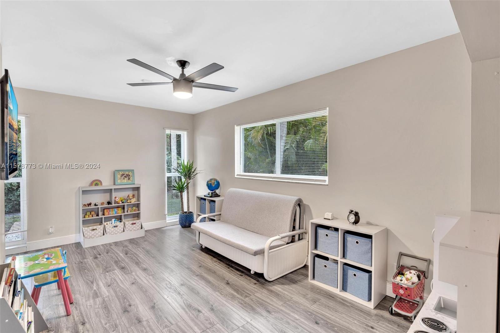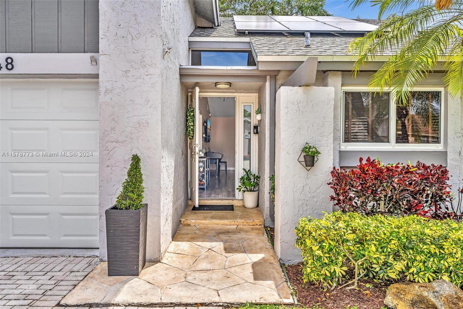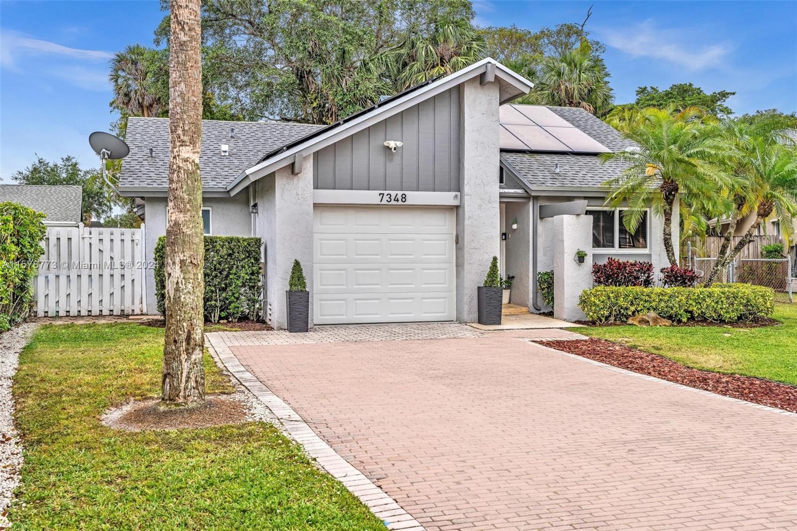 Welcome to your serene Coral Springs retreat! This is a MOVE IN READY home. NO HOA. Spacious 3 Bedrooms + Home Office + 2 full bathrooms. LAMINATE floors throughout entire home. Enjoy modern comforts including a NEW ROOF 2022 with solar panels, fully renovated kitchen and bathrooms, IMPACT windows, garage, and a fenced yard with a covered patio.