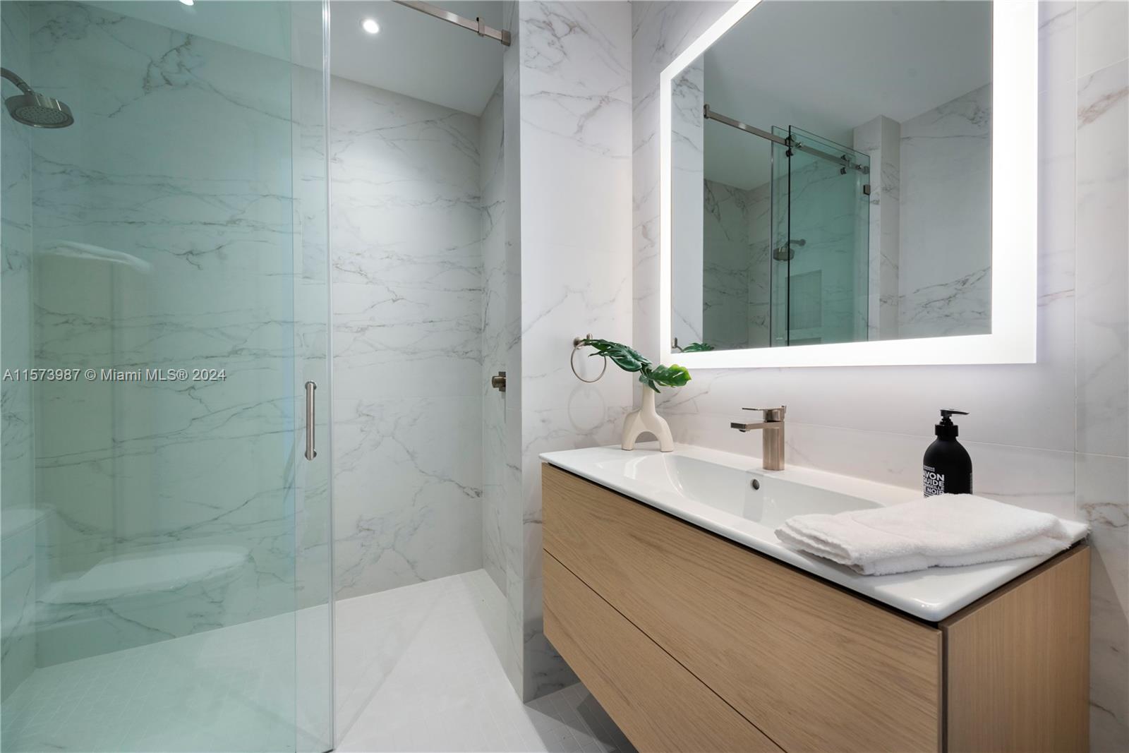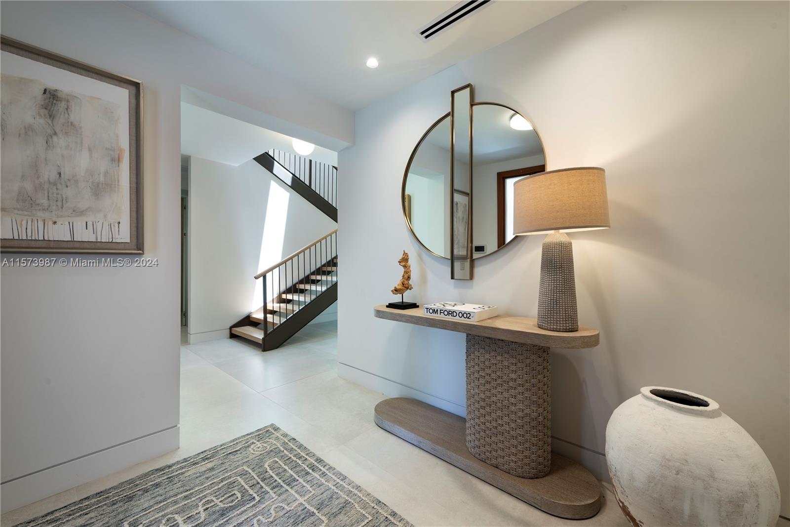 Newly built luxury home, combines elegance and advanced technology. Over 4360 sq ft of living area and 10 ft ceilings throughout. A stunning and sophisticated main living area has floor to ceiling efficient low-e impact windows. A high-end kitchen with Italkraft cabinets and Wolf Sub-zero appliances, complimented by a custom wet bar. The functional layout offers a bedroom on the lower level suitable for various uses. Primary bedroom with sitting area, walk in closet and marble adorned primary bath. Take your entertaining and family fun outdoors, enjoy beautiful mature landscaping by CLAD, pool and large covered terrace. State of the art amenities such as Lutron RadioRA3 lighting system, Cat-6 wiring, are just a few of the many features. The pinnacle of comfort and luxury in Miami Shores.