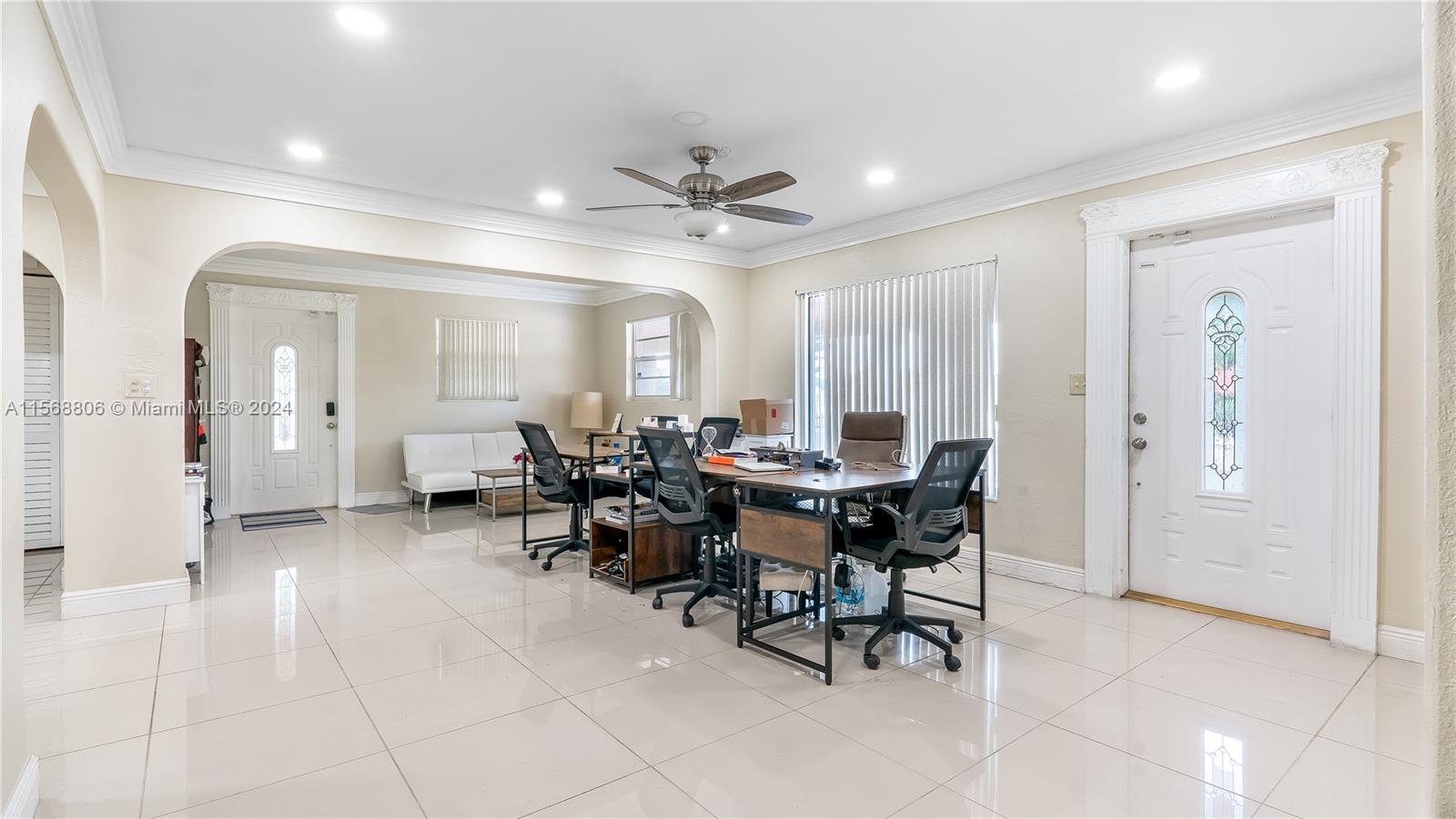 Oversized Wilton Manors corner home looking for a new owner to be able to emphasize the true hidden diamond in the rough, that only persons with a vison can see this through some simple touches. Coming home to your own private get away from it all in this almost 2000 sq ft solid concrete structure with a barrel tiled roof and enough parking to have a very large party. The home boasts arch ways throughout the unit, with 24x24" tile flooring. While the bedrooms host laminate floors in a beige colored wood. The Kitchen has a speckled granite countertop that accentuates the light-colored wood cabinets, still leaving room to add a large island. the home has a main double door entrance that leads into a hallway or use one of the other 2 entrance ways into your new home after you enter the gates.