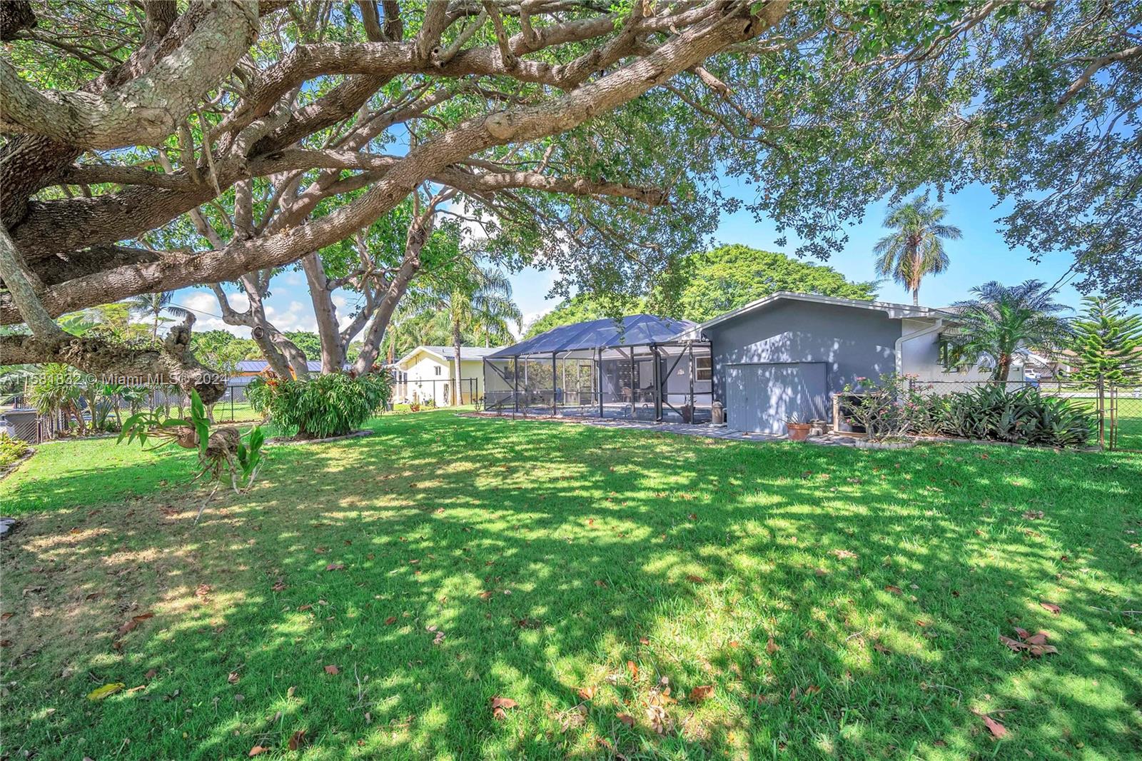 Tropical paradise! Extensively remodeled 3 BR, 2 full bath pool hm, spectacular 10,794 sq ft fenced corner lot. Enjoy fully screened covered patio, pool, gorgeous grass backyard, shade trees, huge avocado tree, numerous tropical plantings. Iimpact windows, doors, 2011 roof. 2017 eat-in kitchen, stainless steel appliances, granite counters, wood cabinetry. Remodeled primary suite, double sliding impact glass doors as private pool entrance, 2017 updated bathrm. One car garage, big circular paver driveway, all the parking you could want. 2019 American Standard package A/C, 2018 water heater, 2017 electric, 2024 exterior paint. Awesome location, walk to schools, Memorial Hospital childcare, Memorial/DiMagio Hospital complex, minutes to beach, Hard Rock Casino, Airport, much more. No HOA fees!