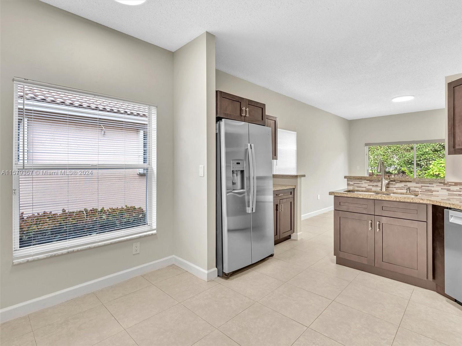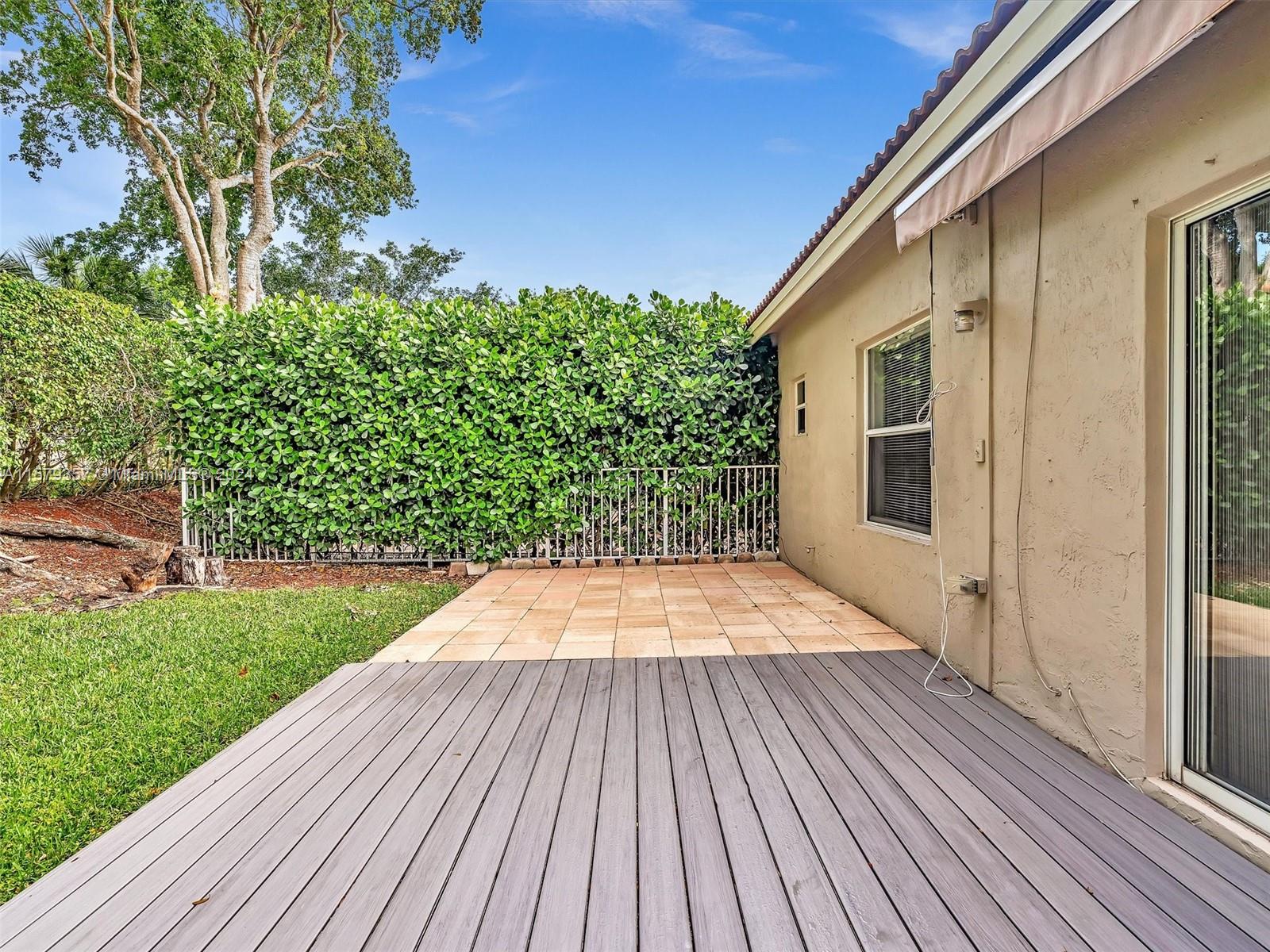 One of the lease expense homes in Weston FL! This charming 3 bed/2 bath one story home with 1 car garage is set on a private lot with no neighbors behind. Relax on the large outdoor deck (2023) and enjoy the shade from the retractable awning. The interior features an eat-in kitchen with wood cabinets and granite countertops, formal dining room, large neutral tile throughout, split bedroom plan and more! Freshly painted! Maintenance fee includes basic cable, basic internet, monitoring of ADT security system, lawn maintenance, community pool, fitness center and playground. 24 hour man gated. Steps to Emerald Estates Park. Zoned for A+ schools.