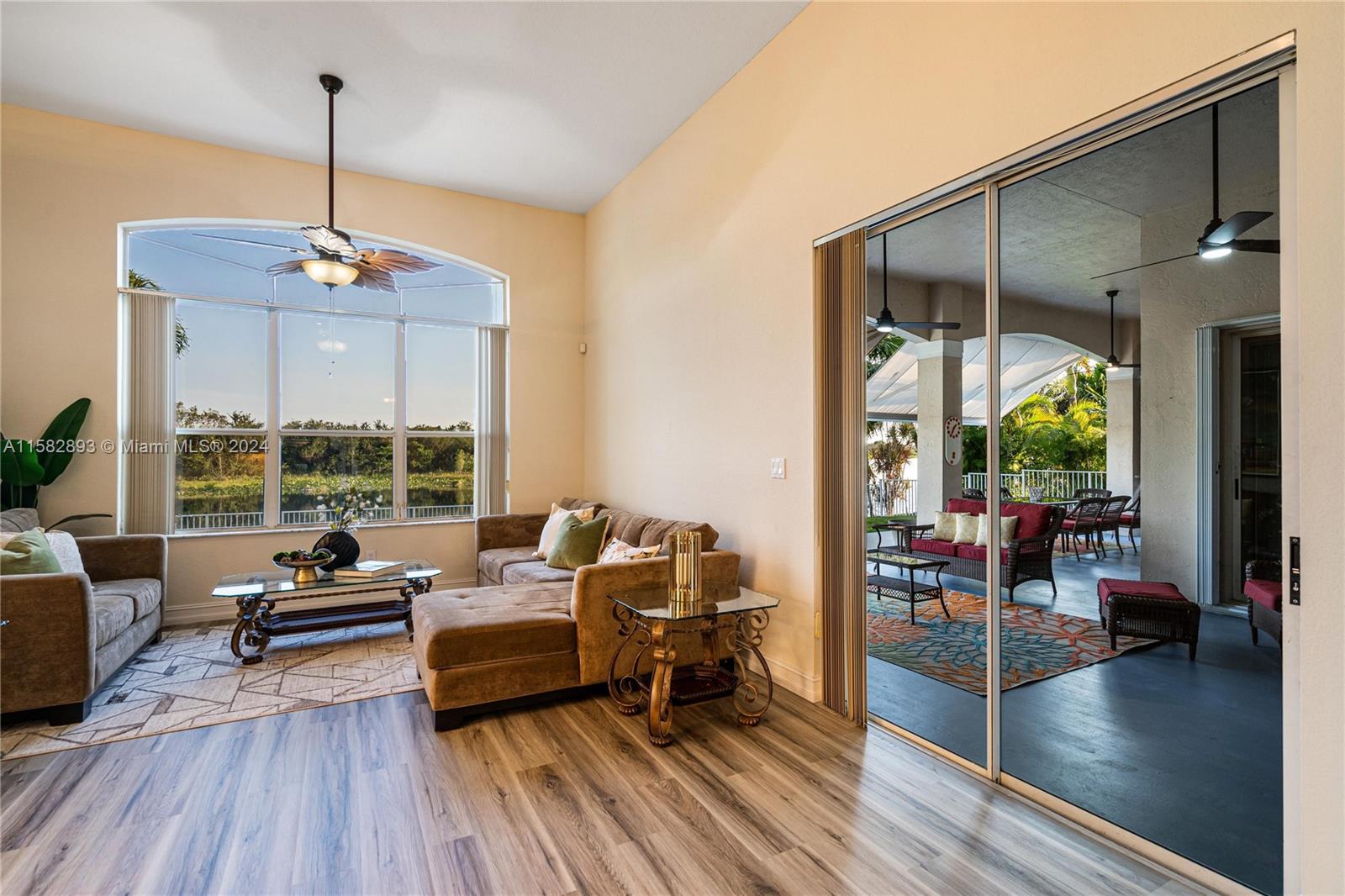 "Explore the freshly remodeled 'CLARIDGE' model, located lakeside with views of a vast preserve. This home offers lake panoramas from the master bedroom, living room, and kitchen/family area—ideal for entertaining. The layout includes split bedrooms for privacy, a formal dining room, and a chic bar area. The updated kitchen boasts advanced appliances and extensive storage. Additional features include a modernized laundry, ample closet space, and a private backyard for serene sunset views. Located in the gated Estancia community, the home benefits from a lake-fed sprinkler system, ensuring lush landscaping."