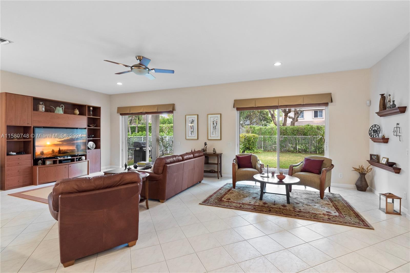 Spacious 1 story home in Weston’s Savanna.Close to south gate & short walk to the fabulous clubhouse, pool complex + Cafe.A true Great Room to adapt to your lifestyle & living needs,dining,living,family,breakfast,counter seating.3 bedrooms +den w/built in desk & shelving & 2 full updated baths.Updated kitchen with real wood cabinetry,granite countertops & SS appliances. Ample storage & in pristine condition.Interior laundry room w/ laundry tub & newer wood cabinetry. Private main suite w/ separate tub & shower. Secondary bedrooms split fm primary w/ tub/shower combo bathroom.Nicely shaded covered patio w/ room for a pool.Complete accordion shutters, alarm system.Orig roof in excellent condition.This home is move in ready & beautifully maintained.Actual SF is 1940sf see floor plan attached.