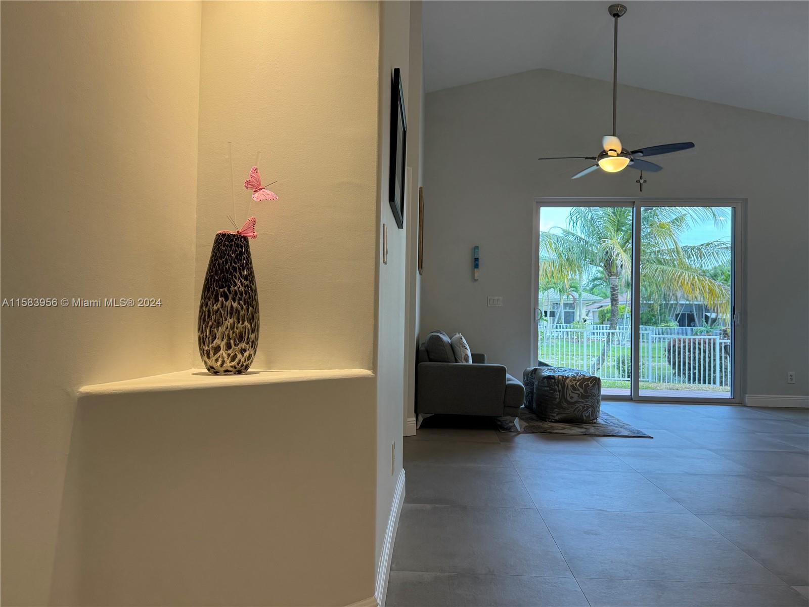 Gorgeous remodeled home in Wyndham Lakes! LAKEFRONT!! Enjoy your tropical retreat and peaceful lake views under the covered back patio & fully fenced yard! Modern eat-in kitchen with Calcutta Gold Quartz Counters, Stainless Steel Smart Appliances, subway tile backsplash. 3BR, 2BA, 2 car garage. Porcelain tile floors are 36 x 36 and have the modern concrete look. House has been painted inside and out. New impact windows and doors! Open floor plan. Super high volume ceilings. Split bedroom floorplan with a grand size master suite. Lovely community pool, and security gated! Mayfair community has a rare super low HOA of only $100/mo. Excellent schools down the street, and this home is ZONED for Marjory Stoneman Douglas High School! MUST SEE!!