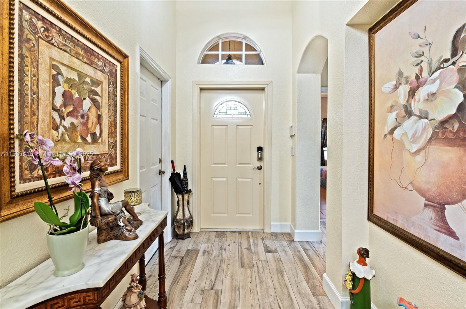 GORGEOUS SINGLE STORY HOME WITH SCREENED-IN SWIMMING POOL PERFECT TO STAY COOL IN THIS HOT SUMMER! FEATURING NEW DIAMOND BRIGHT FINISH AND ELEGANT TRAVERTINE FLOORING. INSIDE, INDULGE IN THE SEAMLESS FLOW OF PORCELAIN WOOD FLOORS THROUGHOUT, ADDING WARMTH AND SOPHISTICATION TO EVERY ROOM. COMPLETELY REFRESHED WITHIN THE LAST 24 MONTHS, THIS HOME IS THE EPITOME OF MODERN ELEGANCE. SOLAR PANNELS FOR POOL & NEWER POOL HEATER, UPGRADED TILE FLOORING THROUGHOUT THE LIVING AREAS, ELEVATING THE AMBIANCE OF EACH SPACE. EXPERIENCE LUXURY IN EVERY DETAIL WITH METICULOUSLY UPGRADED BATHROOM FIXTURES AND STUNNING POOL SCREENINGS. DELIGHT IN THE UPGRADED KITCHEN FEATURING GRANITE COUNTERS AND A BEAUTIFULLY CRAFTED BACKSPLASH, ADDING BOTH STYLE AND FUNCTIONALITY TO YOUR CULINARY HAVEN.