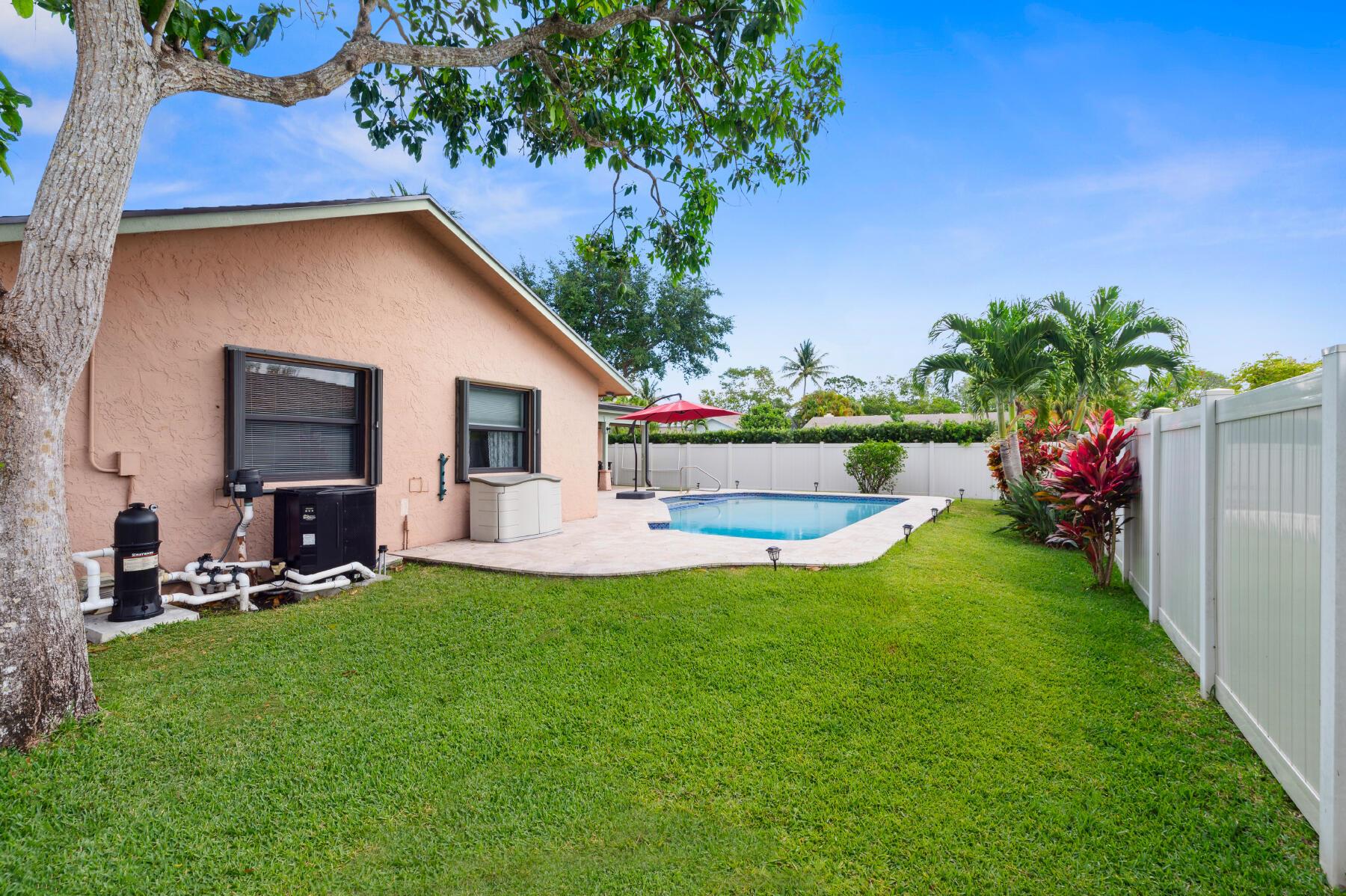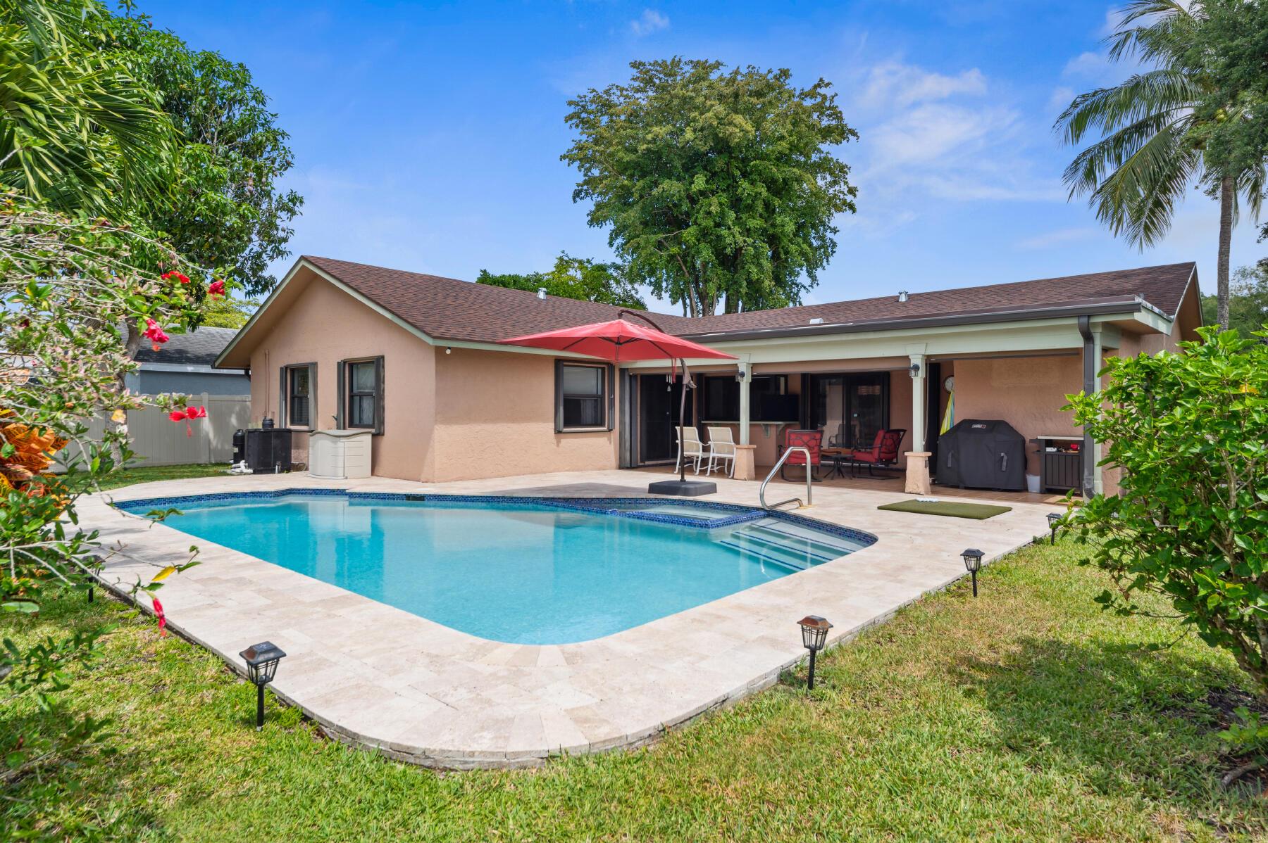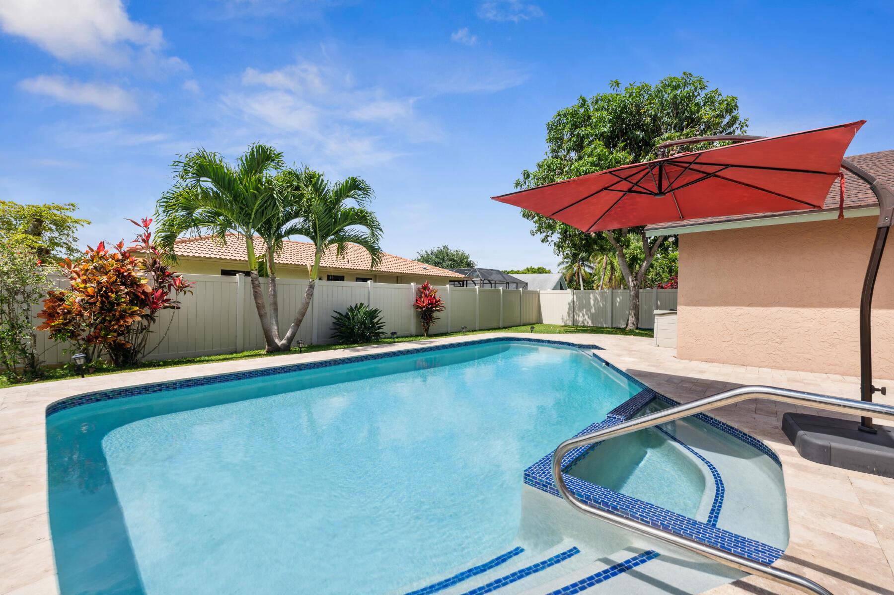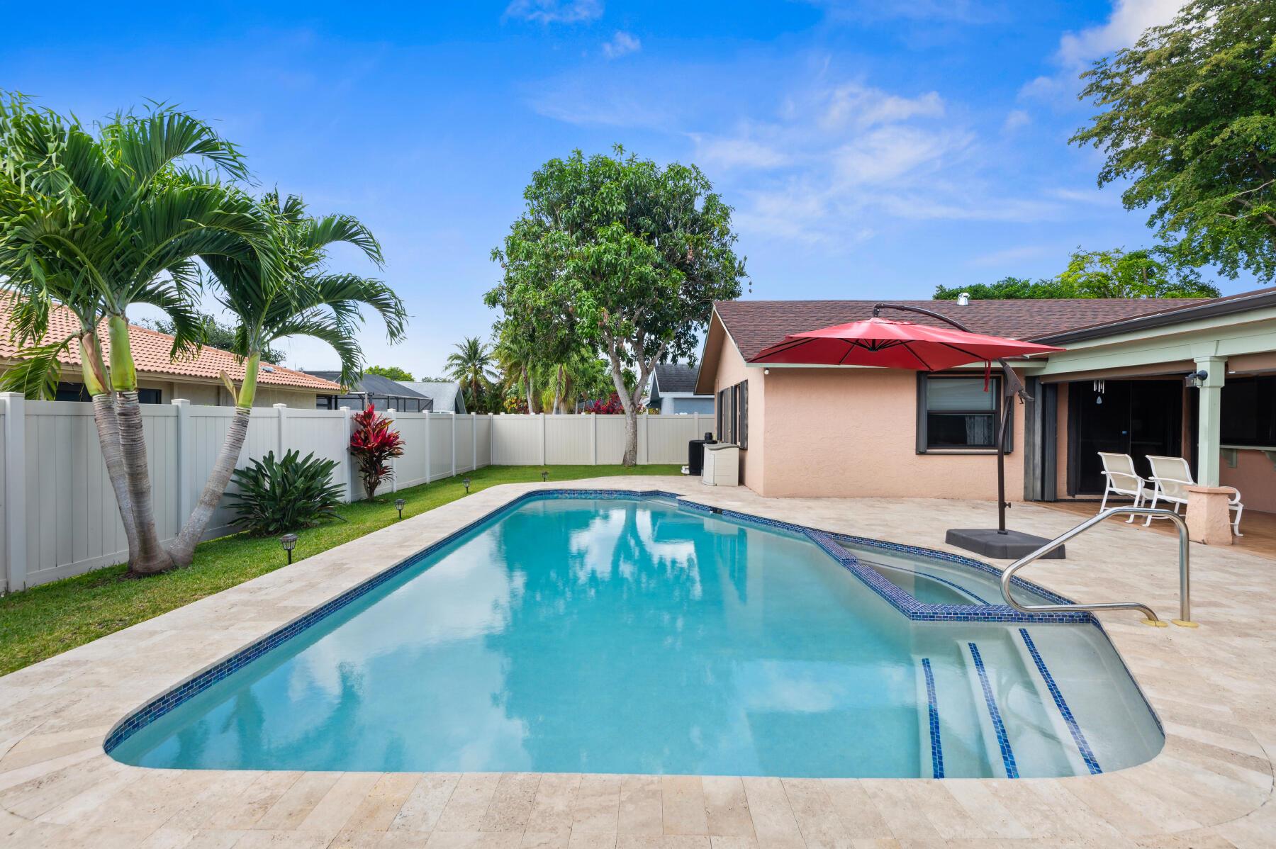 A spacious family POOL home boasting four bedrooms and two baths, nestled in a sought-after neighborhood. BRAND NEW ROOF, completed not even a month ago, COMPLETE IMPACT WINDOWS installed in 2021 with accordion shutters for double protection, situated on a CORNER LOT, it offers a well-designed split floor plan layout with a sprawling tiled family room, complemented by a white vinyl privacy fenced backyard with a secluded covered patio. Unwind and indulge in the salt water pool with travertine pavers that was redone in 2021, along with a new pool pump in 2021, complete with a jacuzzi for ultimate relaxation. Laundry room was redone 2 months ago. AC is 2010 and has been serviced 2 times a year every year, last serviced 04/30/2024. Furniture is negotiable.
