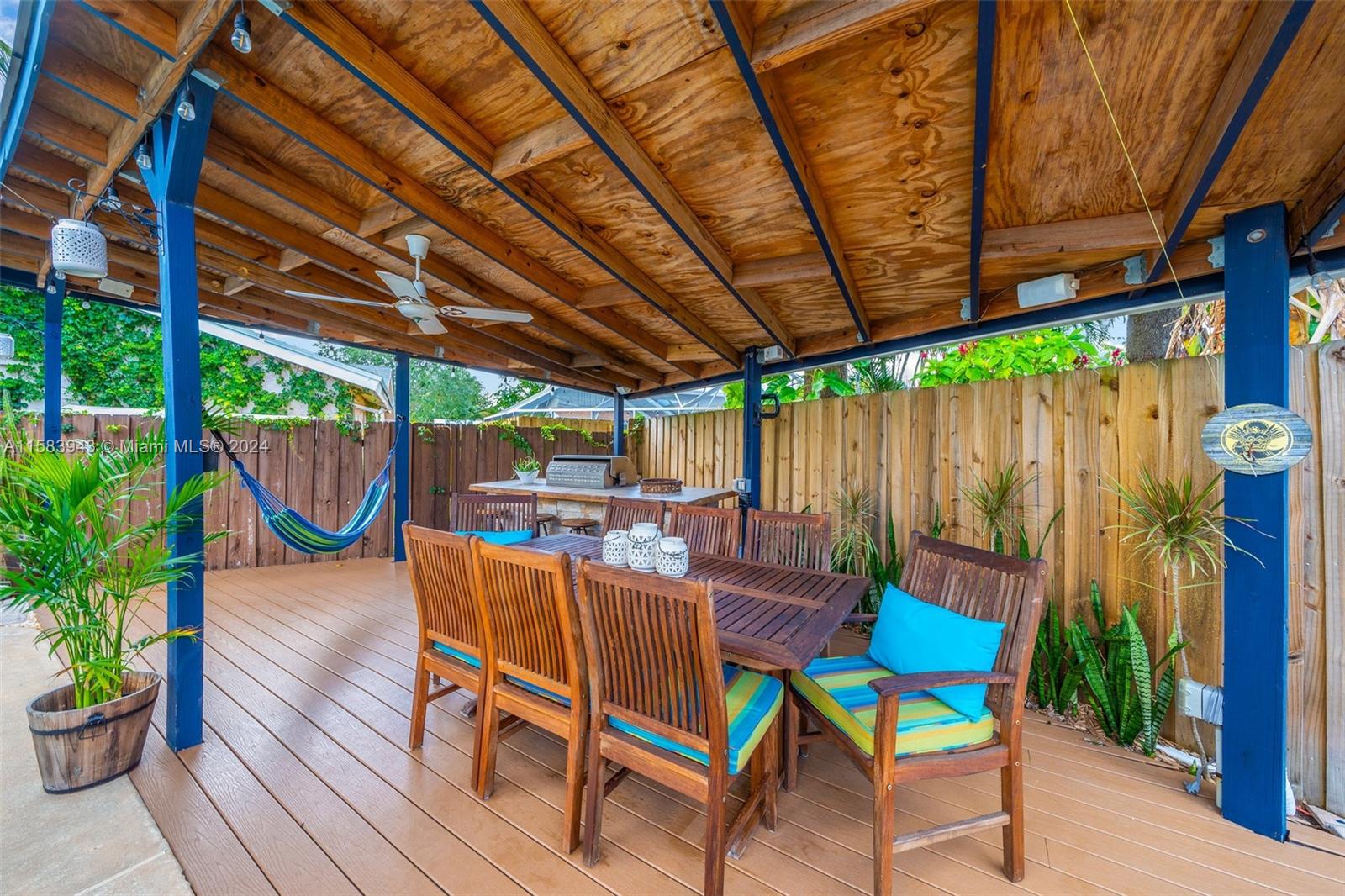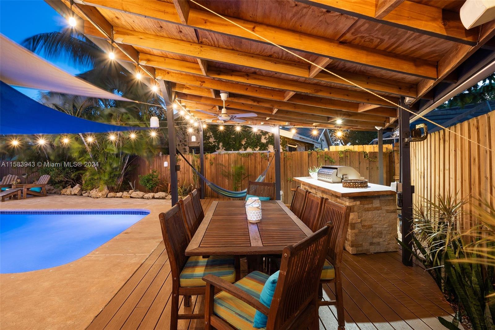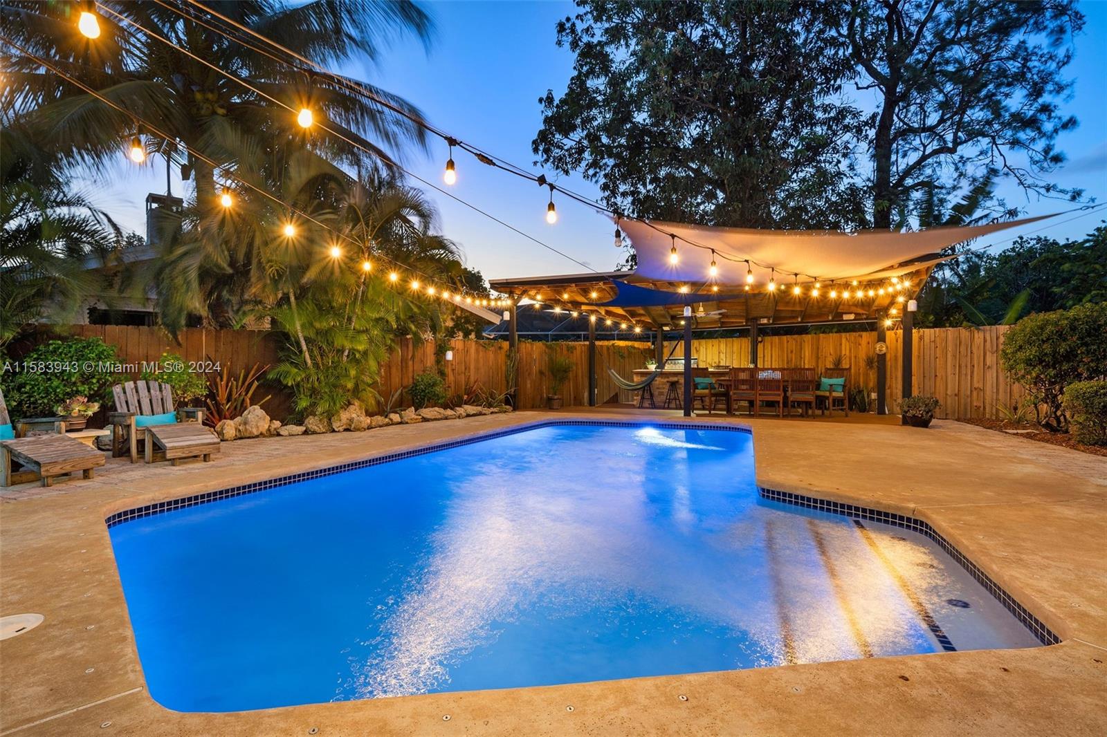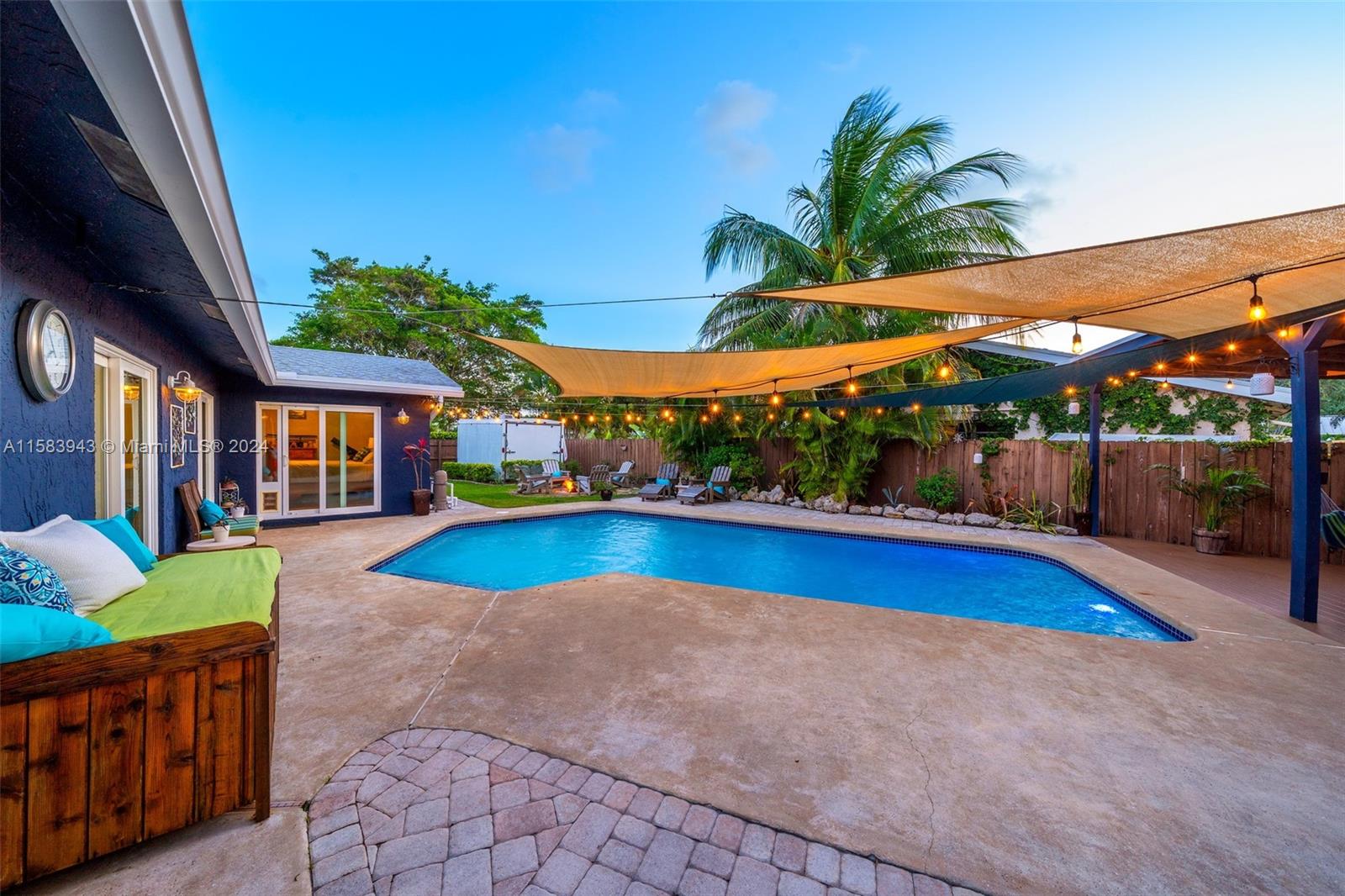 Discover your dream home nestled on a sprawling corner lot in a family-friendly neighborhood. Inside this elegant 4-bedroom, 3-bath gem features a spacious open layout, stainless steel appliances, additional family room, mother-in-law suite with its own entrance, a separate laundry room and hurricane impact windows and doors throughout. Step outside to a landscaped backyard paradise fully fenced in with a saltwater pool, covered dining area with a built-in BBQ bar, flagstone firepit area, and ample of exterior lighting - perfect for entertaining. Utilize the backyard trailer for a workshop or extra storage. With a garden box, solar water heater and an electric car charging source, this home blends luxury with sustainability. Truly a well maintained impeccably appointed home is a must see!