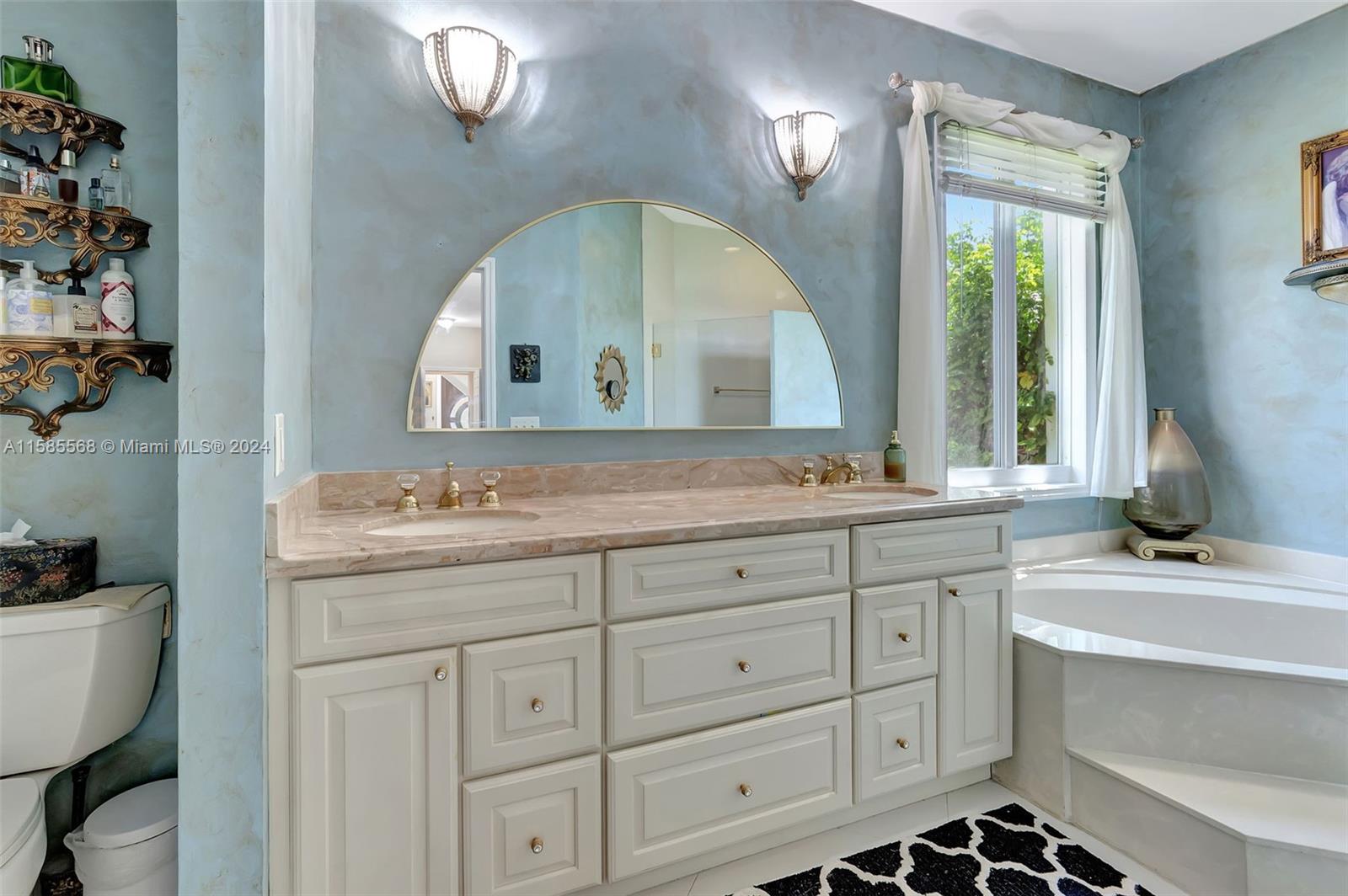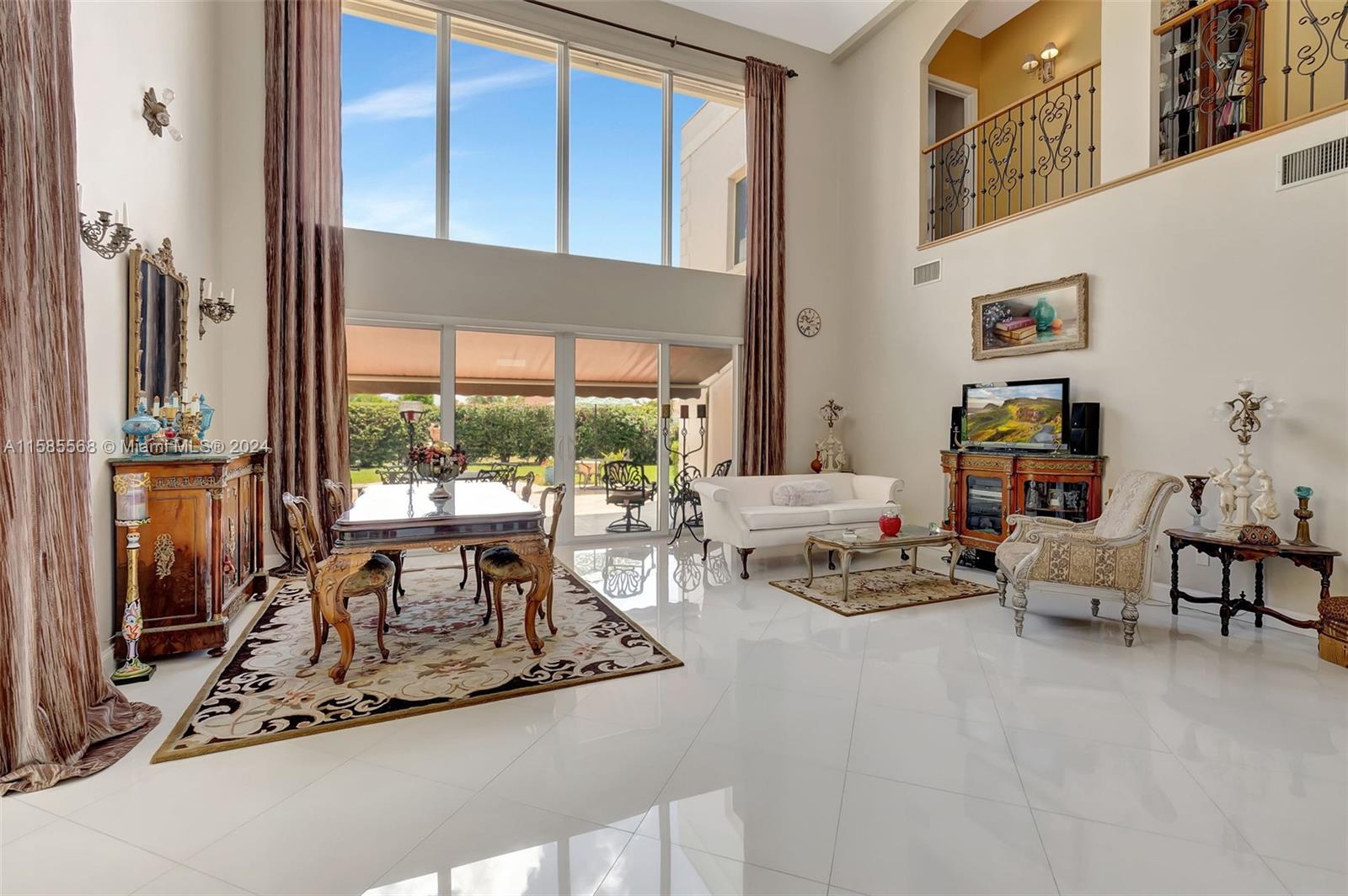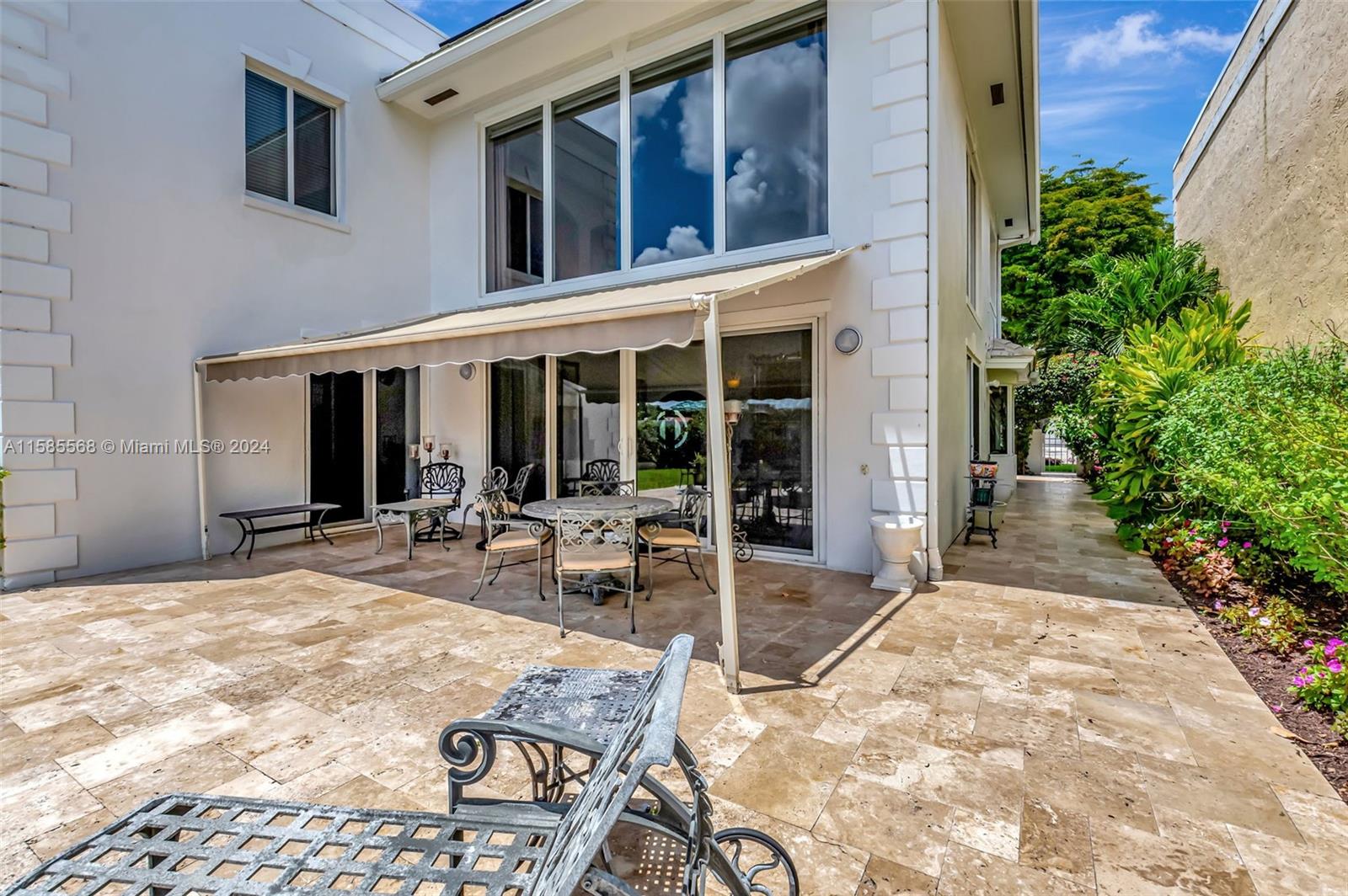 Light and bright 3 bedroom 2 1/2 bath home with a 2 car garage in a 24 hour guard gated community at Boca Pointe. The home has impact windows and solar power. The great room has floor to ceiling windows and high ceilings. There are two primary bedrooms, one up and one down, both with walk in closets. Kitchen and baths have been renovated and have all wood cabinets, Downstairs floors are porcelain tile and upstairs has wood floors. The curved staircase and hall is adorned with a wrought iron railing. The backyard has travertine tile, a fountain, beautiful butterfly garden, and the home backs up to the Hillsboro canal. 2618 sf under air and 3044 total sf per floor plan. There is a one time capital contribution of $1606 to the HOA.