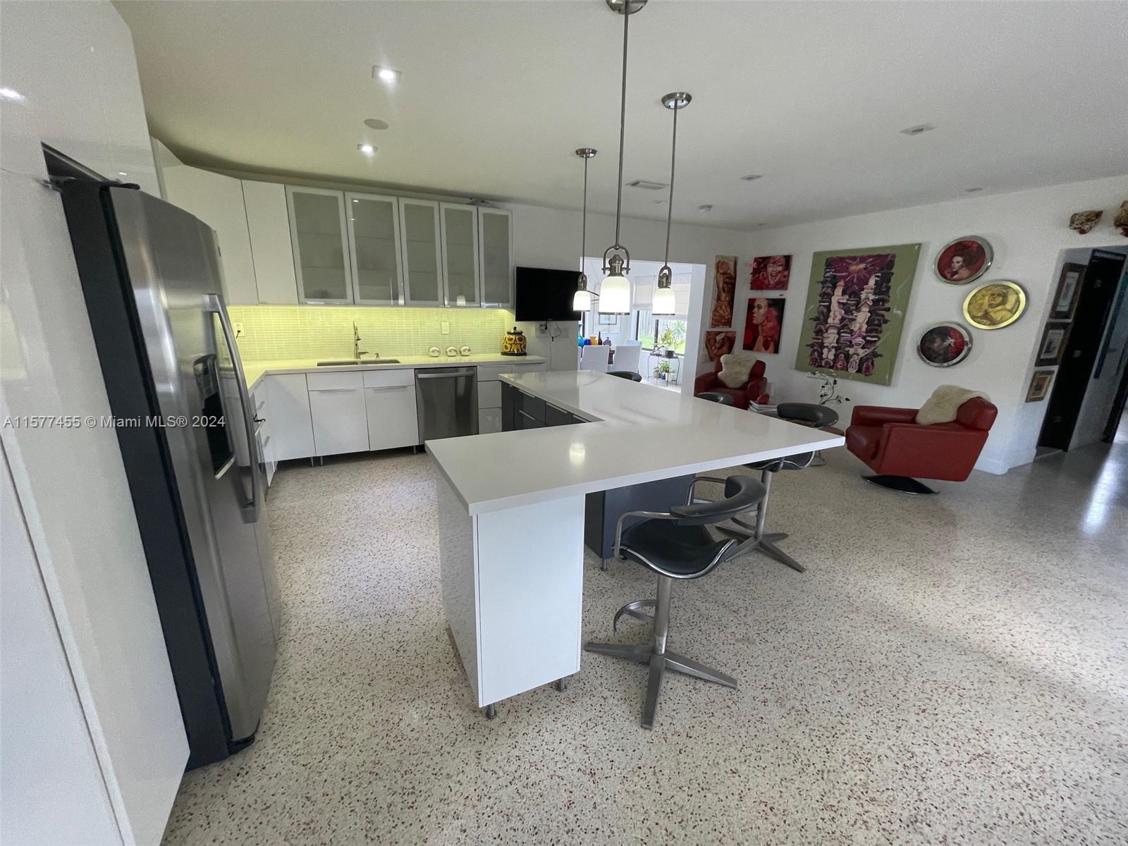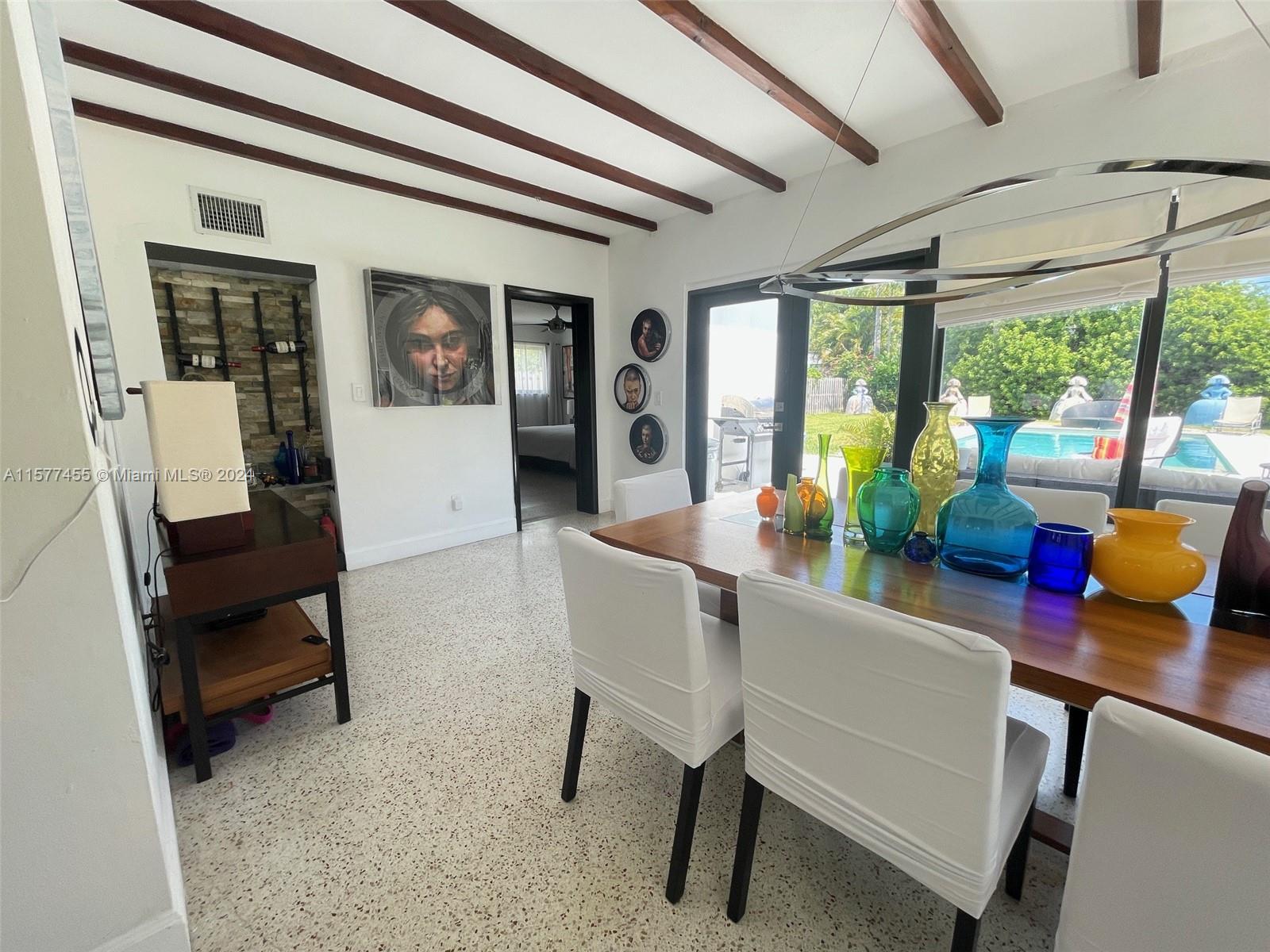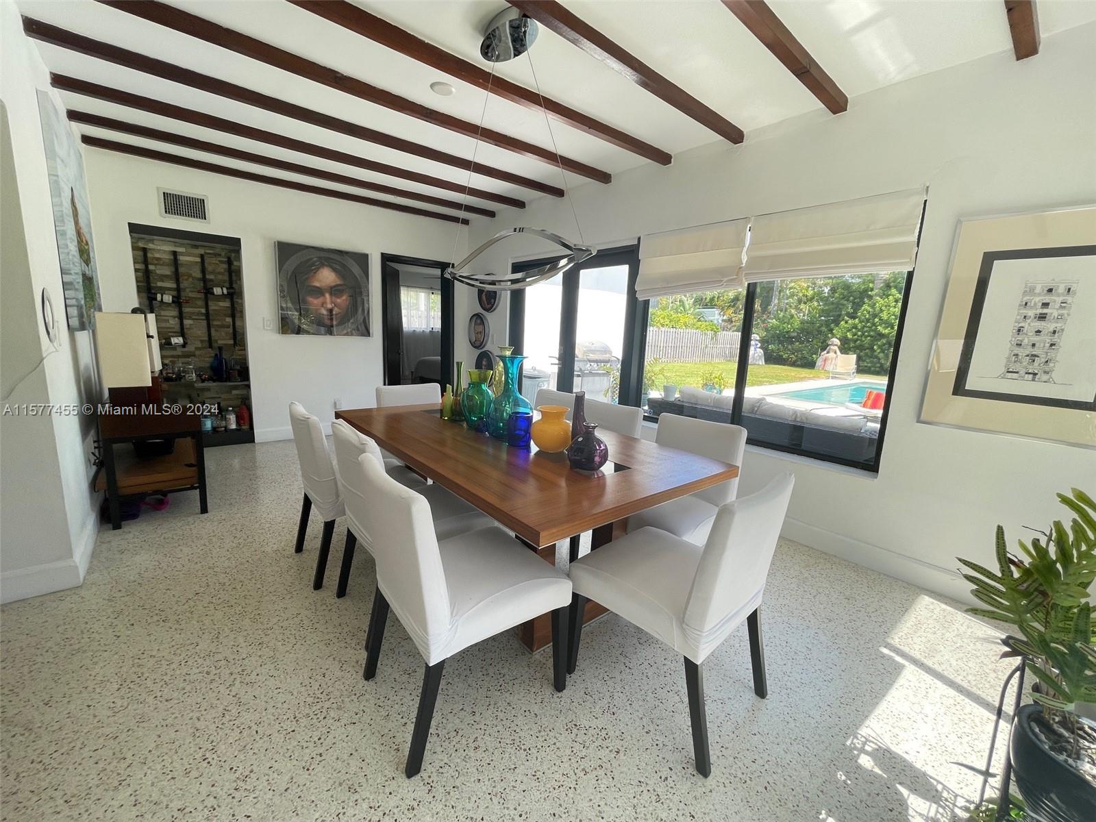 Situated on one of the neighborhood's largest lots (11,250 sq ft) within the prestigious gated community of Keystone Point, this property offers both comfort and style with no association fee. The highlight is the neighborhood's largest pool (15' x 30'), complete with a saltwater system. If you're interested in remodeling or building, the owners have approved plans and paid fees from Miami-Dade for a 5,400 sq ft, two-story house, although the process is not yet completed in North Miami. Abundant natural light enhances the inviting atmosphere throughout the spacious living areas, which include 3 bedrooms, 2 bathrooms, and an office/studio, all featuring restored terrazzo floors and impact windows. With access to life in Keystone Point offers both convenience and luxury.