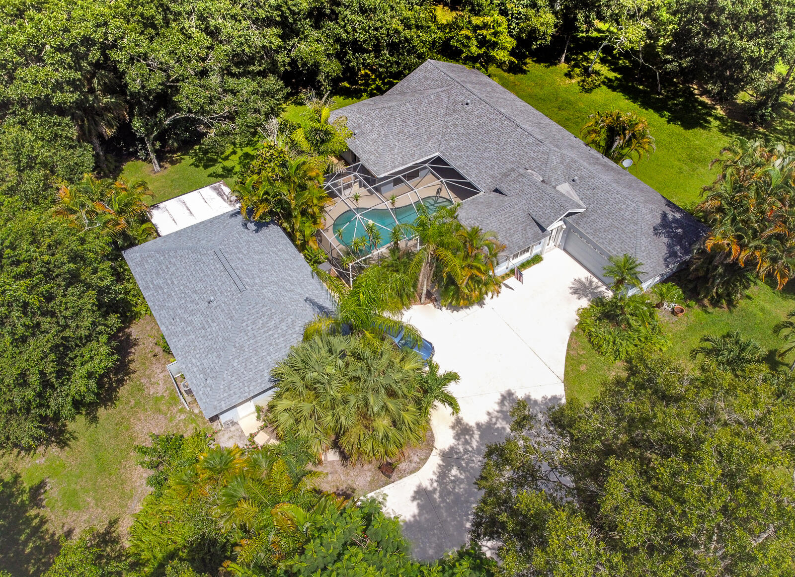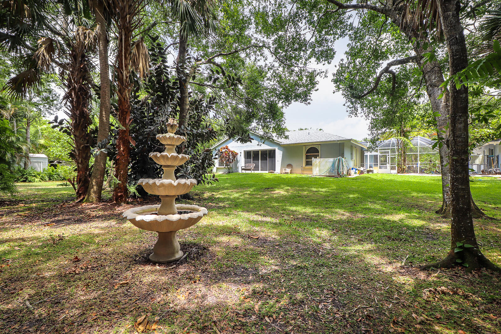 This courtyard-style CBS home on a 1.17-acre lot in Palm Beach Country Estates features a 3BR/3.5BA/2-car garage main house and additional detached 1BR/1BA/1-car garage guest house that was newly-remodeled in June 2025. There aren't many opportunities to own a property like this one. In addition to being in an area of PBCE that is extra peaceful - far from the highway - it is located just steps away from the spectacular Riverbend Park - featuring many miles of tree-shaded hiking, biking, and horse trails. The full-featured guest home is perfect for in-laws or possible short/long-term rental income - with 700sf of living area (included in the total) and its own screened porch and garage. Newer roof on the main house (2018) and brand-new roof on the guest house (June 2025).
