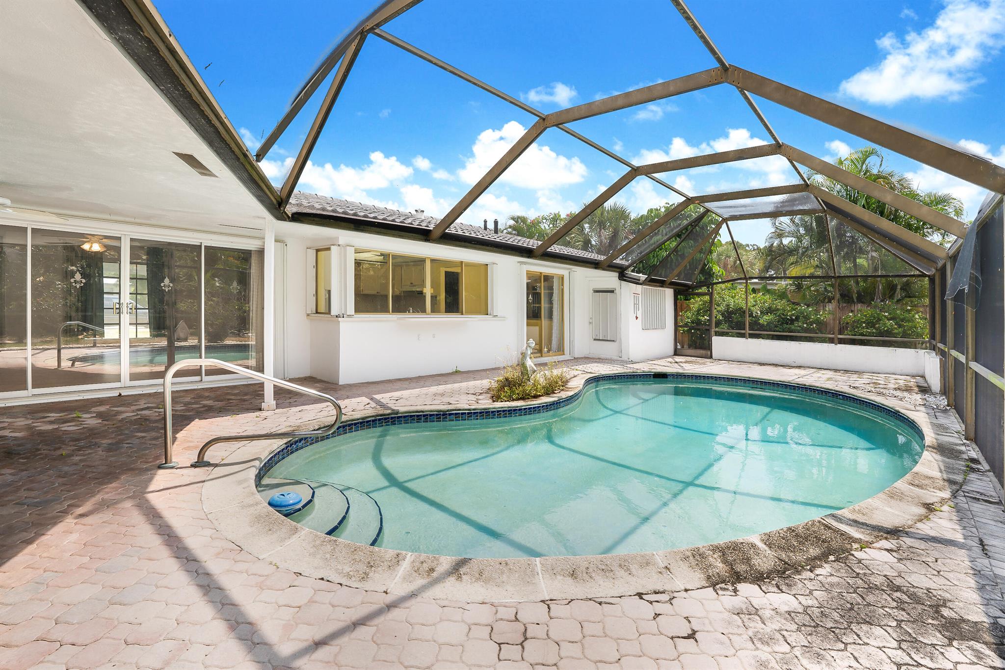 Location, Location, Location! This terrific 2 bedroom, 2 bath ranch home with a spacious built out bonus room off the kitchen which can be used as another bedroom, office or any design to meet your needs. Radiant natural light fills the spacious living room & dining room leading to the kitchen or screened in large pool, perfect for entertaining. Laundry room, 2 car garage & beautiful fenced in garden/yard are additional bonuses of this home. Positioned conveniently walking distance to Mizner Park/Shopping Mall, dining, and entertainment, Boca Inlet, beaches and so much more. Seize this outstanding opportunity in one of Boca Raton's desirable subdivisions, ROYAL OAK HILLS. Being sold AS IS.