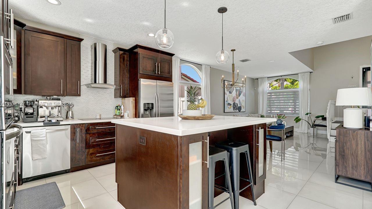 Discover this cozy two-story family home located in Town Gate inside the gated community of Royal Bay. 3 beds, 2.5 baths, there's ample space for your family to grow. Enjoy the open concept/modern island kitchen with stainless steel appliances and a built-in wall oven, beautiful porcelain floors and custom zebra blinds. The large backyard beckons for outdoor gatherings or the possibility of adding a pool to enhance your leisure time. Plus, rest easy knowing the new roof and high-impact windows provide added security and peace of mind. Welcome home to a blend of functionality and charm. Prime location close to mayor express ways, shopping, dining and entertainment.