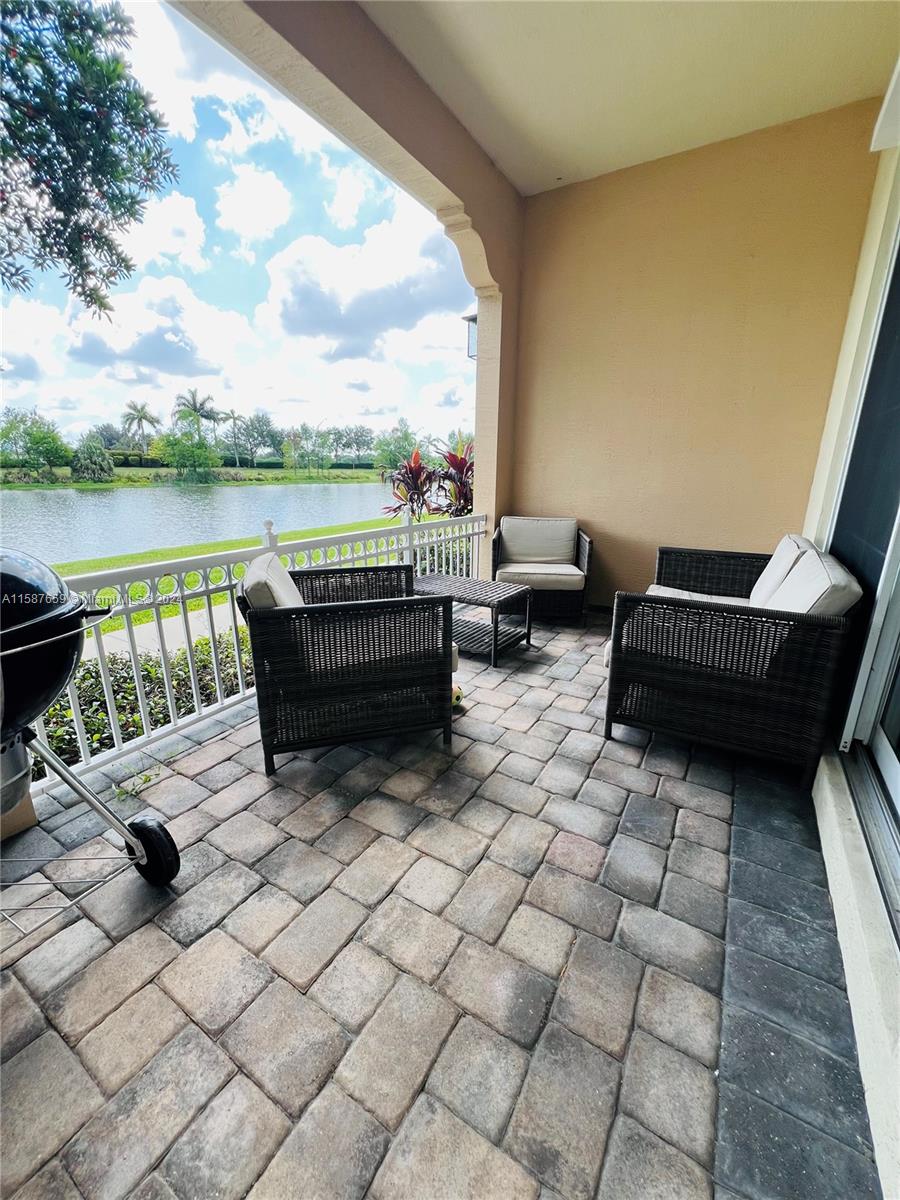 Discover refined living in this 1450 sqft townhouse, beautifully renovated with an open-concept kitchen, laminate flooring throughout, and impact windows. Features include integrated CCTV, infrared AC system, three bedrooms upstairs with a spacious master suite, balcony with lake views, and upper-floor laundry. Includes two parking spaces. Enjoy community amenities like a timed pool, clubhouse, gym, large pool, splash park, tennis, and basketball courts. Excellently maintained with paths connecting to Monterra.