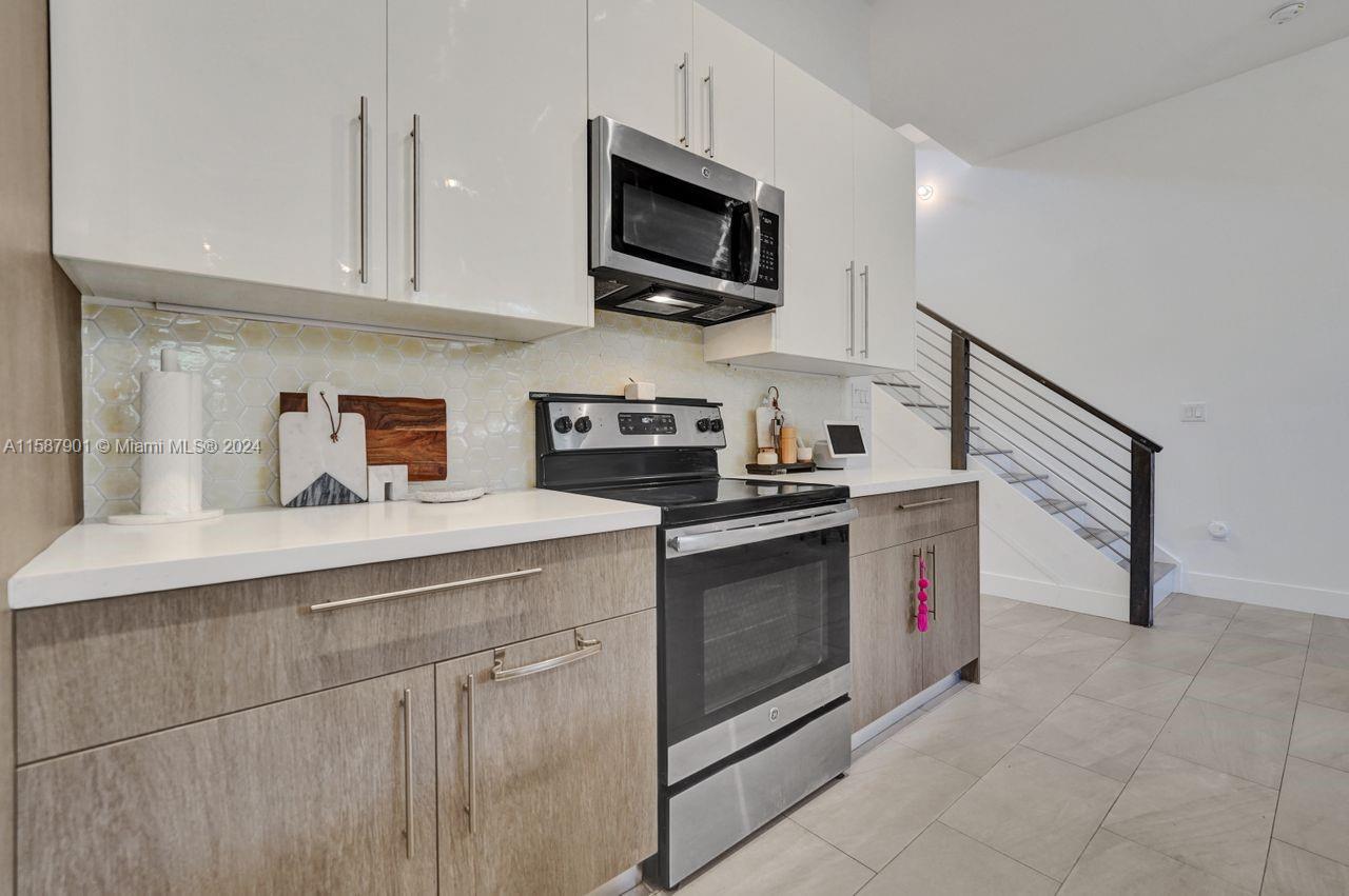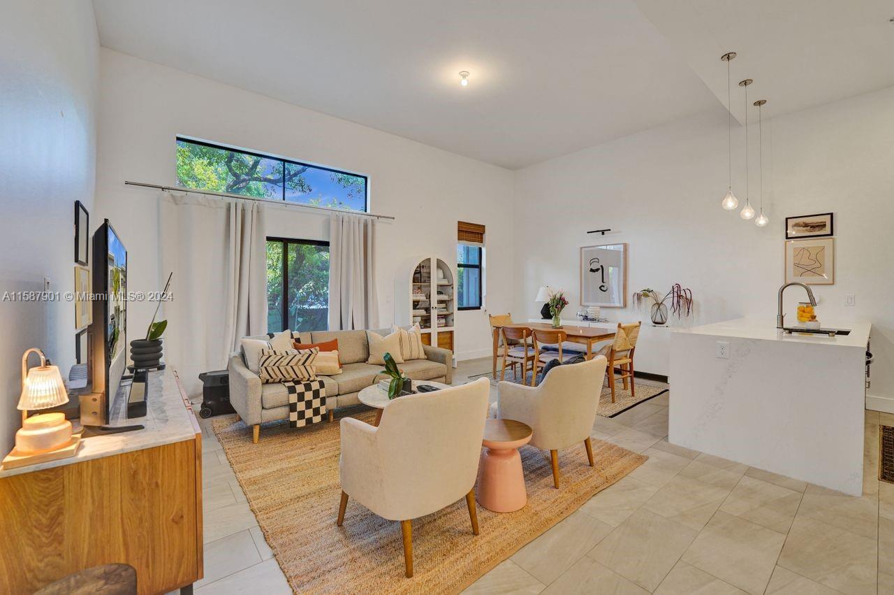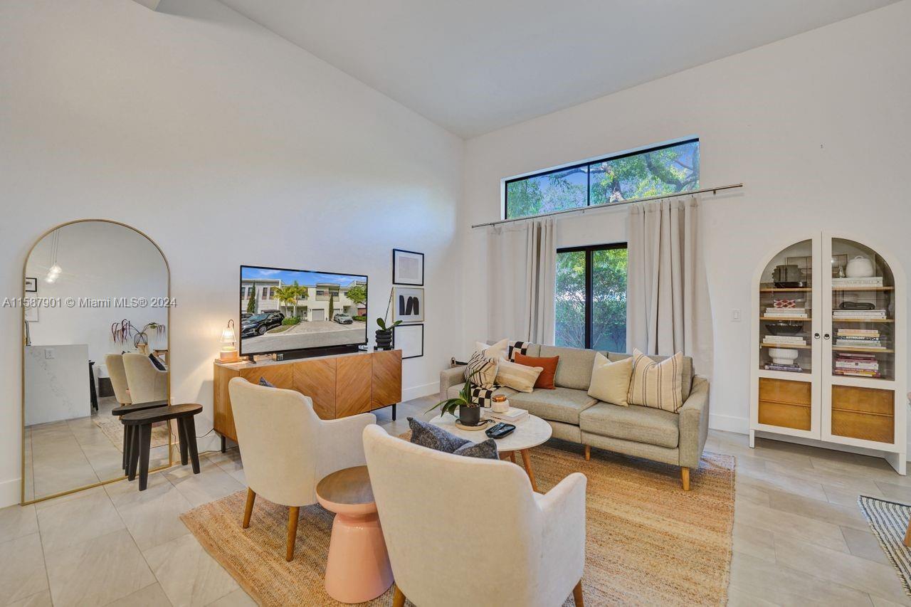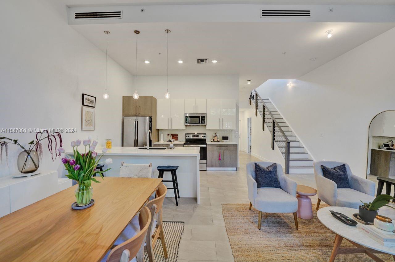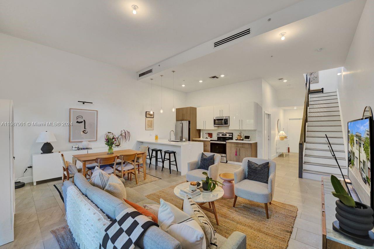 Modern townhouse in gated community of Strata Plantation. 1616SF, 2-story, 3BR/2.5BA/1-car. Foyer entry leads to 12’ ceilings & open floorplan-seamlessly connects living area. Redesigned kitchen boasts European cabinets & new waterfall quartz countertop island. LR/FR opens to private patio. Contemporary staircase w/sleek metal details to upper level & new LVP floors. Serene owner's suite: veranda for outdoor enjoyment, walk-in closet & a spa-like bath w/double vessel sinks, LED vanity lights & frameless shower w/pebble mosaic floor. Impact windows & low HOA. Amenities: clubroom, gym, lounge, play areas, dog park, trails+. Easy access to Turnpike/441/I-95 Don’t miss the opportunity to own this exquisite townhouse that perfectly blends modern design with functional living. No rental 1st year