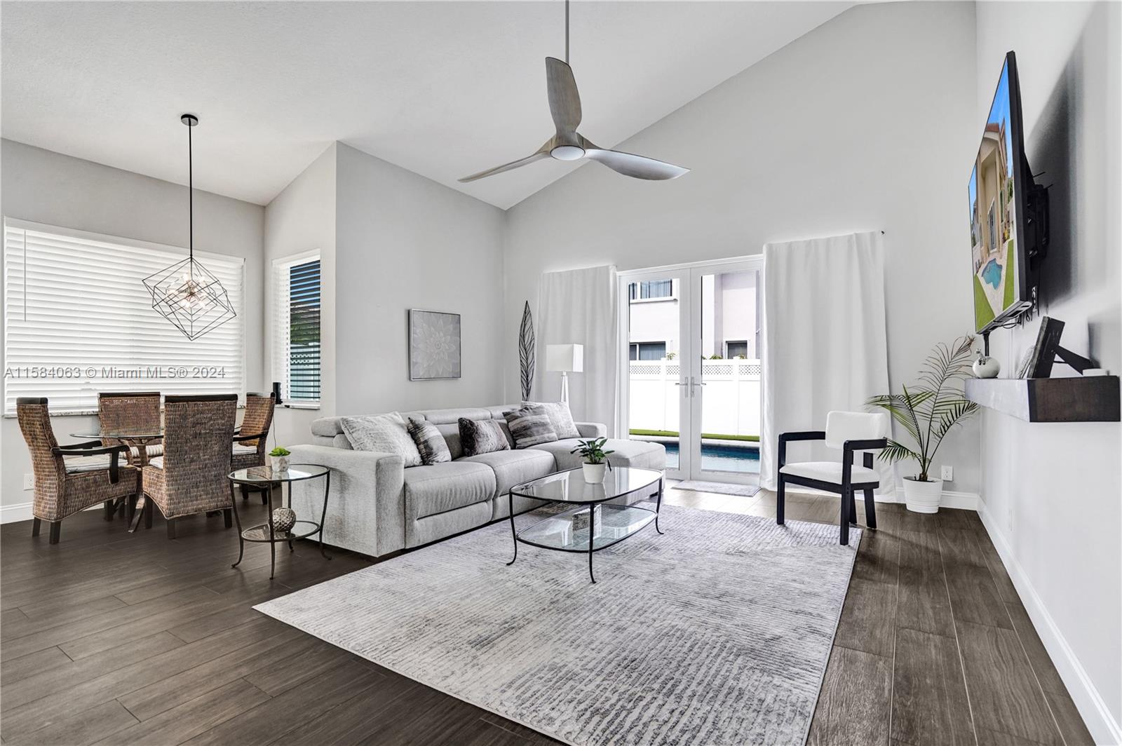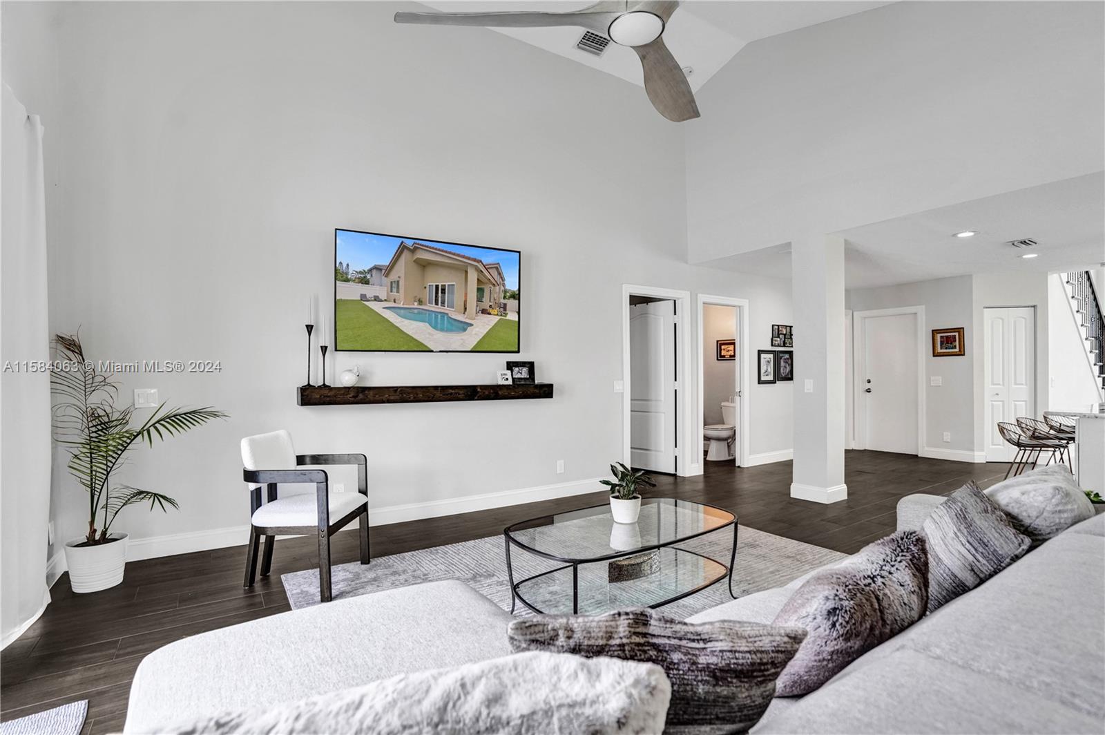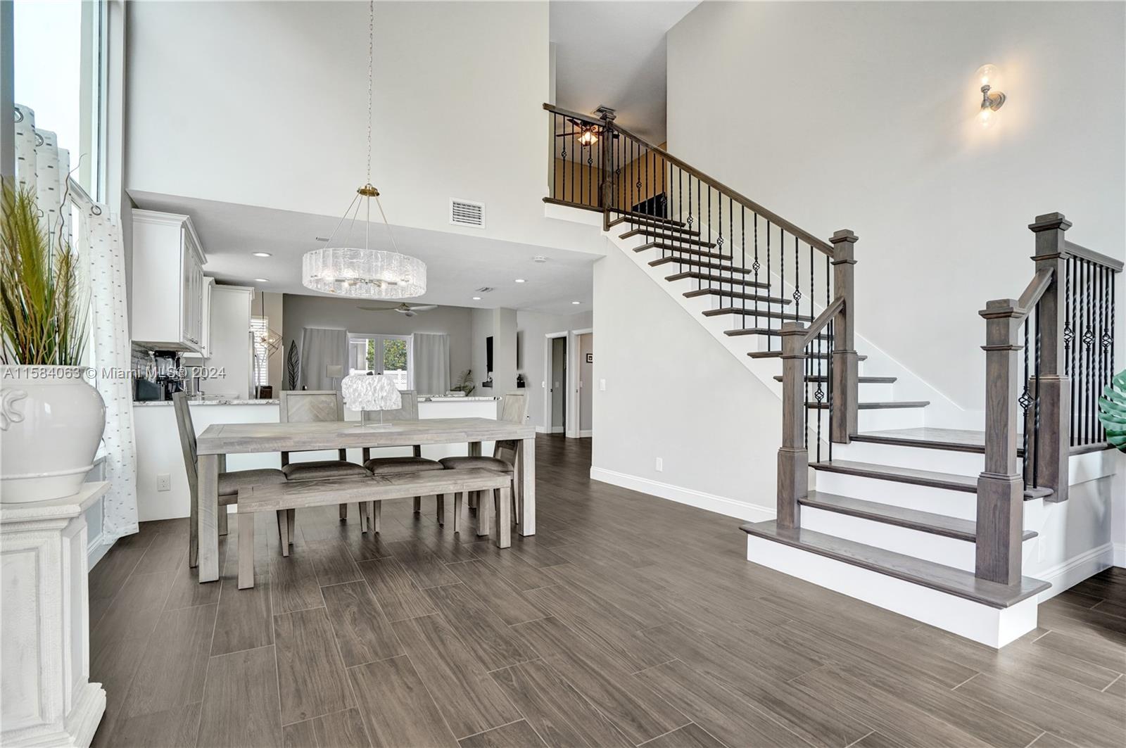 Beautifully remodeled in a gated community 4 bed/2.5 bath open floor plan. Porcelain tile/wood throughout. Gorgeous gourmet kitchen with double ovens and top of line appliances. A breakfast bar, and dining nook-perfect for entertaining. Main floor has an oversized owner's suite with his/hers closets and 16' ceilings! Jetted freestanding tub and marble shower in suite. Vaulted/double story ceilings throughout (22' in the main entry). Floor to ceiling impact windows with plenty of natural light. Three more large bedrooms and loft upstairs. Recently renovated pool, new privacy fence in the backyard. Solar panels & 2 Tesla batteries: (acts as a generator). The community boasts a neighborhood park on the water, tennis courts and a gym that has been recently updated.
