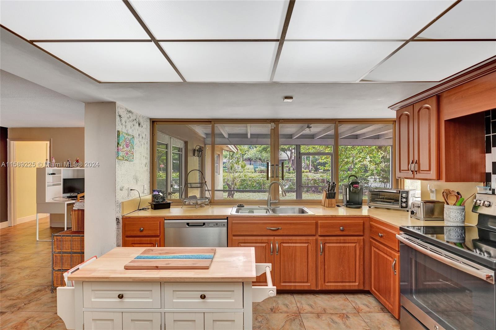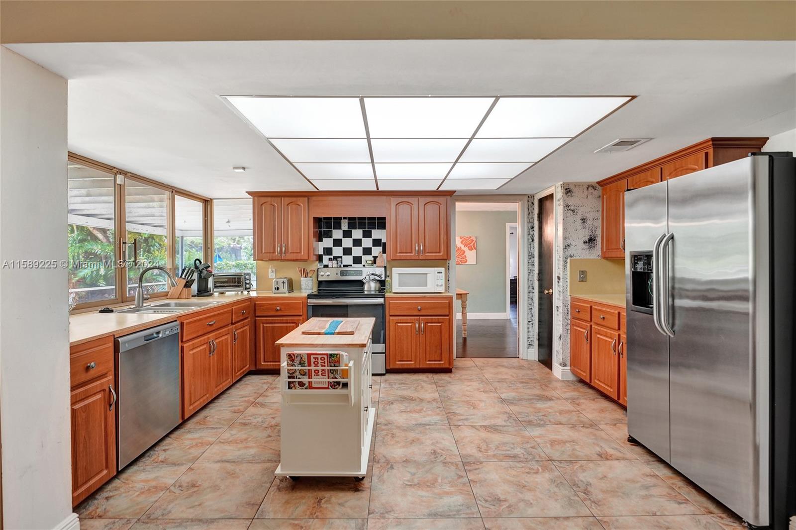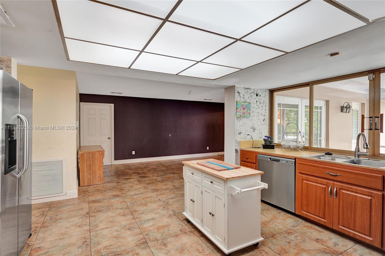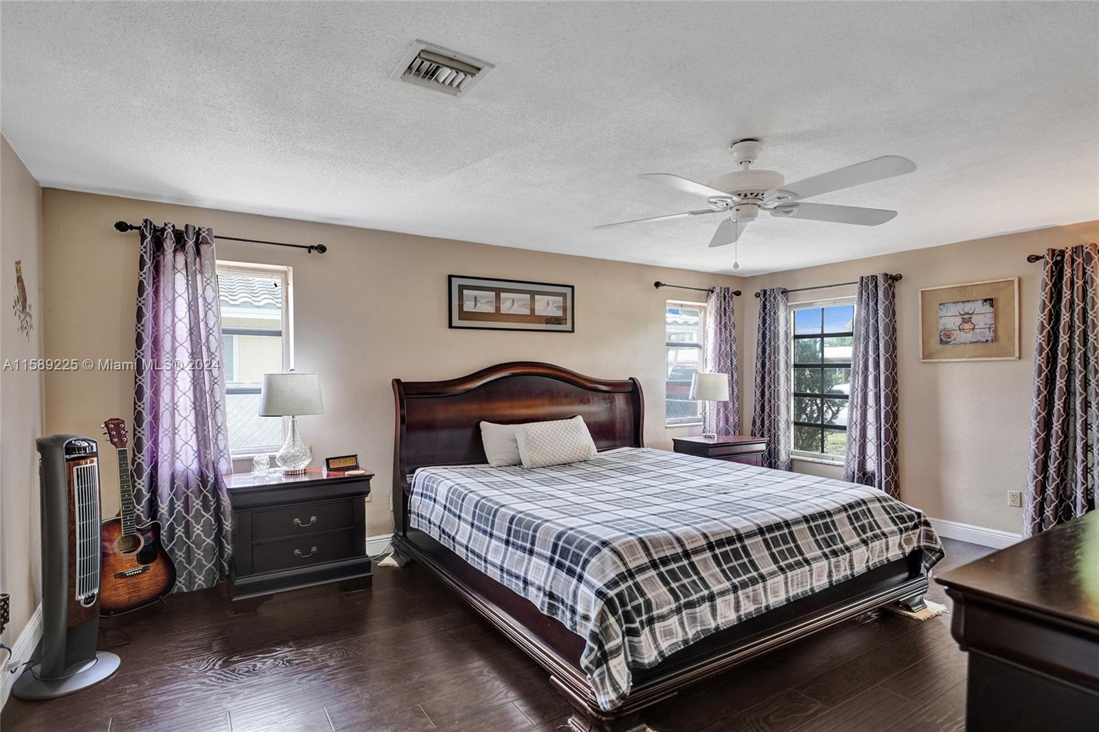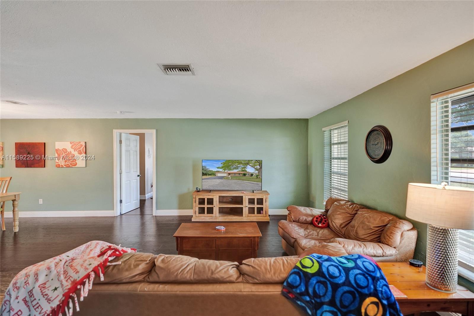 Welcome Home to Forest Hills where the young ones could walk to school and play in the culdesac later! A triple split layout of 5 bedrooms and 2 baths with a 2 car garage! Forest Hills neighborhood has NO HOA and is pretty much in the center of Coral Springs. The floors are a attractive wood look in the main living room and owners room and large tiles in the family room and kitchen! If you did decide to add a pool there are 2 cabana baths! Oversized yard has lots of room for family games or a pool! Oversized covered patio. The best part is the new roof in 2021! A/C is 2017, Washer/Dryer 2021, Dishwasher 2023, Master Shower 2023. Home is ready to add your touches!